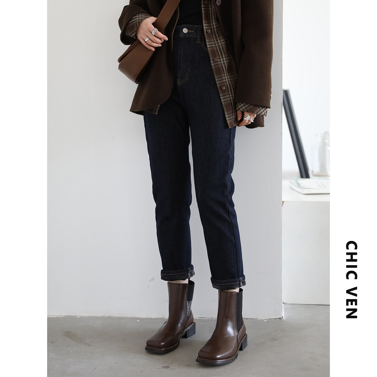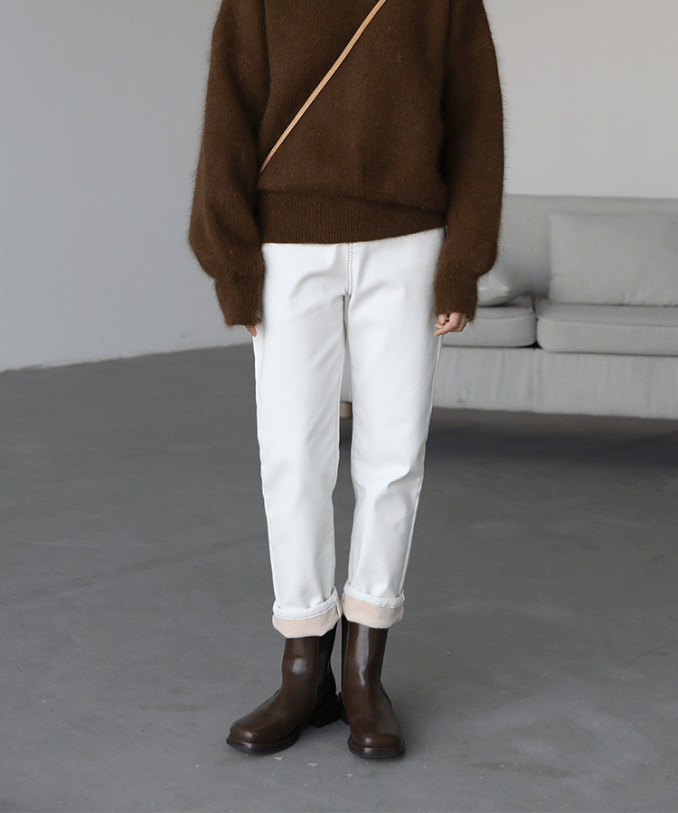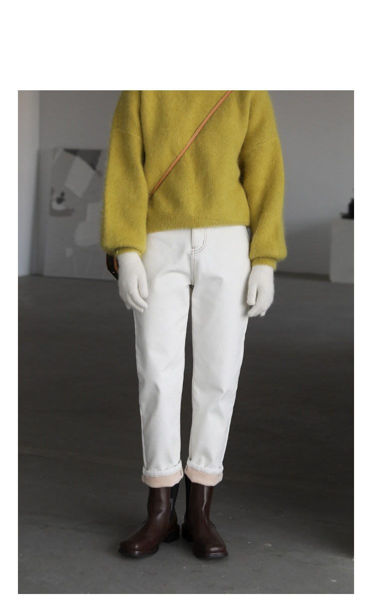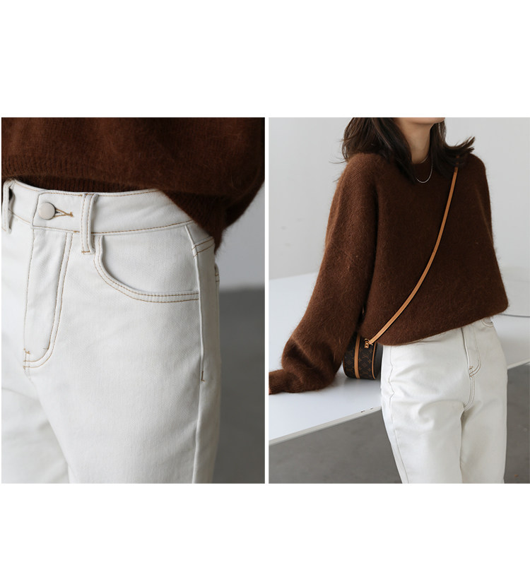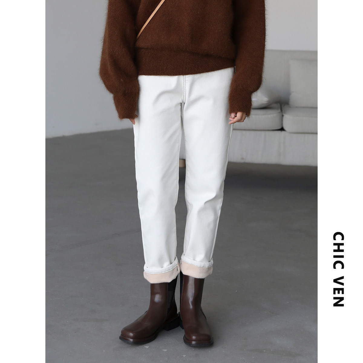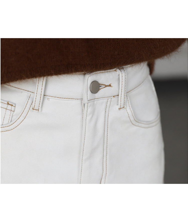 Чиквен "Пост -хуманизм" черные технологии Санфанг и бархатные брюки Женские белые джинсы зима