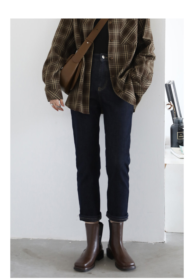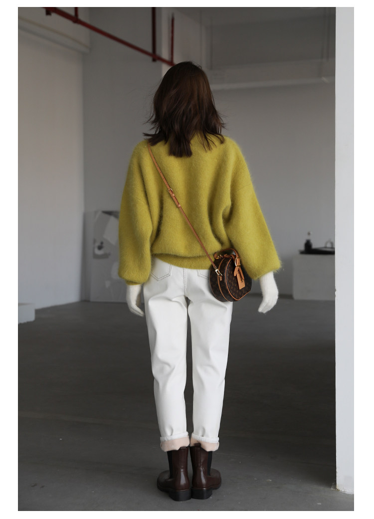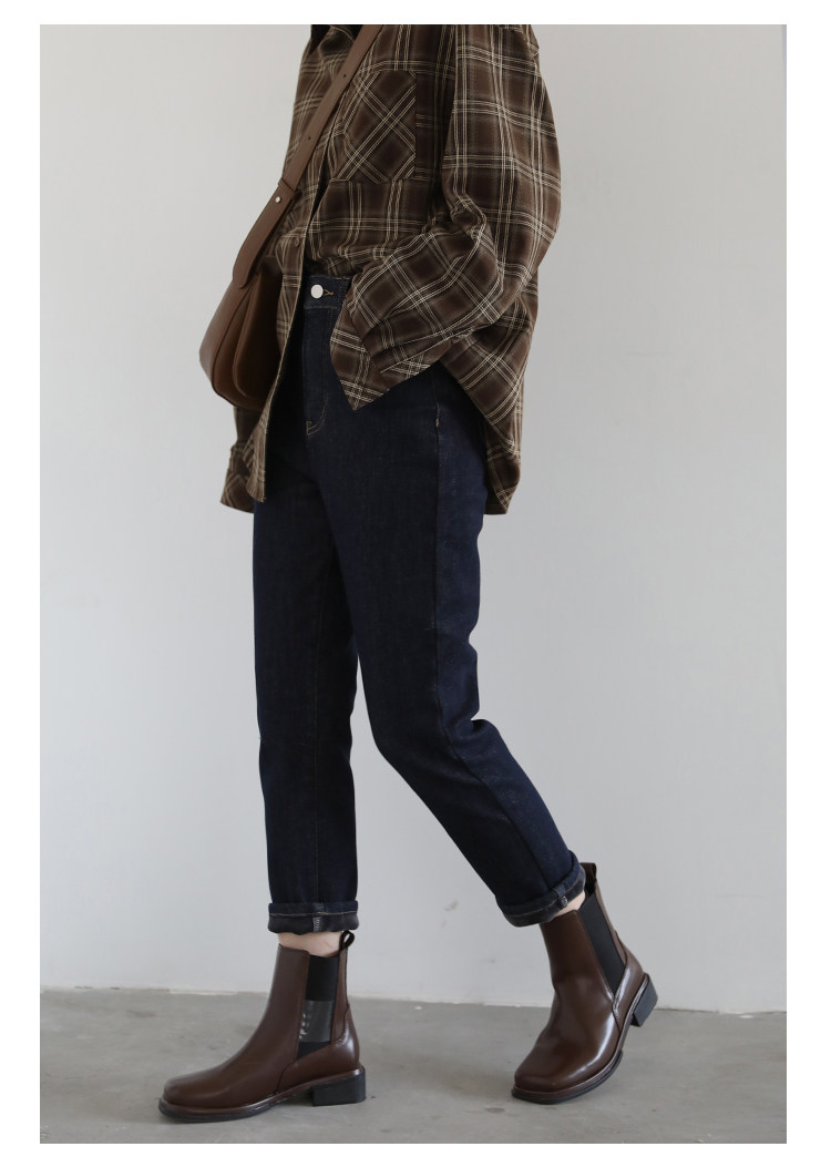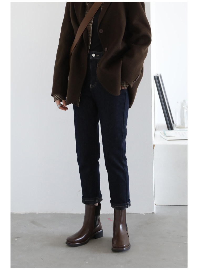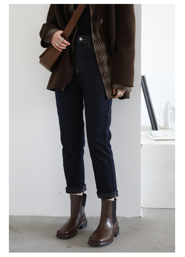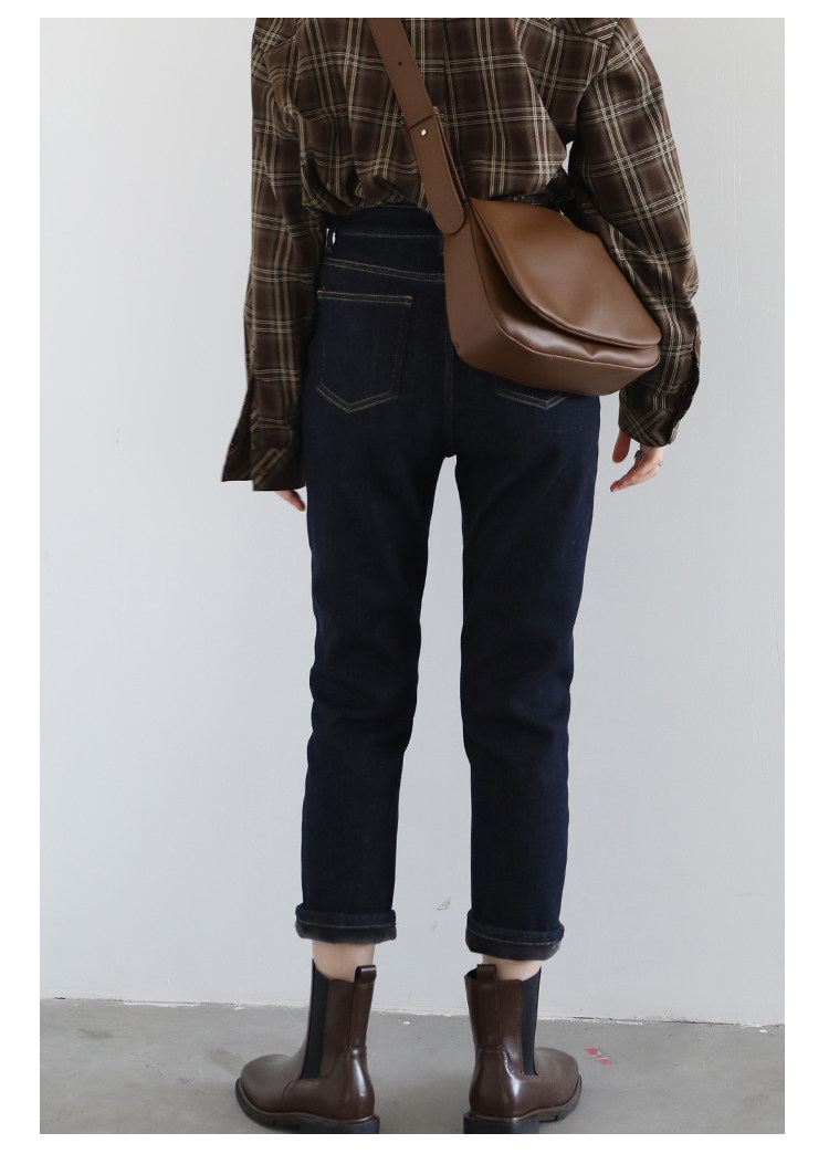 Чиквен "Пост -хуманизм" черные технологии Санфанг и бархатные брюки Женские белые джинсы зима