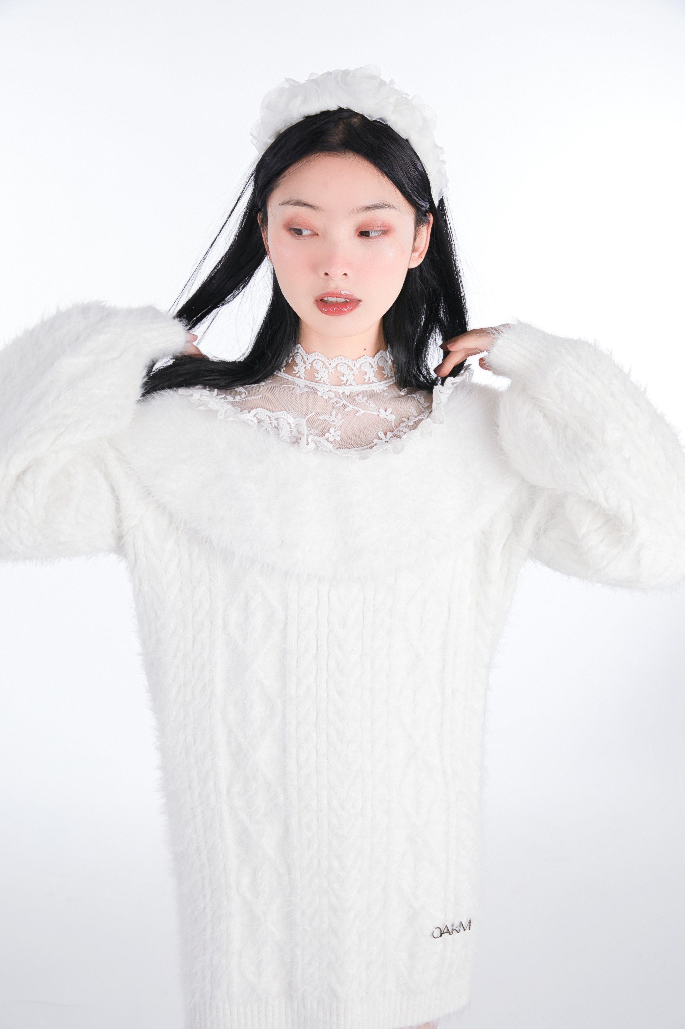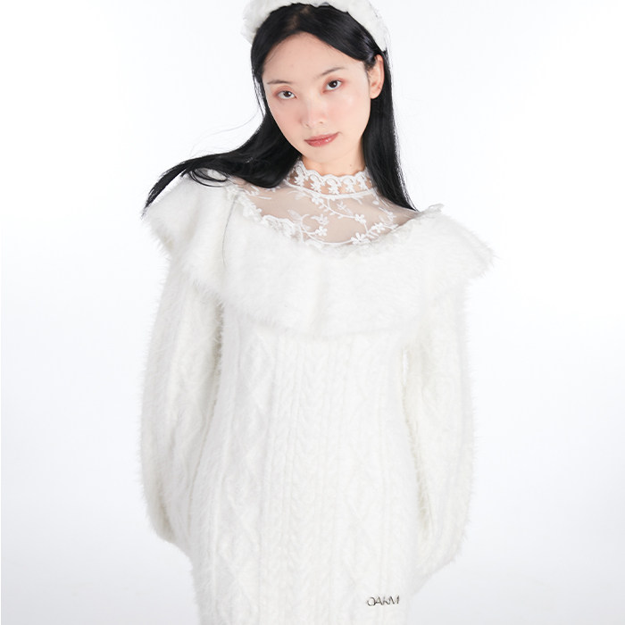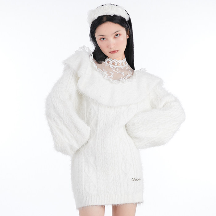 Зимний рождественский трикотажный свитер, белое платье
