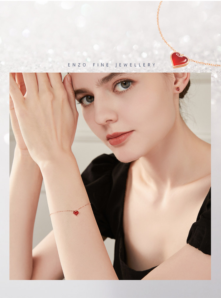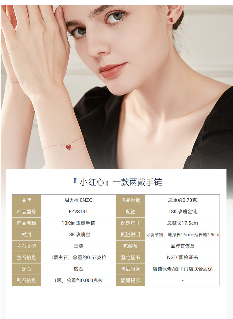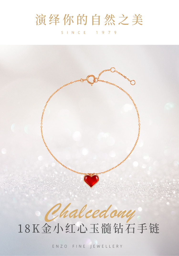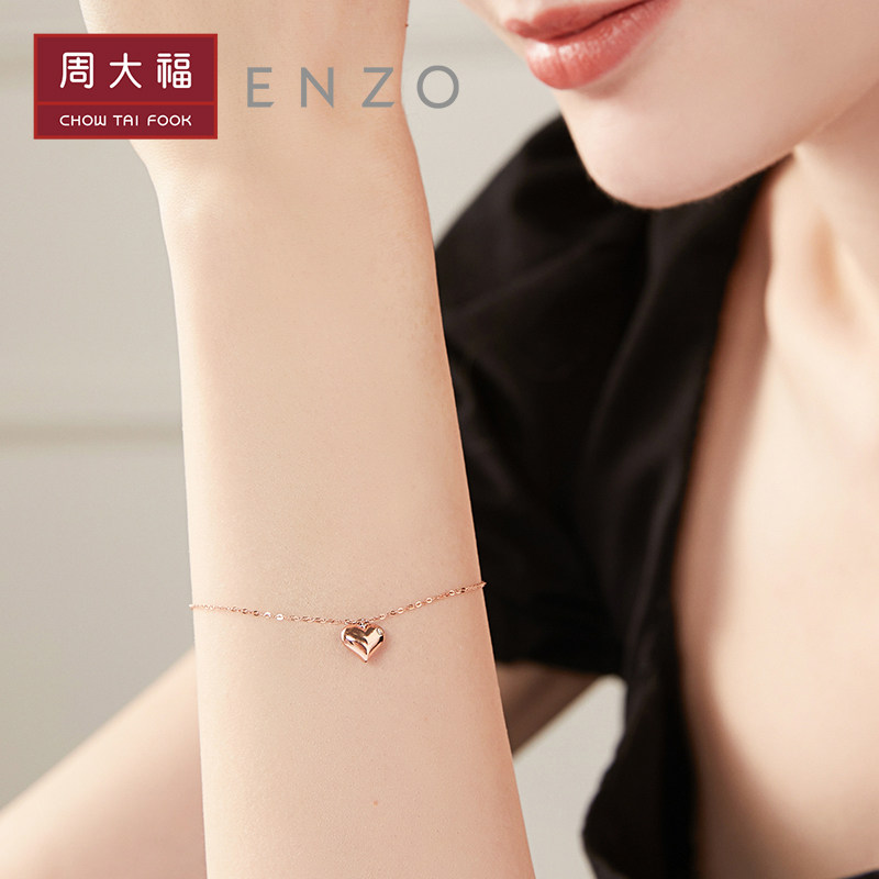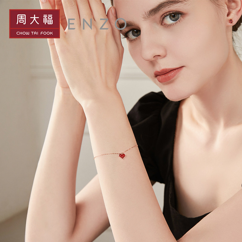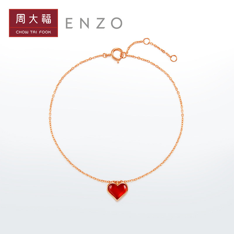 周大福 Бриллиантовый браслет в форме сердца из натурального камня, цепочка, золото 750 пробы, подарок на день рождения