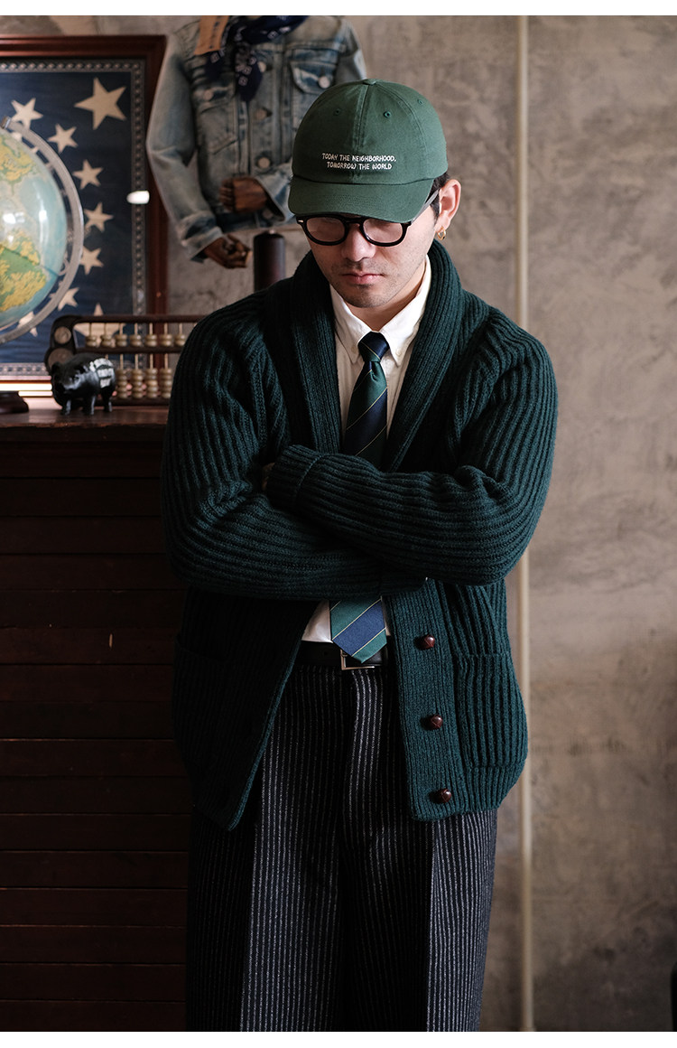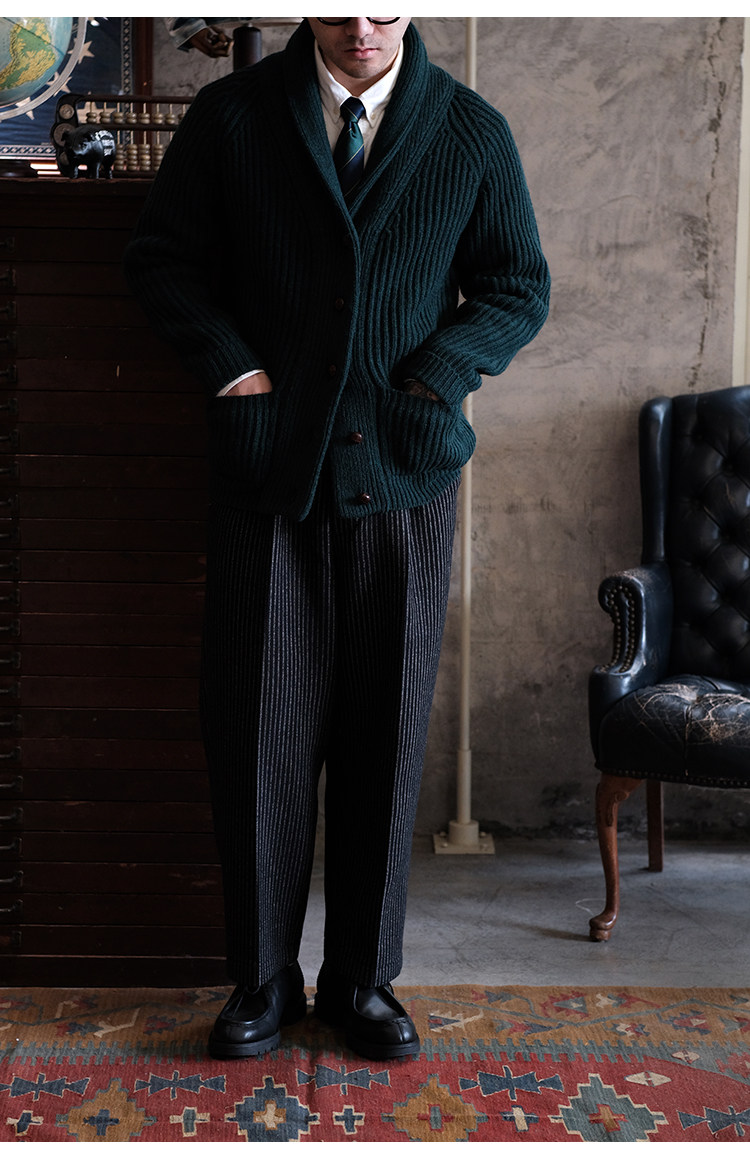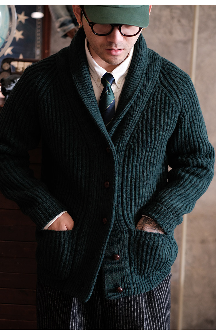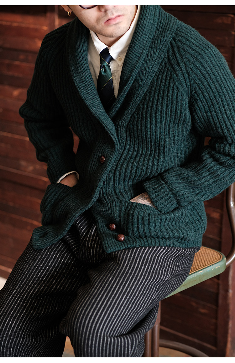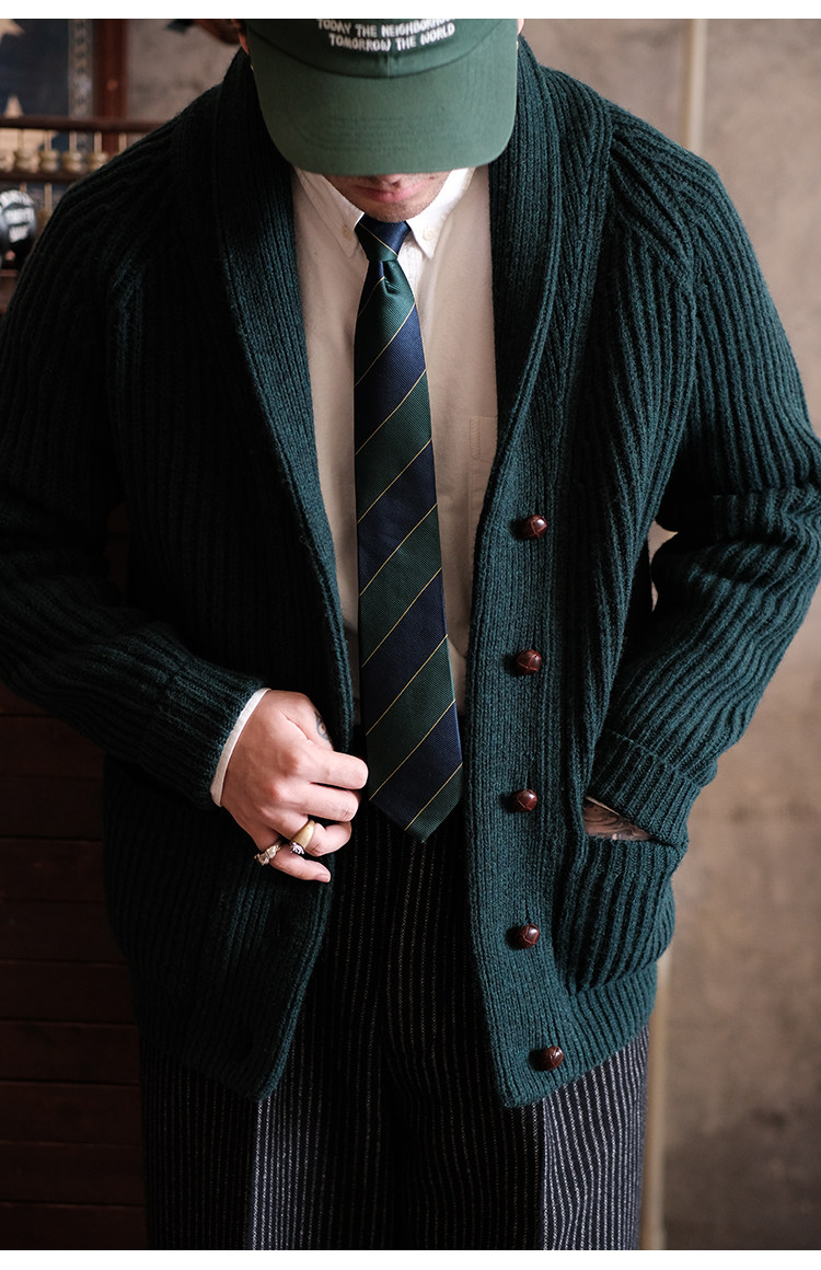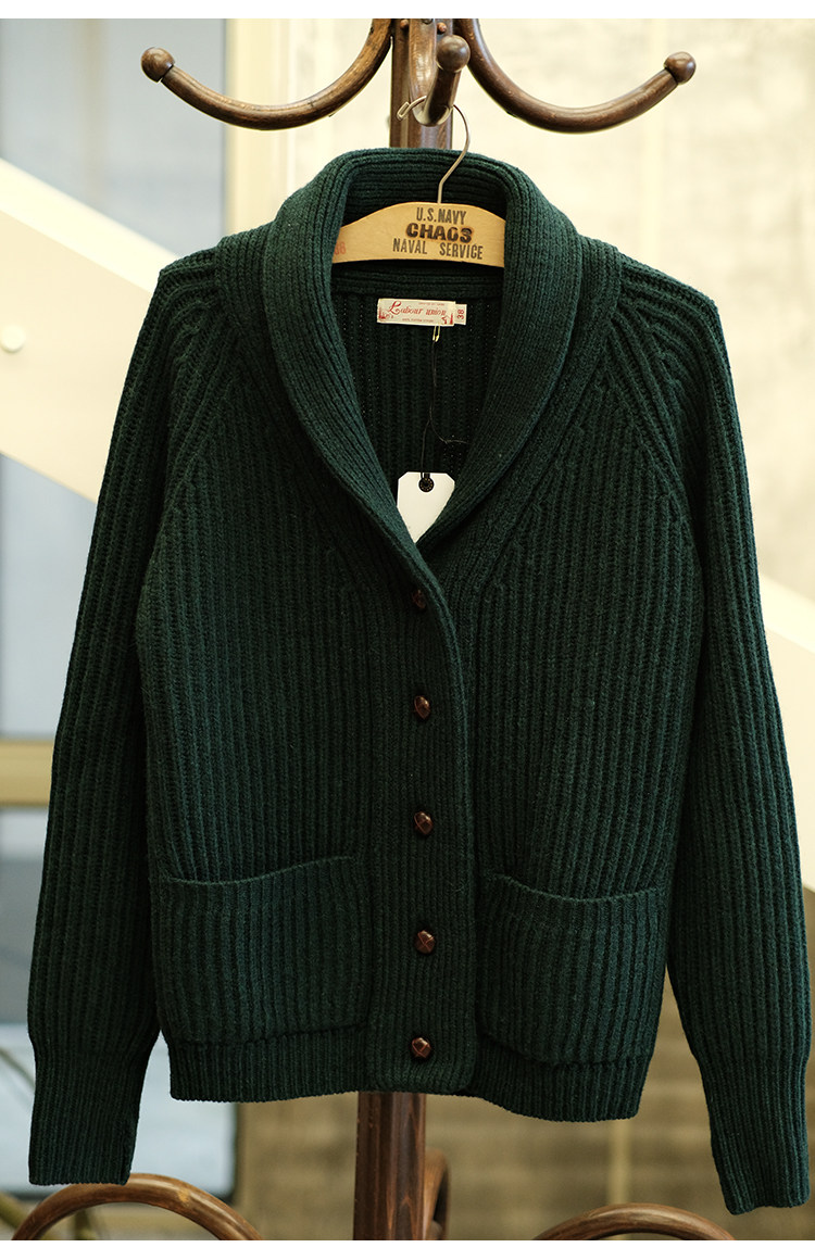 Университетский союз импортный шерстяный лацкан кардиганский свитер.