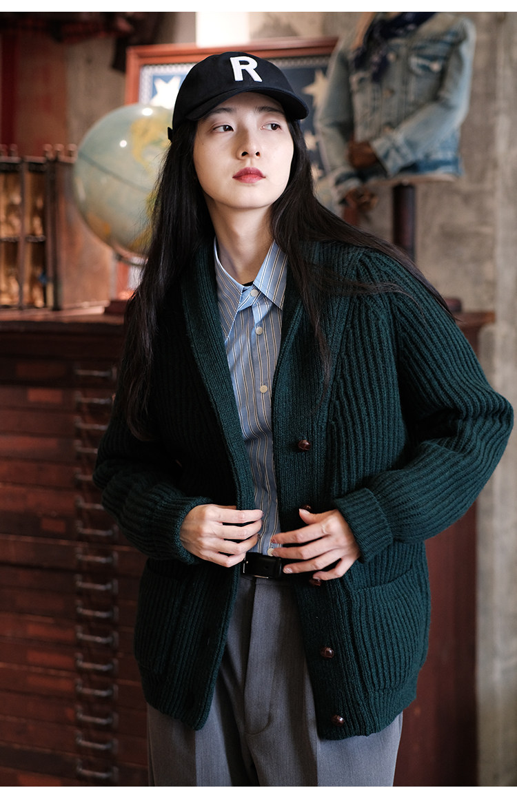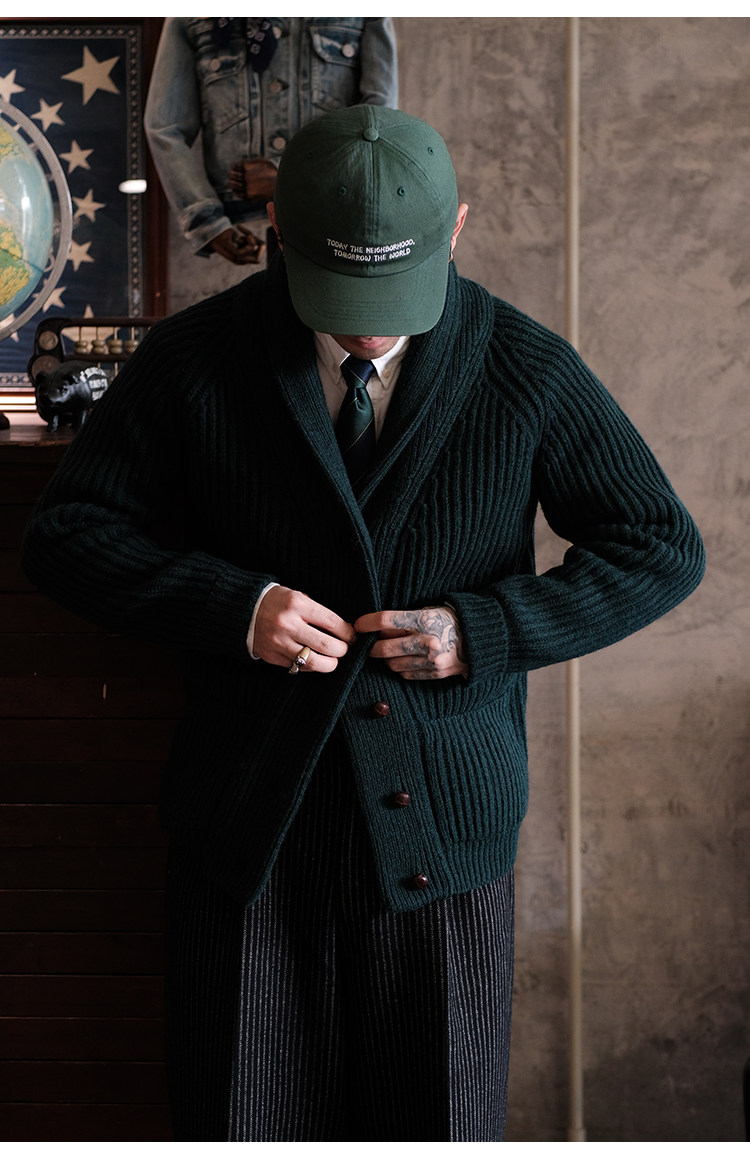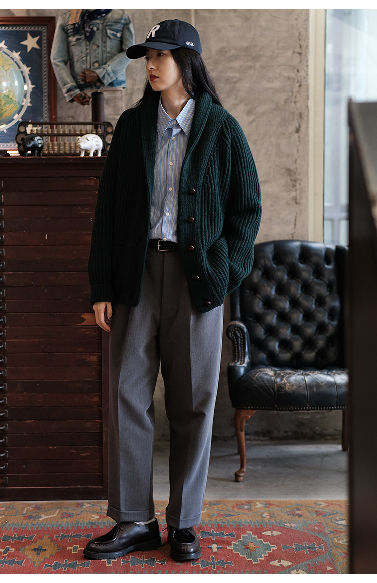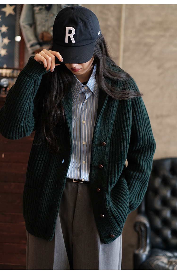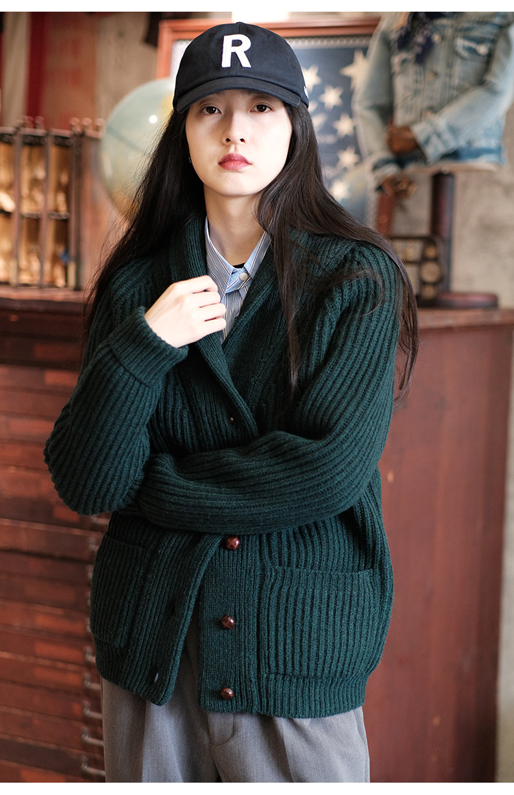 Университетский союз импортный шерстяный лацкан кардиганский свитер.
