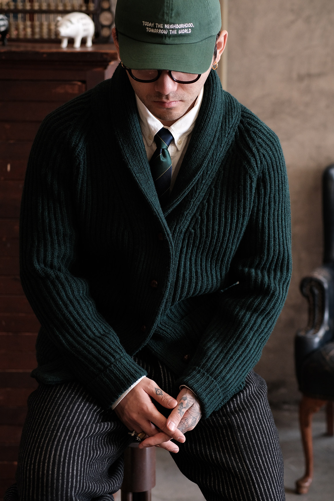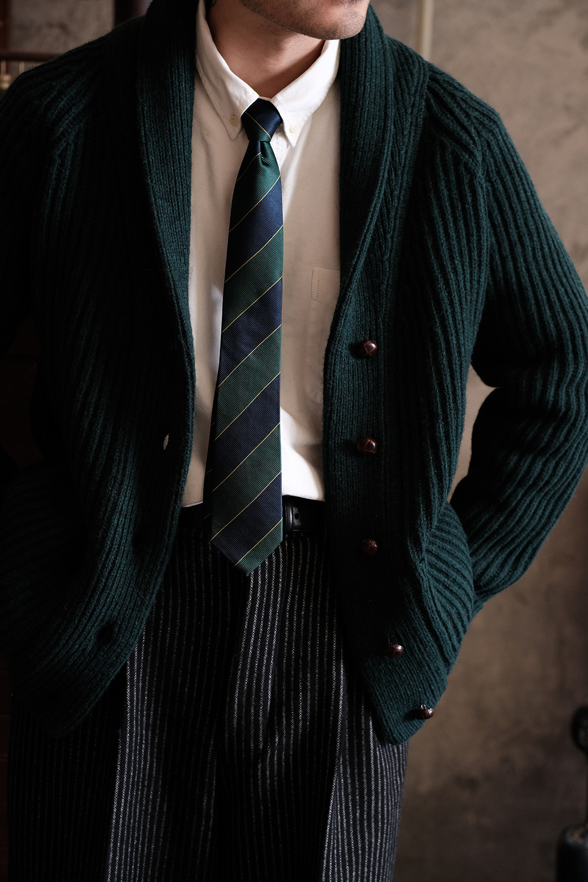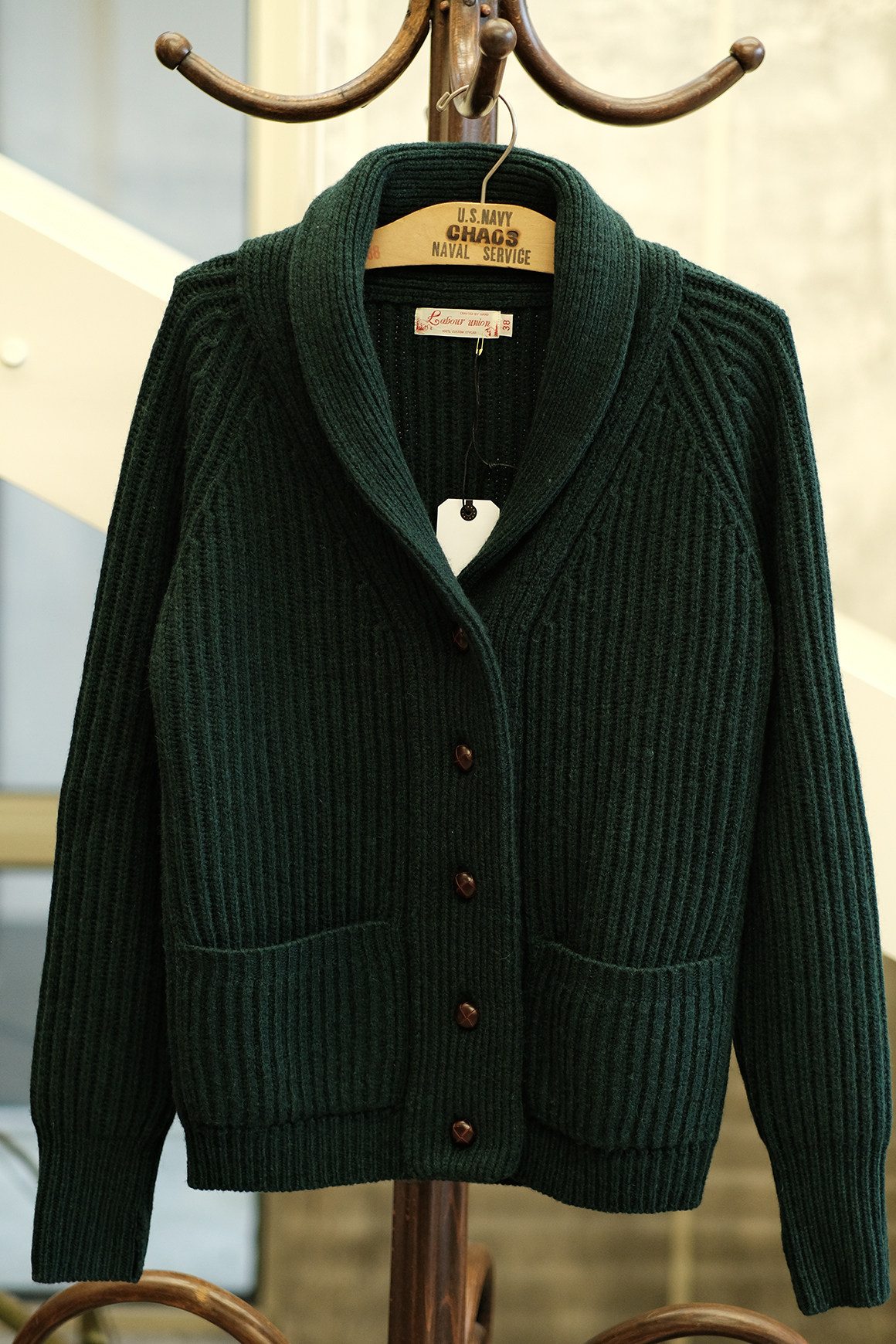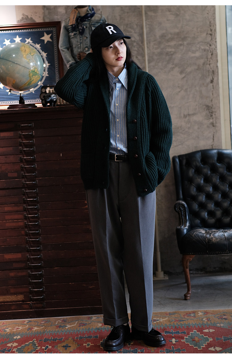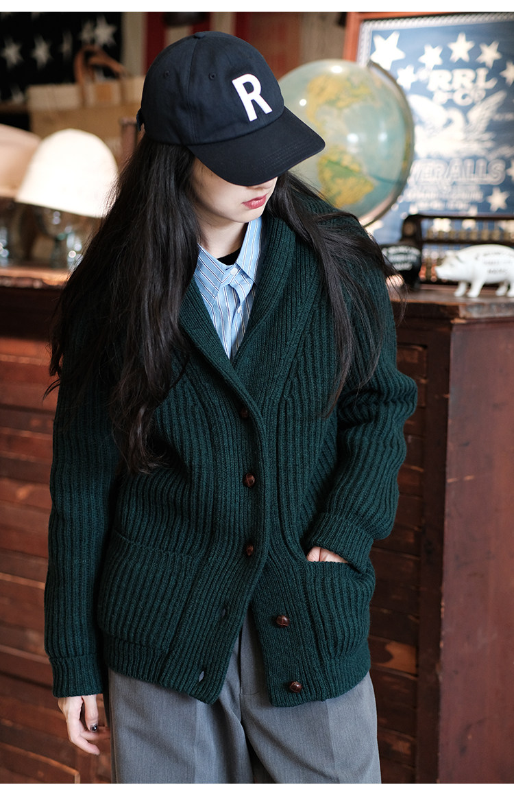 Университетский союз импортный шерстяный лацкан кардиганский свитер.