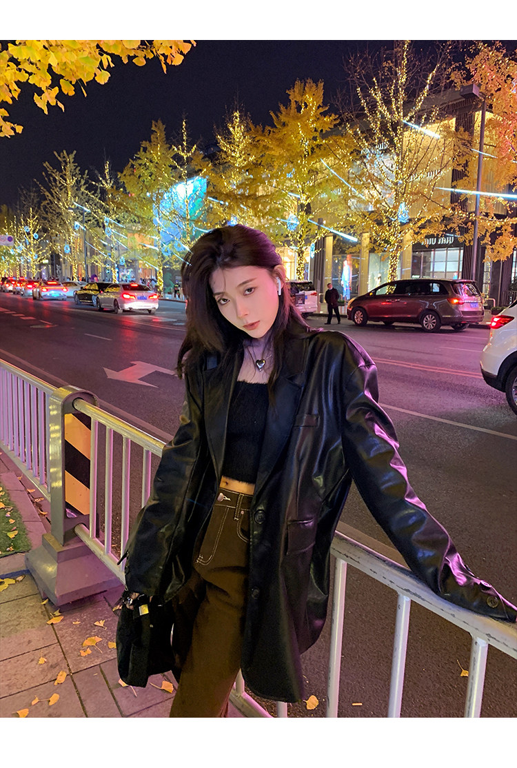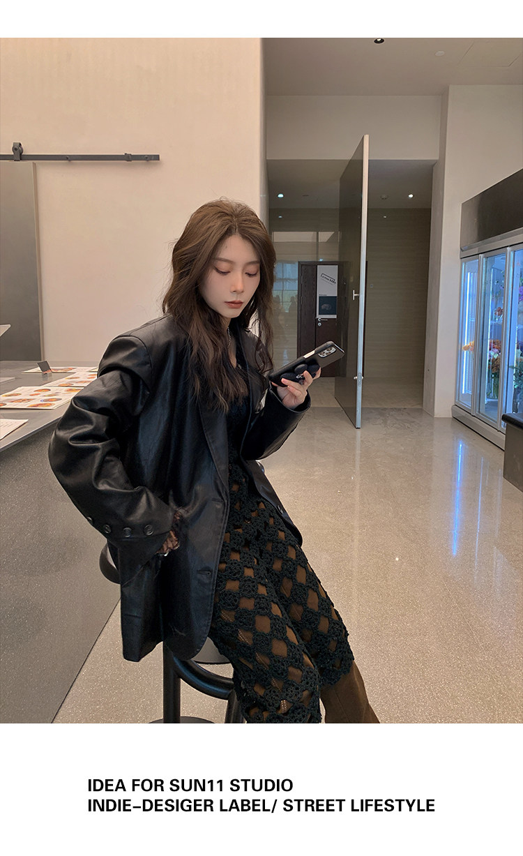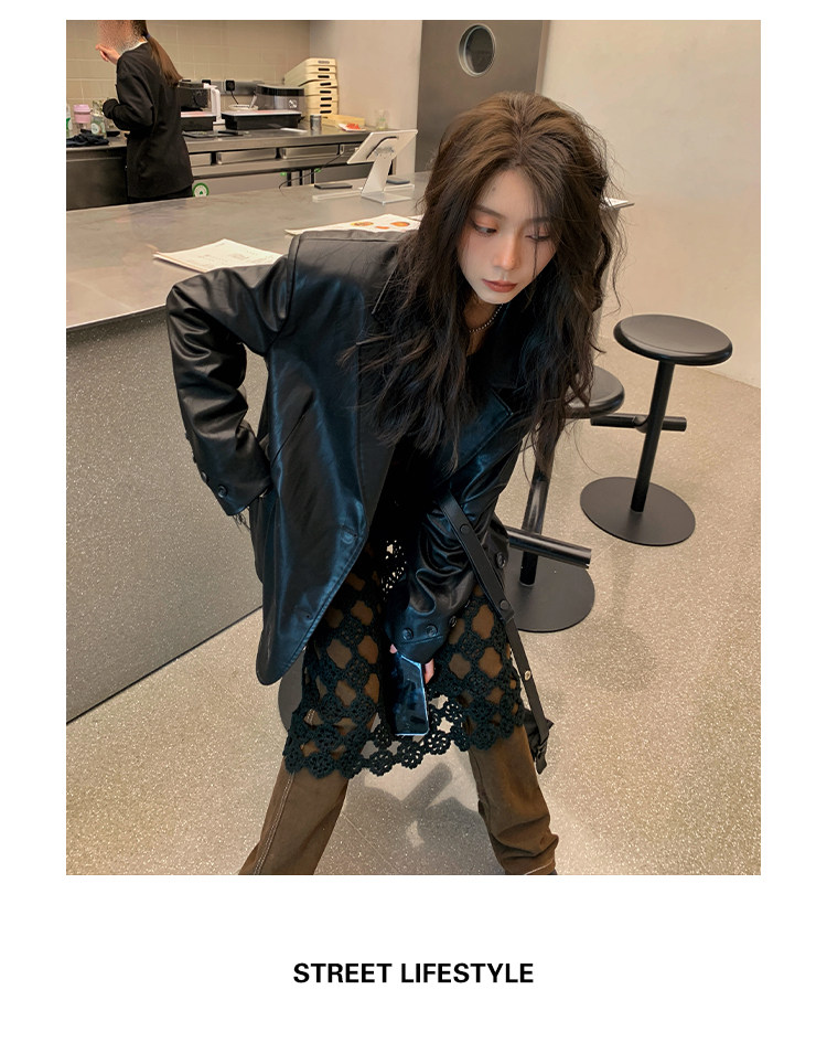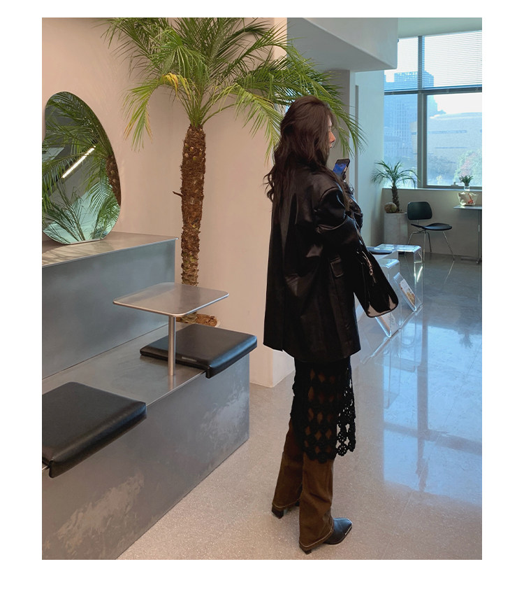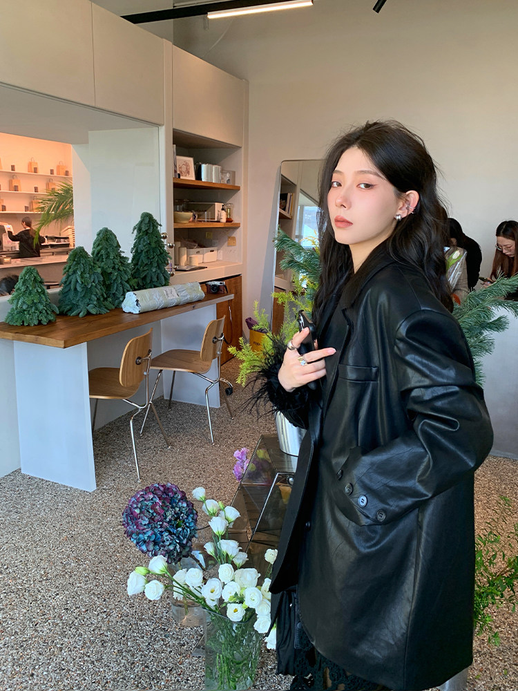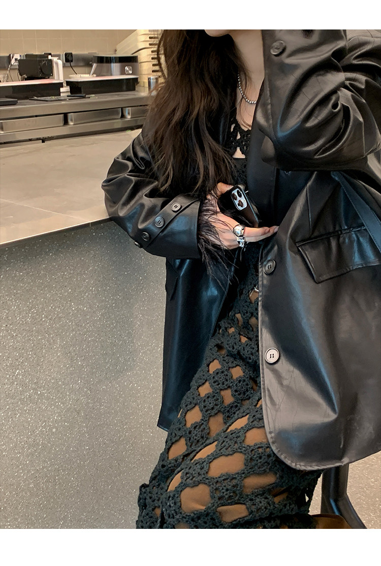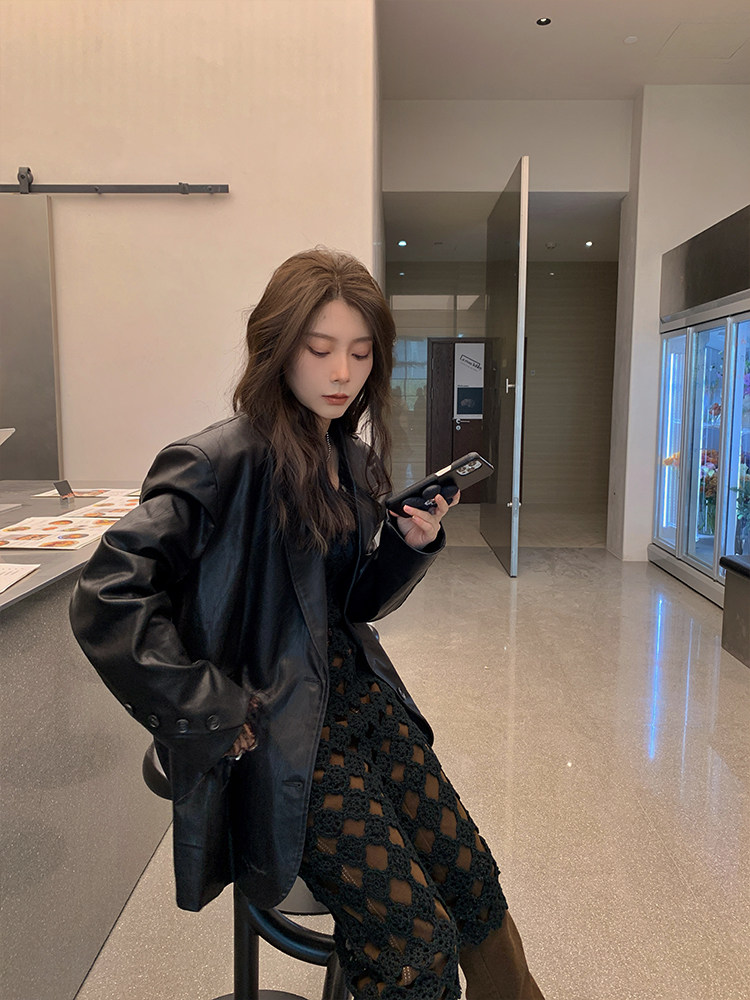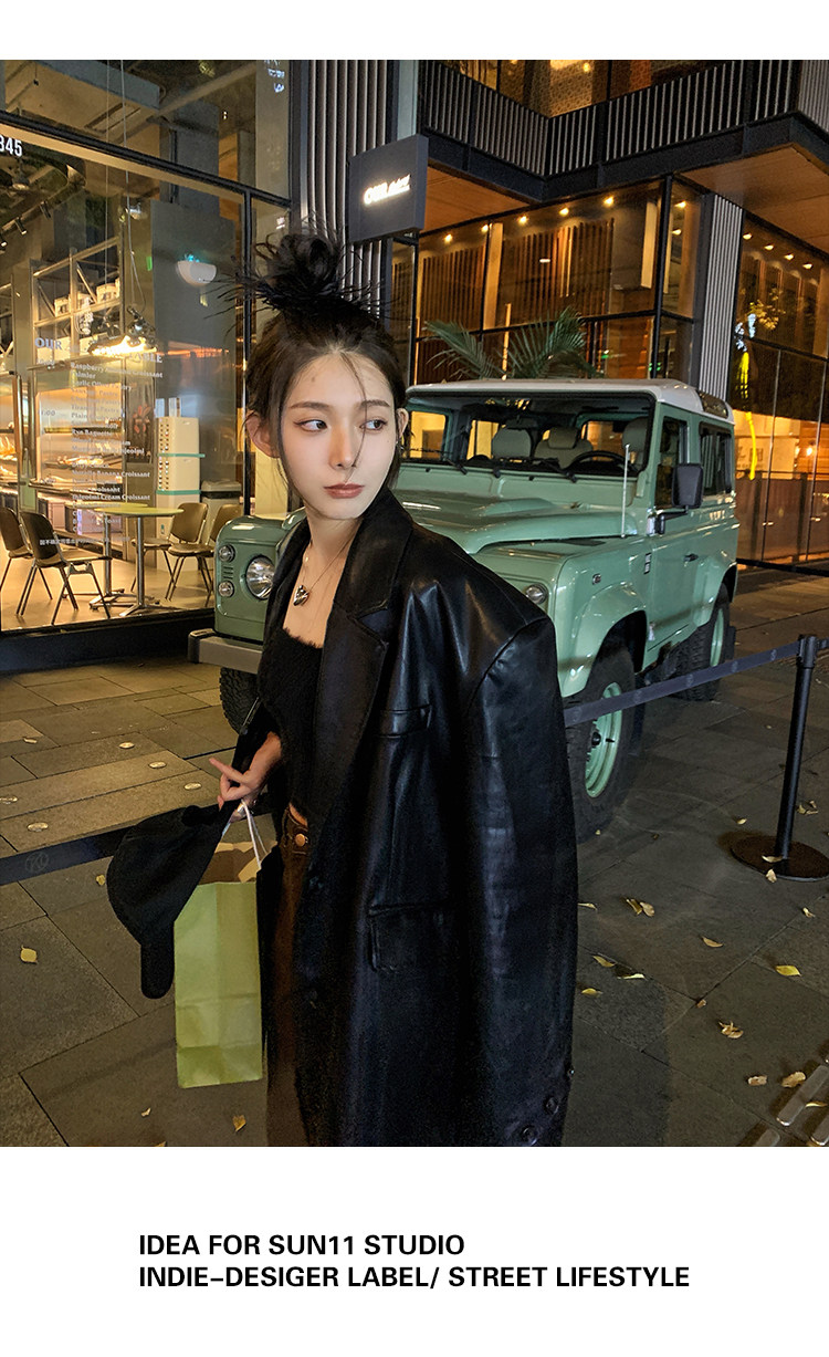 Черная осенняя дизайнерская куртка, полиуретановый длинный костюм, подходит для подростков, изысканный стиль, средней длины, 2022