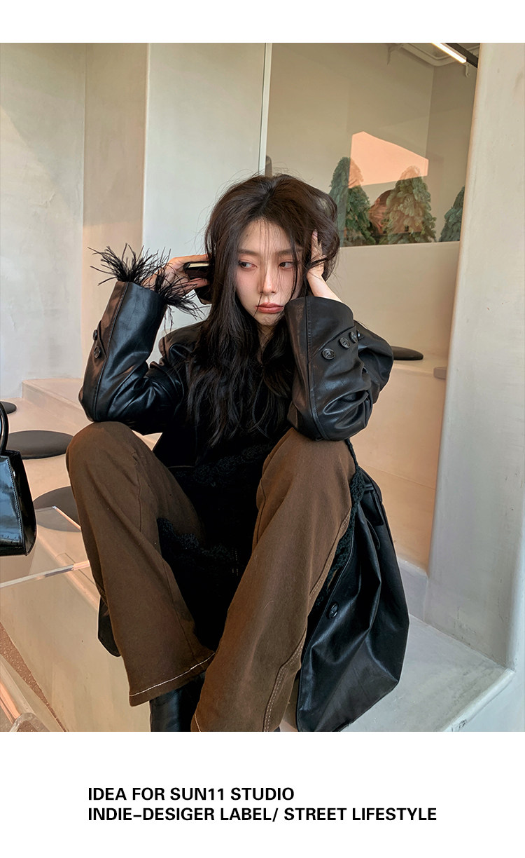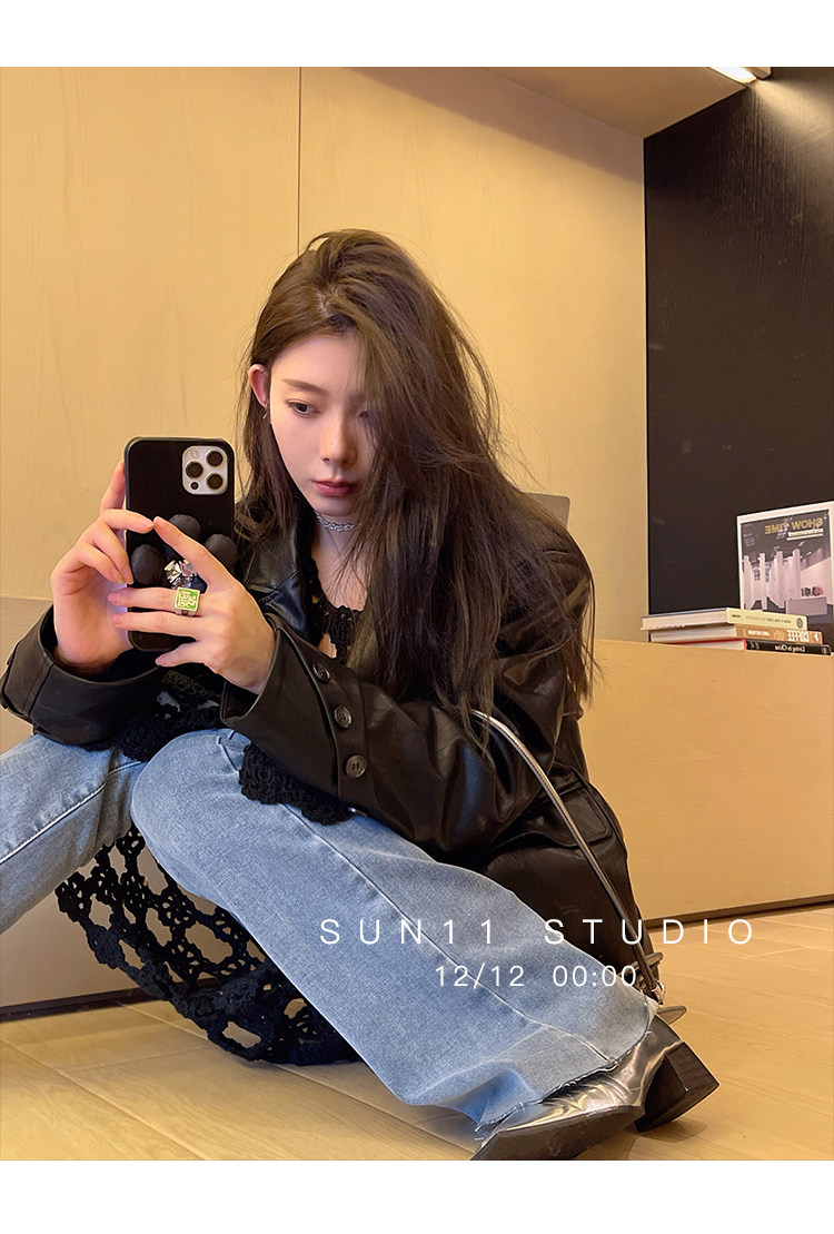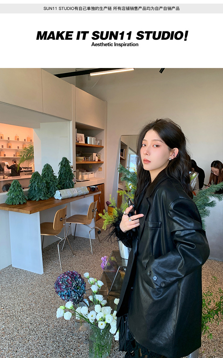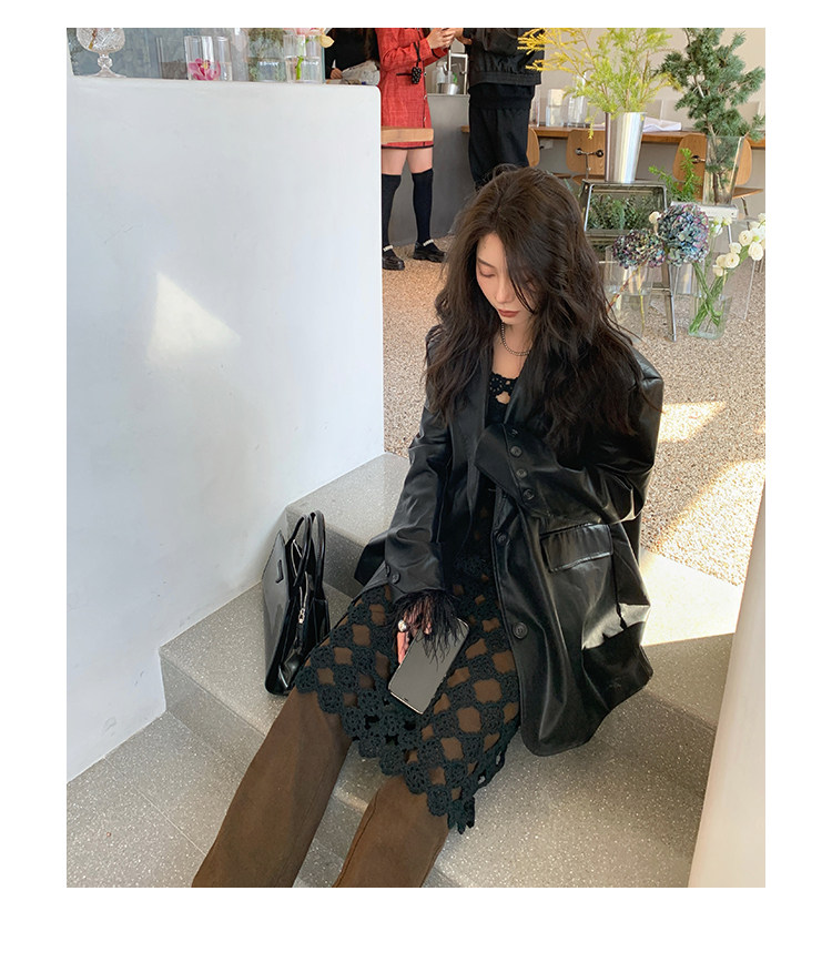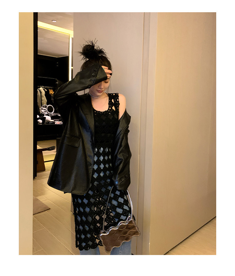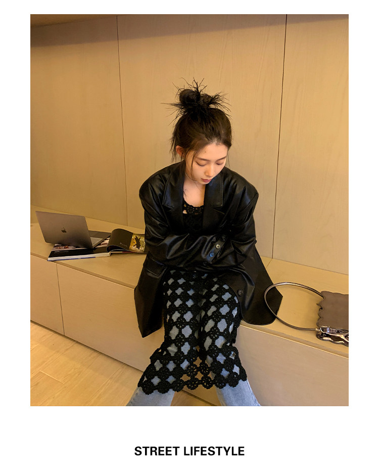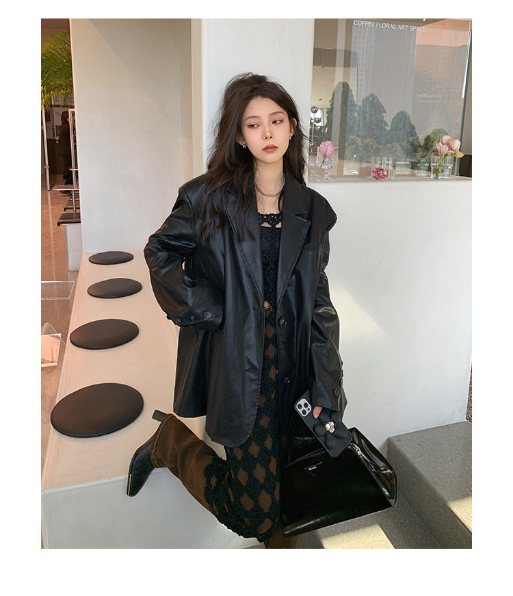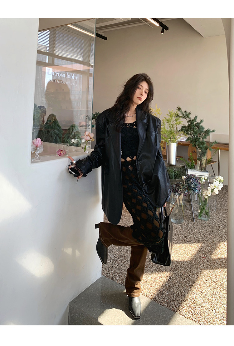 Черная осенняя дизайнерская куртка, полиуретановый длинный костюм, подходит для подростков, изысканный стиль, средней длины, 2022