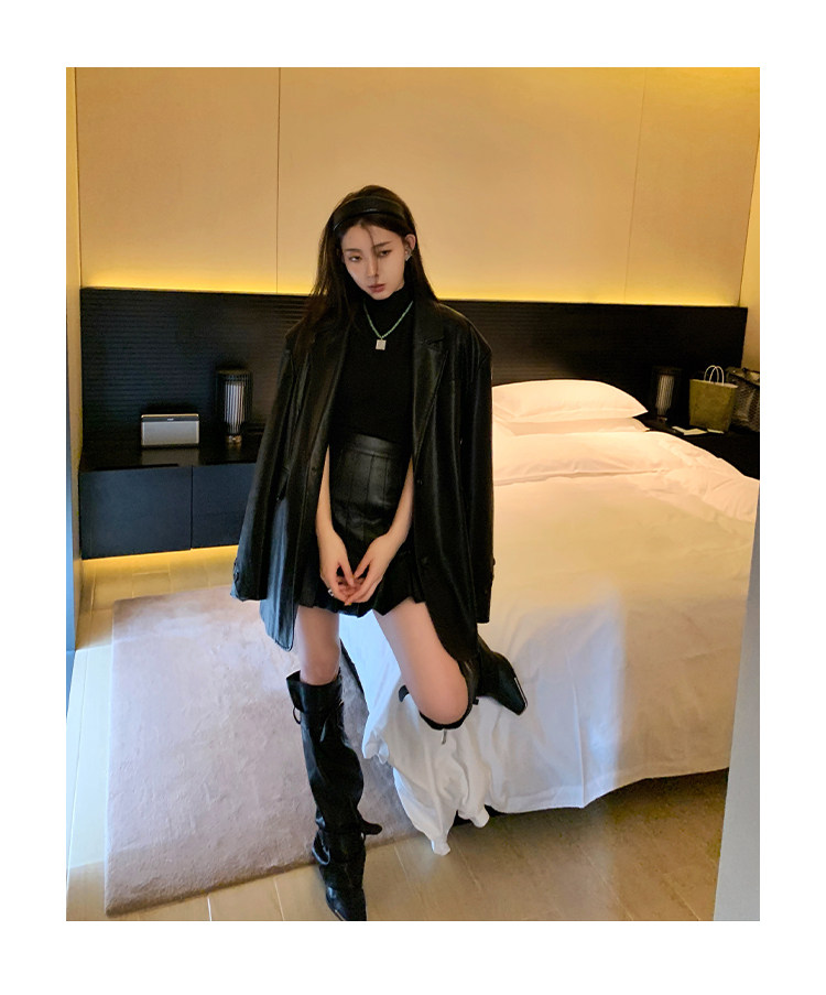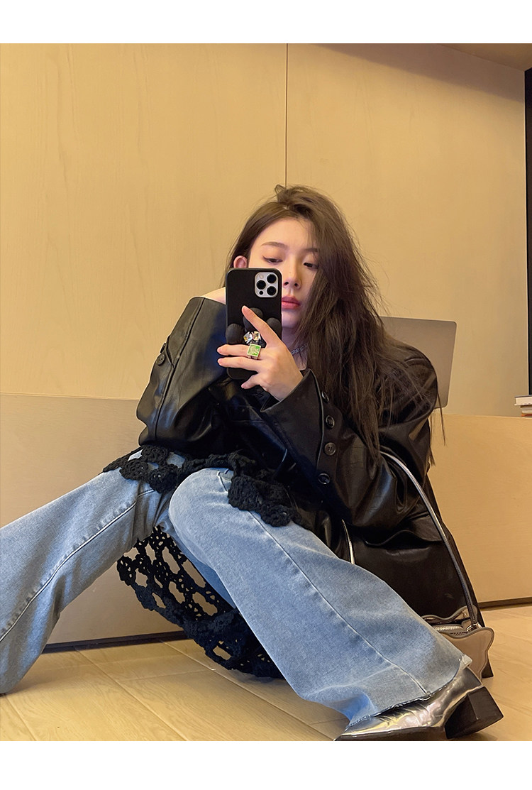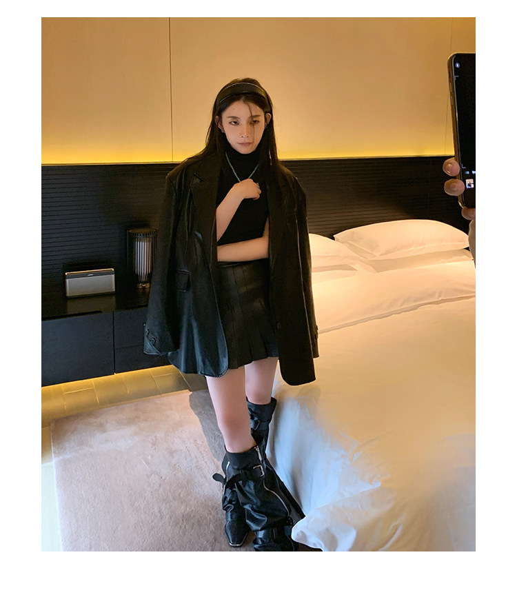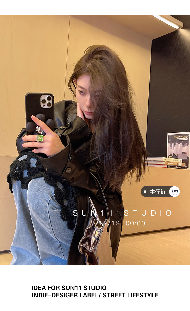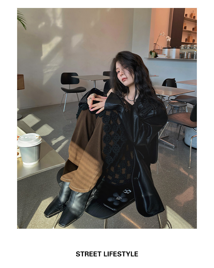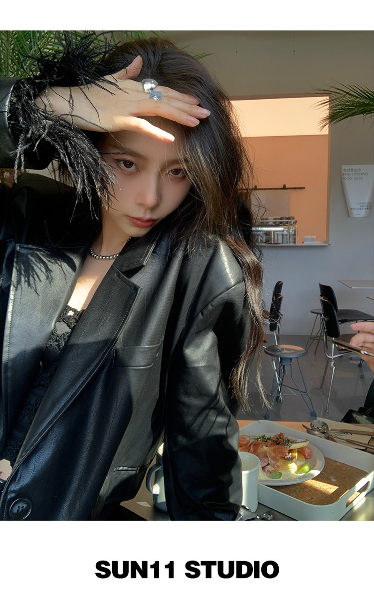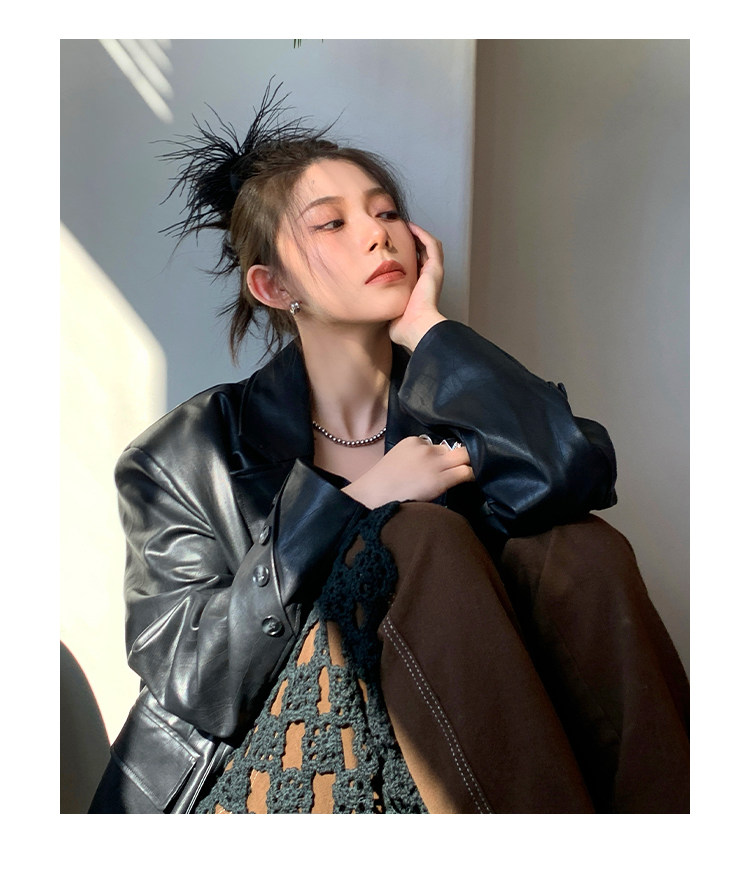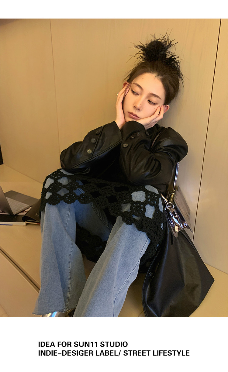Черная осенняя дизайнерская куртка, полиуретановый длинный костюм, подходит для подростков, изысканный стиль, средней длины, 2022