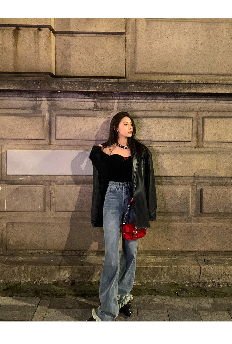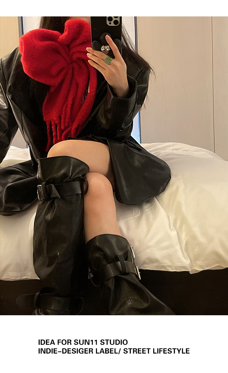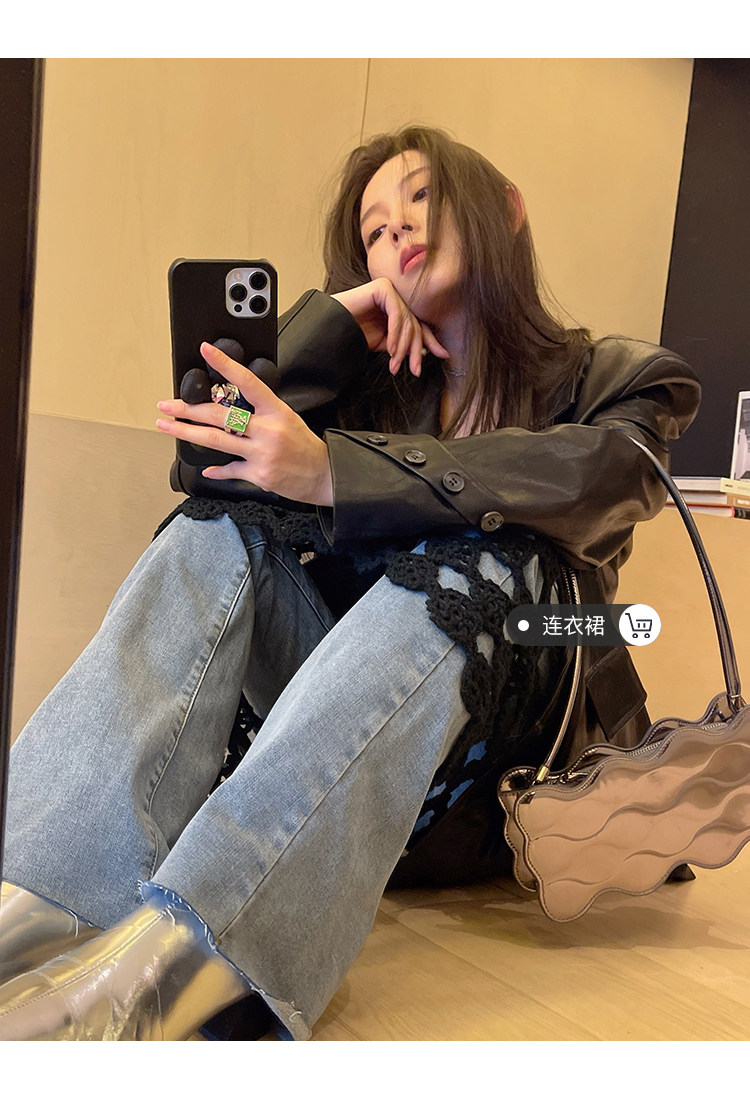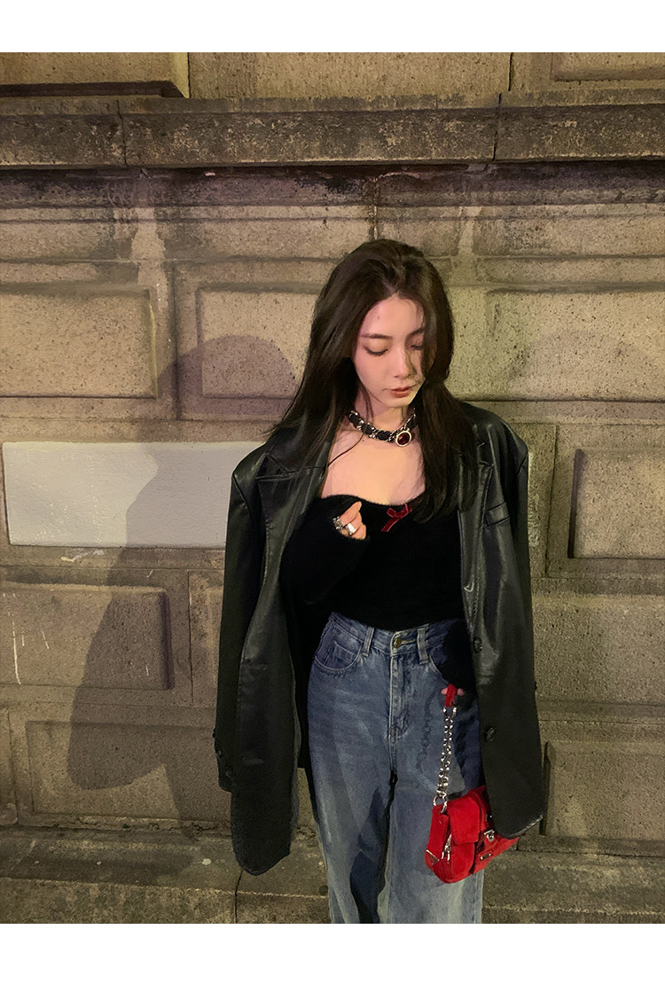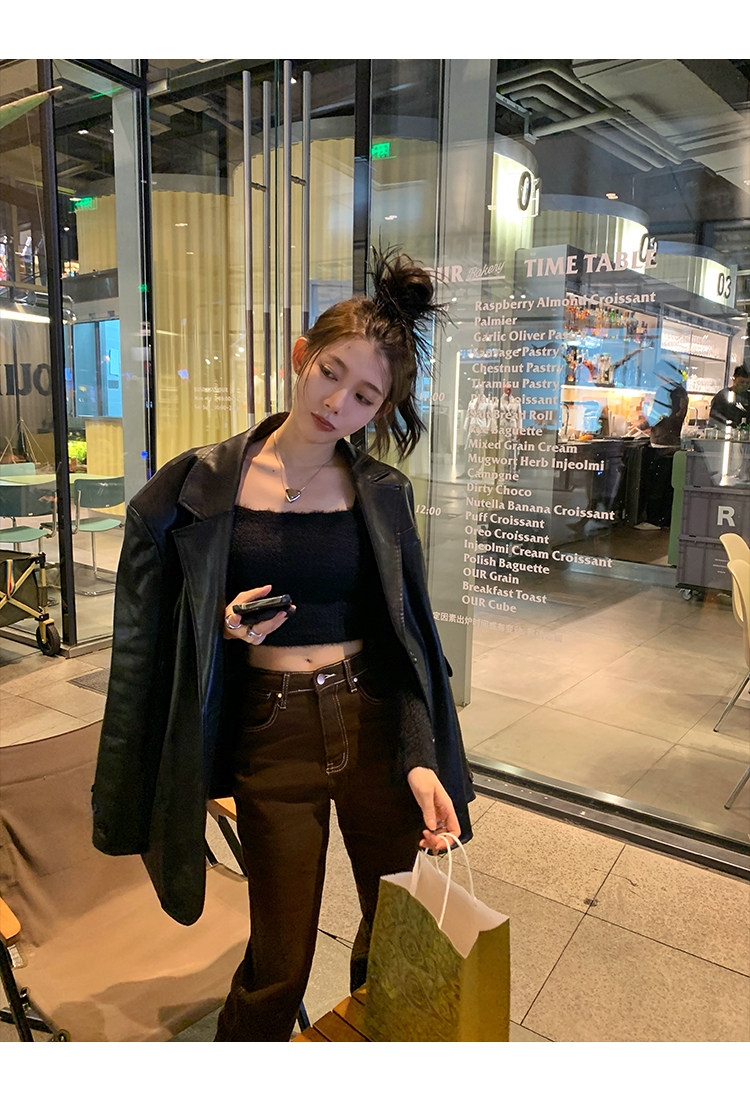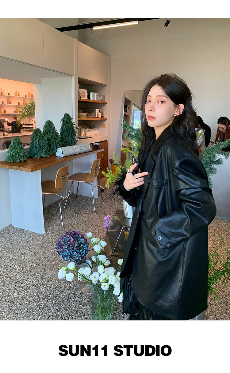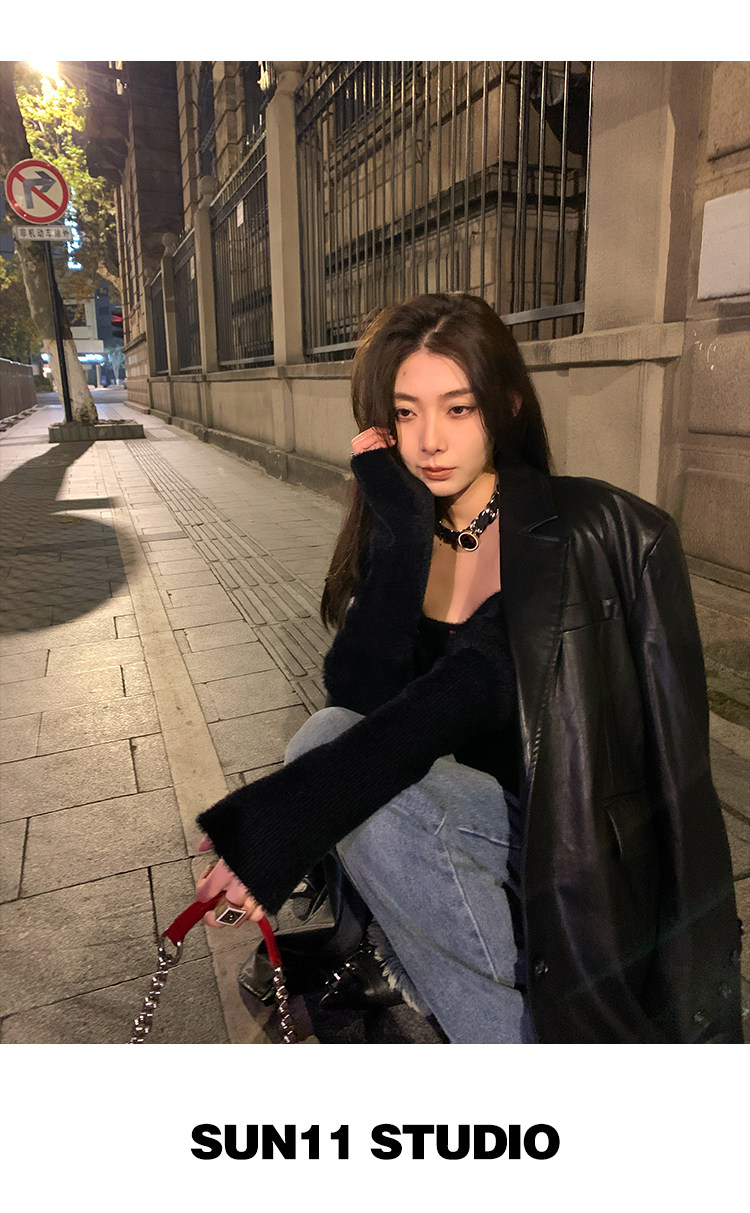 Черная осенняя дизайнерская куртка, полиуретановый длинный костюм, подходит для подростков, изысканный стиль, средней длины, 2022