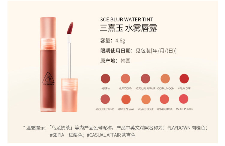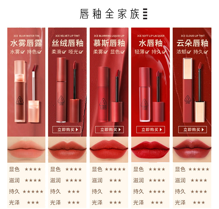 3CE, блеск для губ, гидролат, увлажняющая помада, интенсивное увлажнение, полупрозрачная растушевка, долговременный эффект, официальный продукт