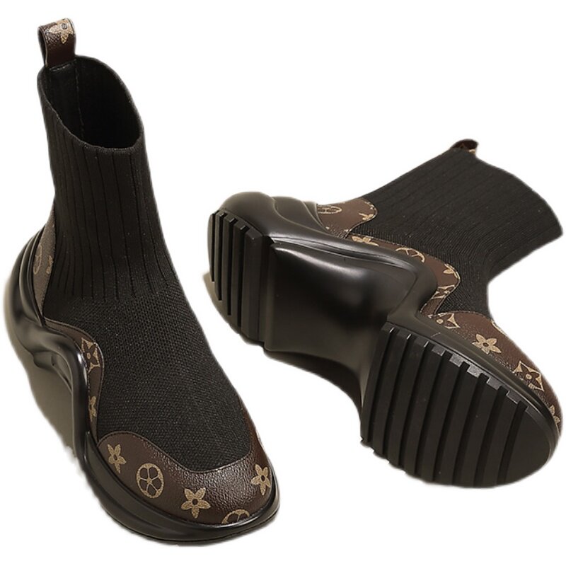 Эластичные зимние носки, короткие сапоги для отдыха, европейский стиль, из натуральной кожи