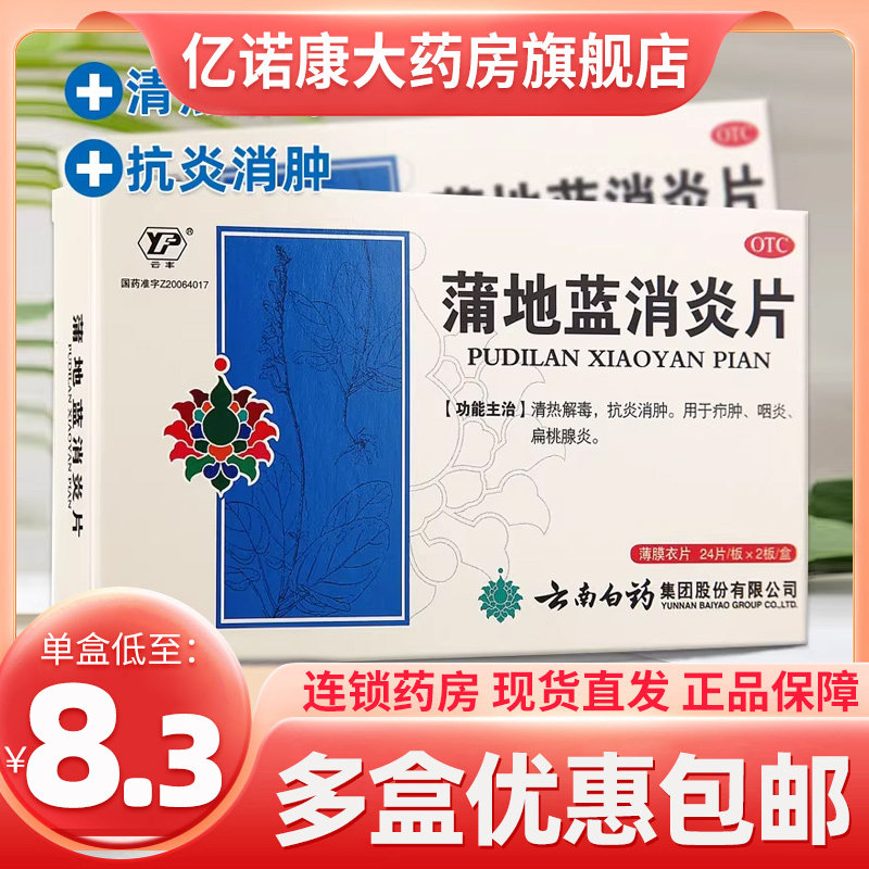 Юньнан Байяо Юнфенг Пу ди -синие таблетки против антитата 48 таблетки прозрачная тепло, детоксикация, анти -инфляционная, противодействие фарингиту Тонсиллит