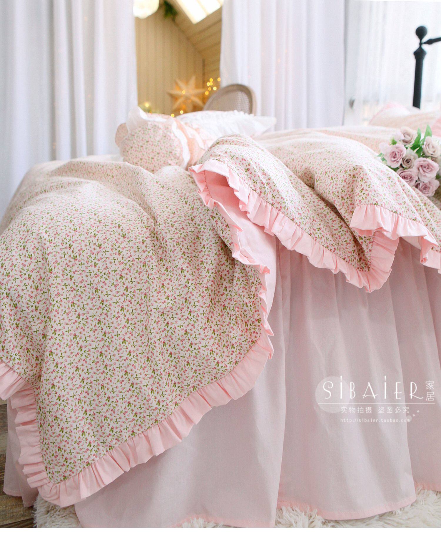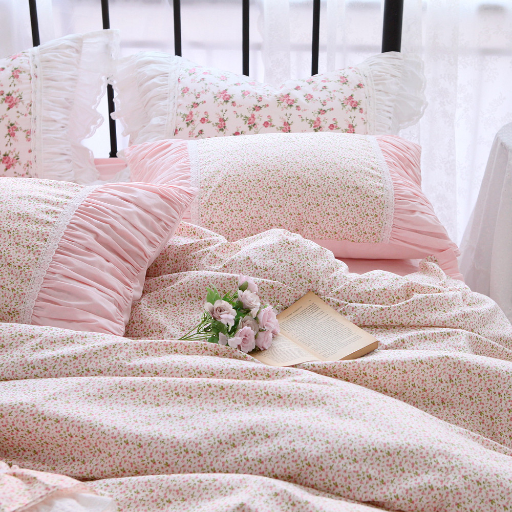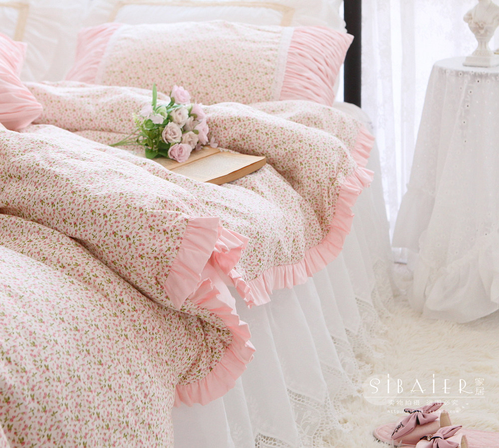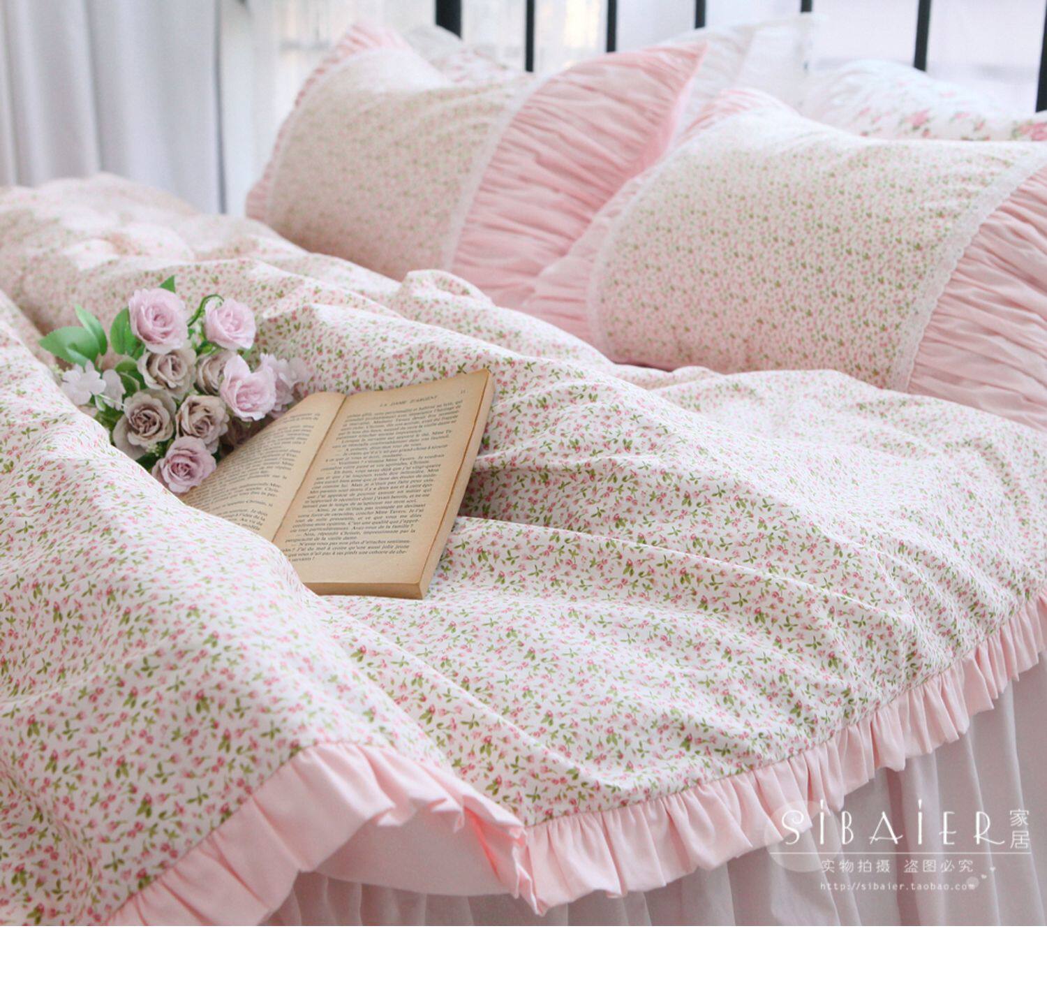 Корейское хлопковое покрывало для принцессы, пододеяльник, комплект, французский стиль, цветочный принт, 4 предмета