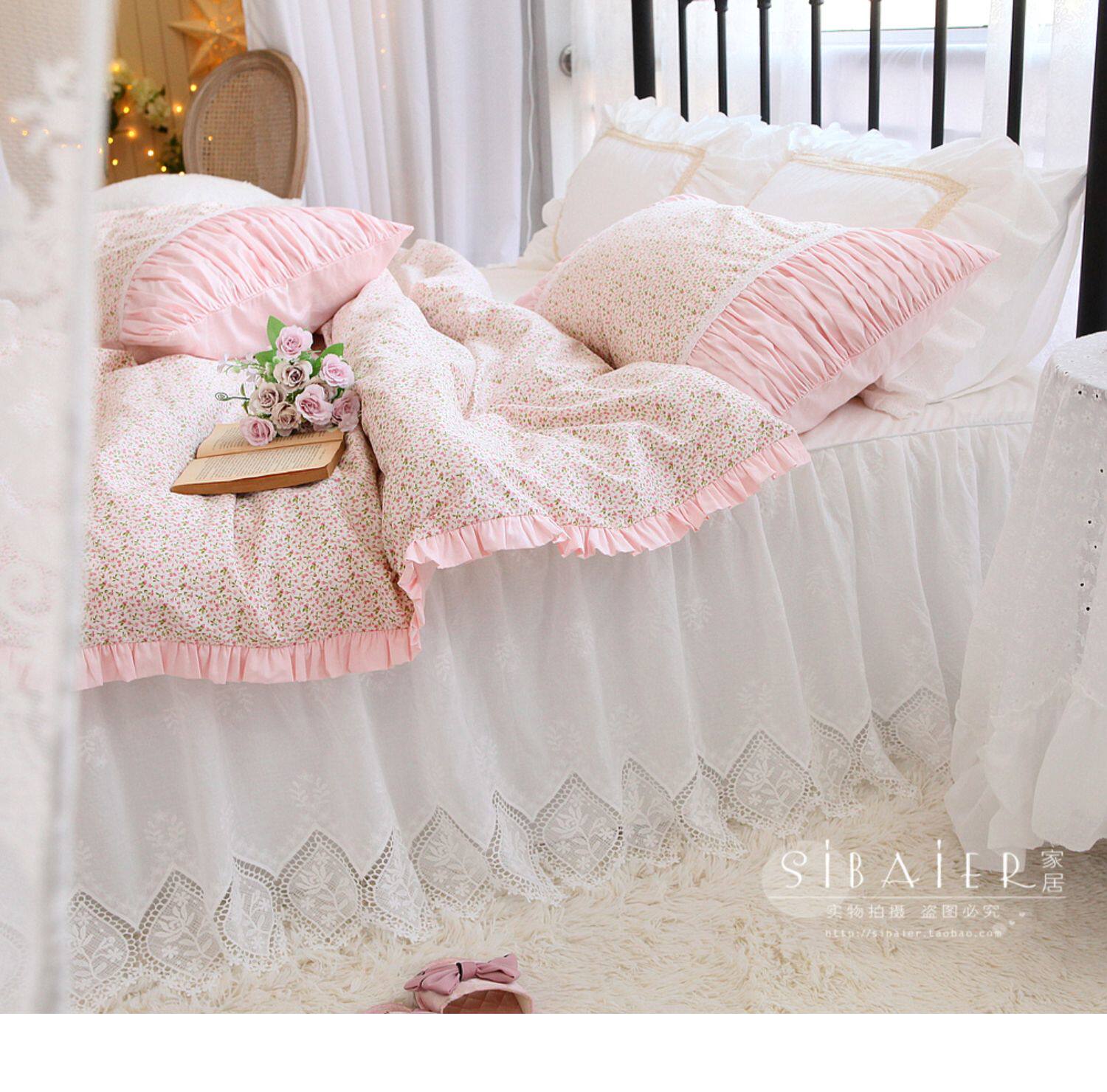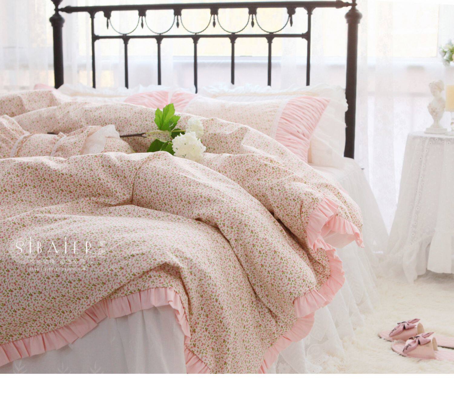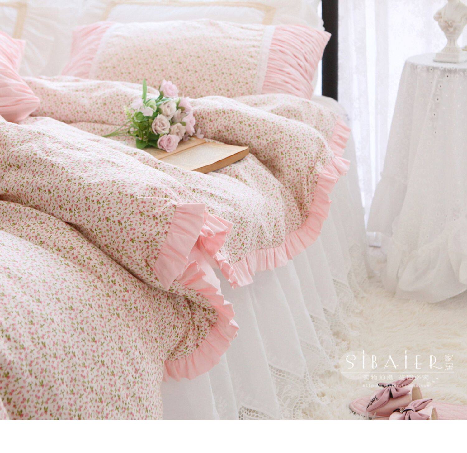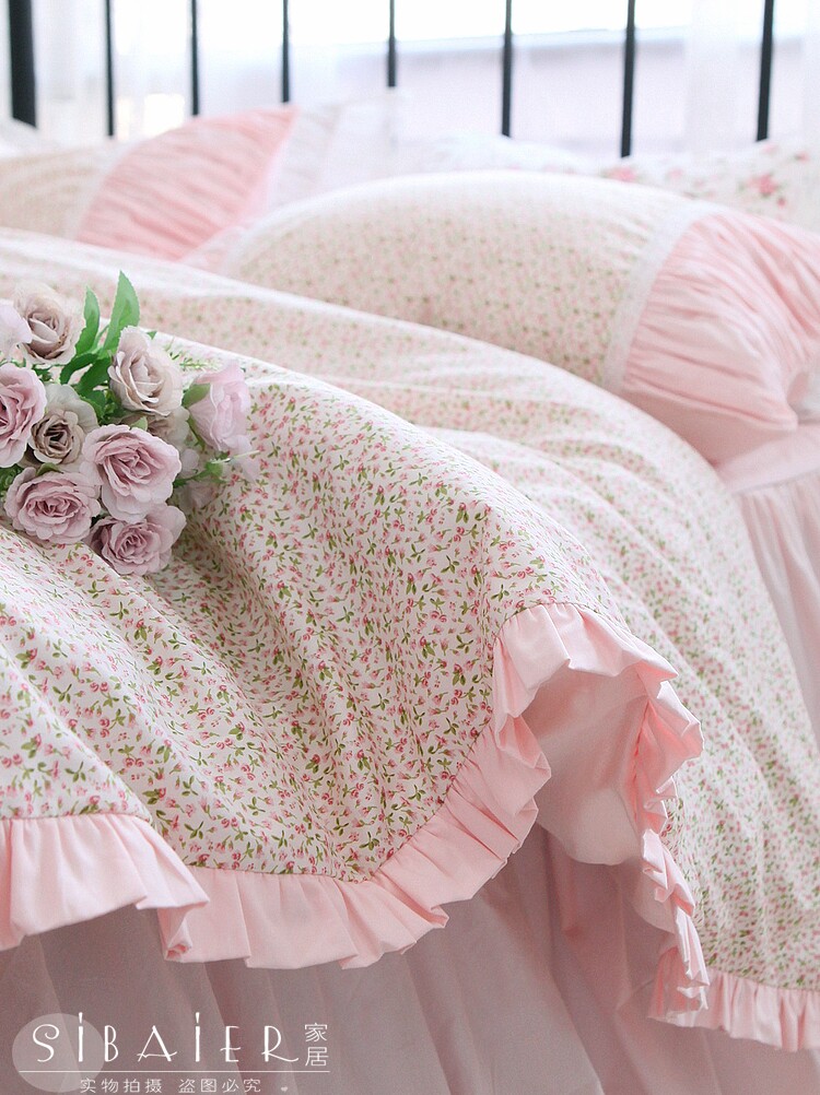 Корейское хлопковое покрывало для принцессы, пододеяльник, комплект, французский стиль, цветочный принт, 4 предмета