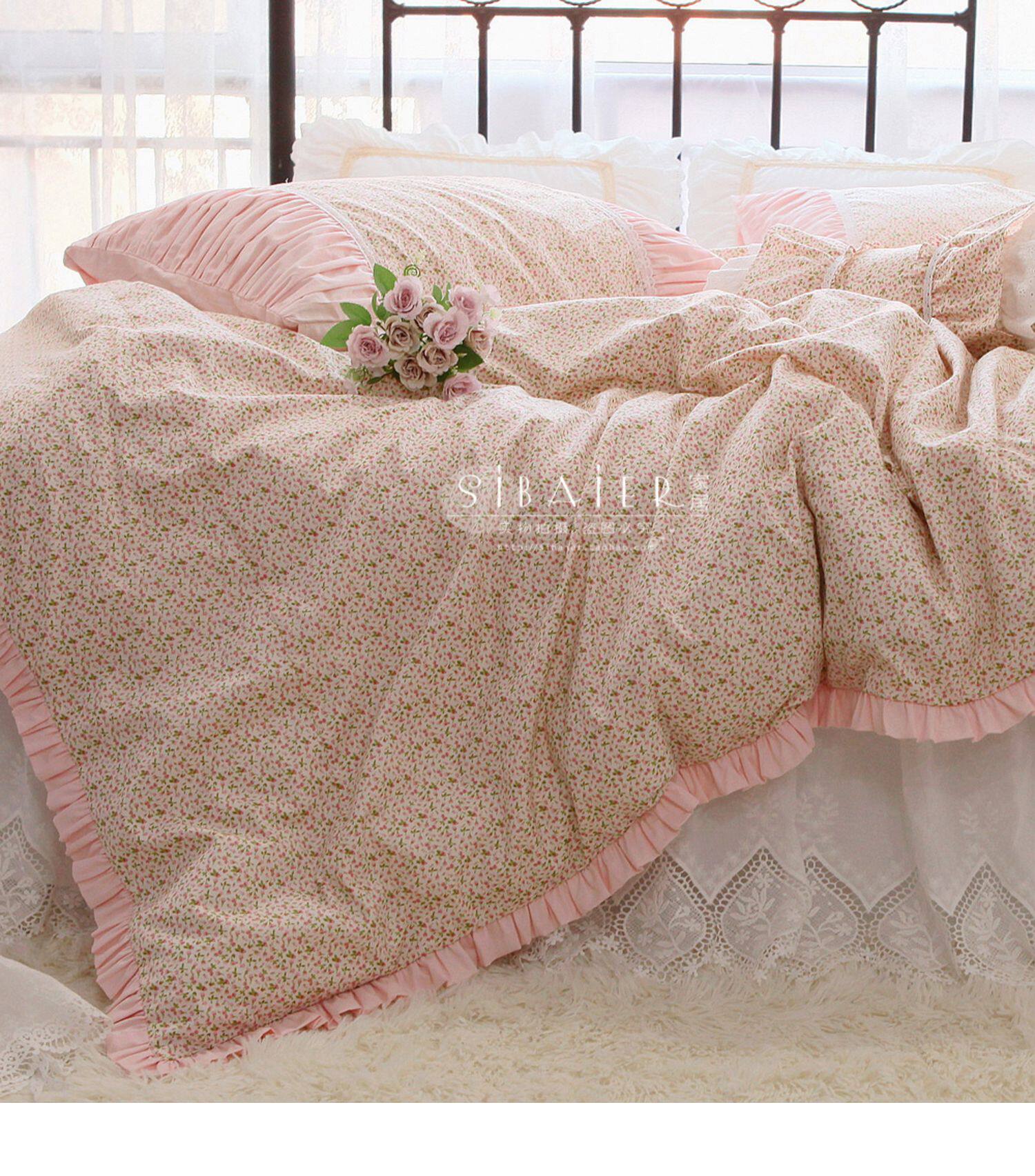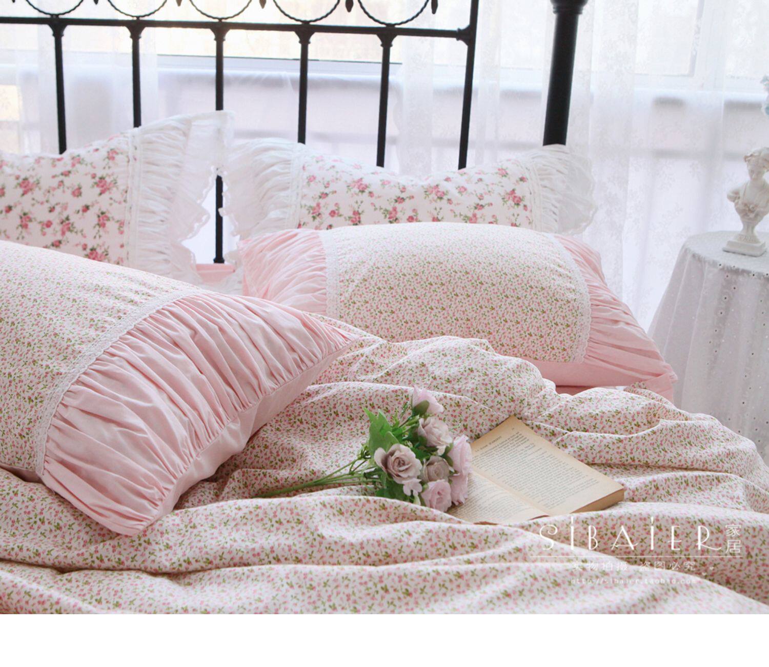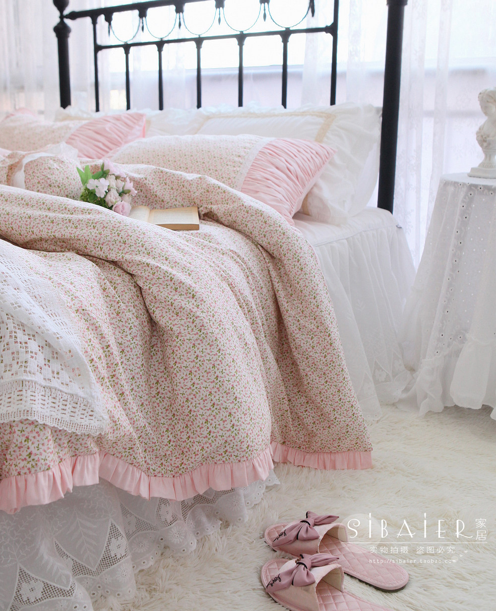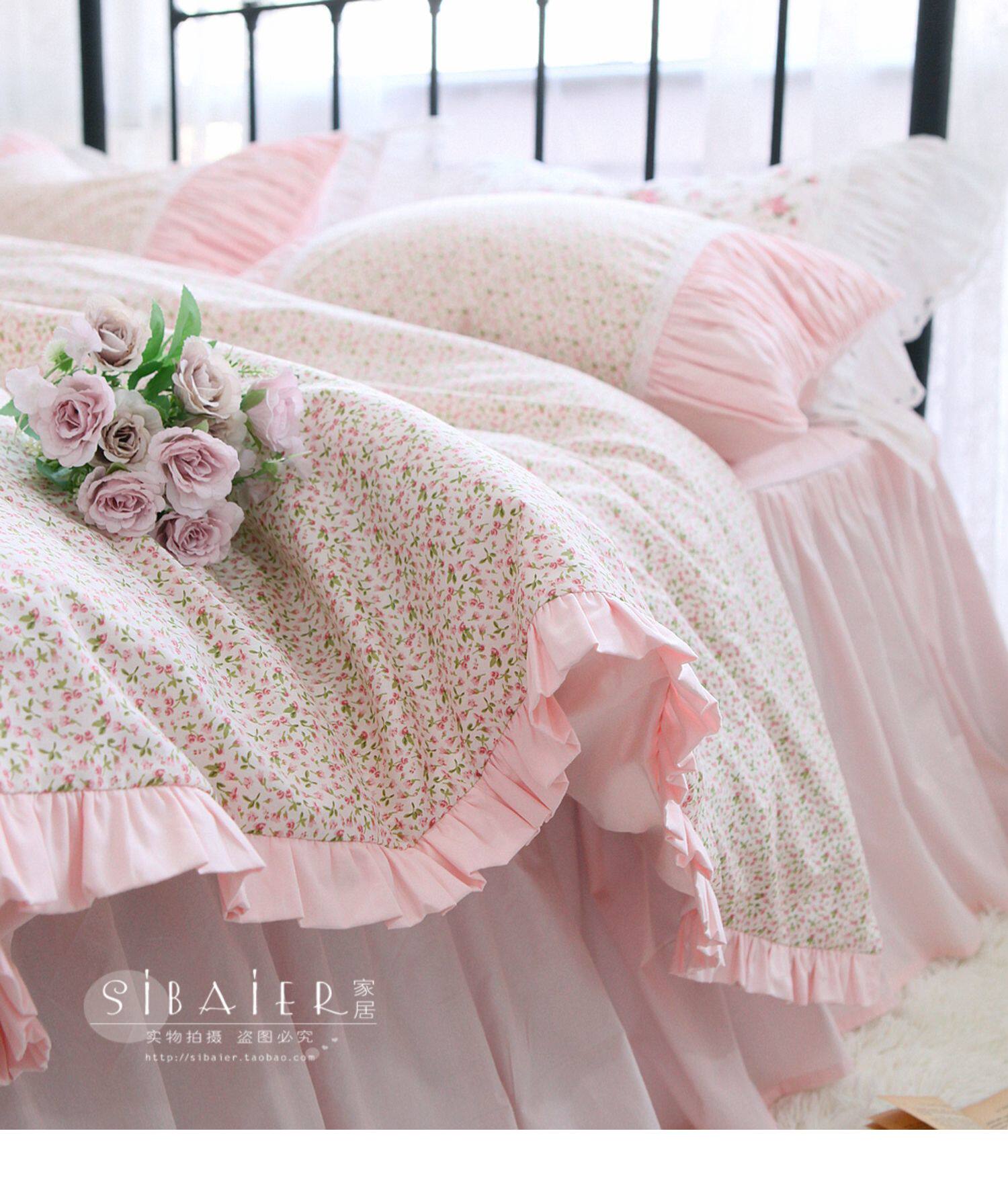 Корейское хлопковое покрывало для принцессы, пододеяльник, комплект, французский стиль, цветочный принт, 4 предмета