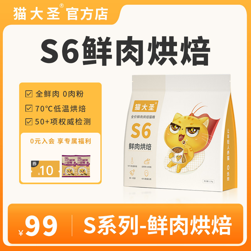 猫大圣 S6 свежее мясо выпекание кошачья еда без долины пищевые жирные волосы, щека, кошачья корма в котят молочный пирог Универсальный 0%Мясо