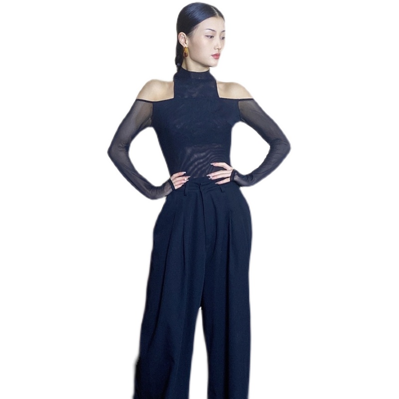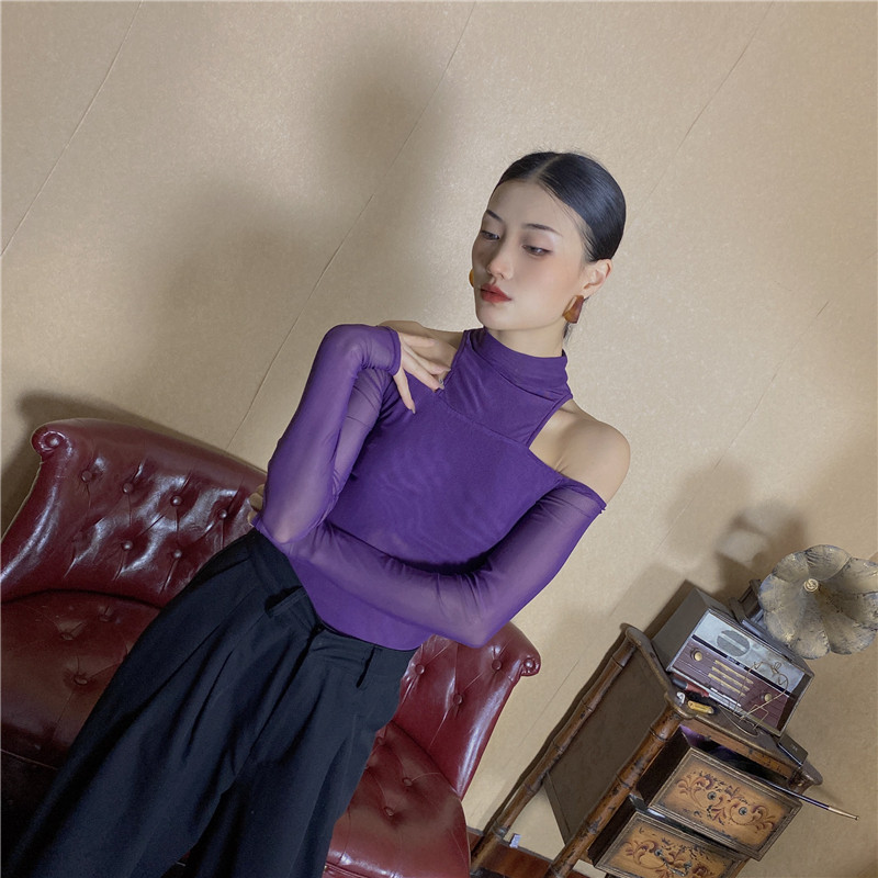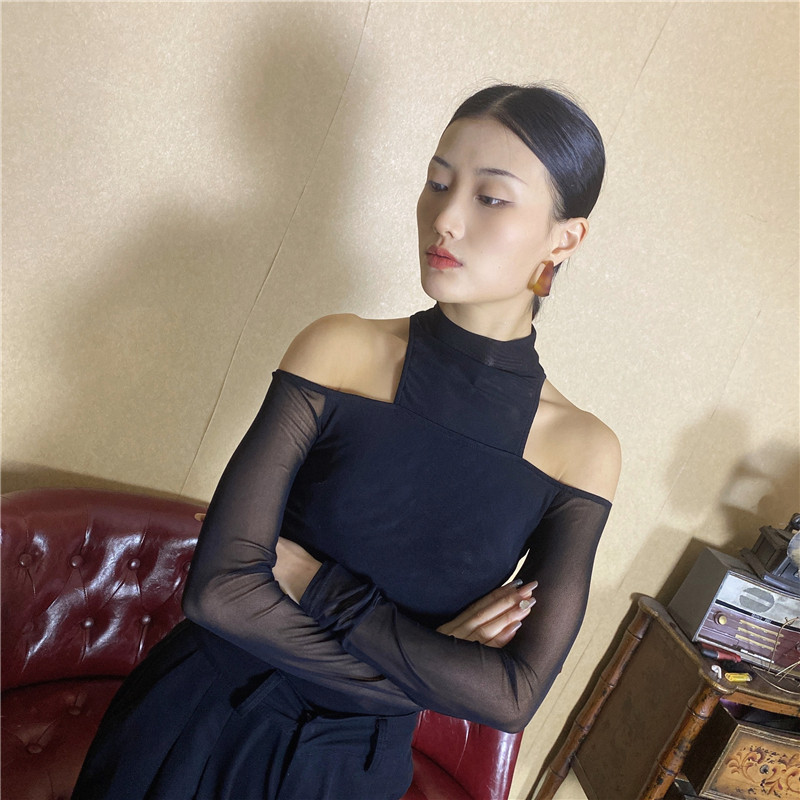 Wyz Gai Gai Jazz Black Wild Fake Два дизайна сетки датчика дизайна соединены с длинными рукавами с длинными рукавами с высокой шеей