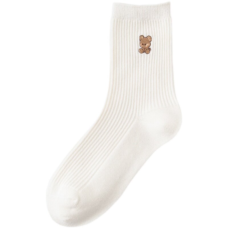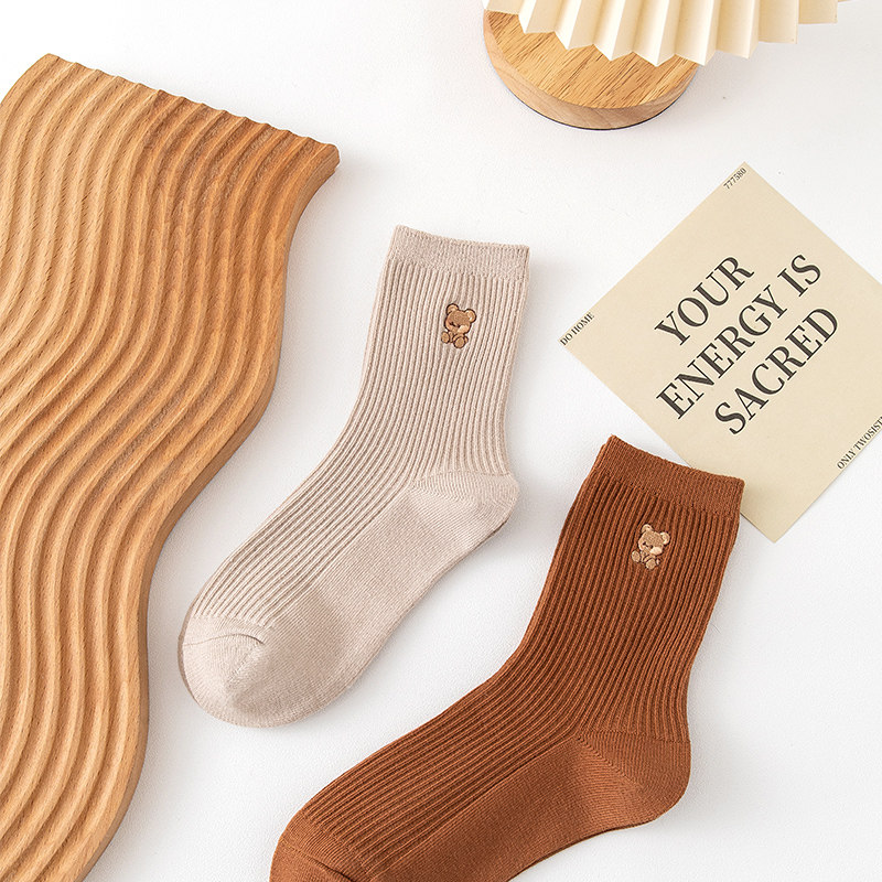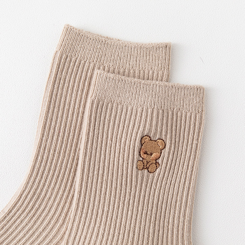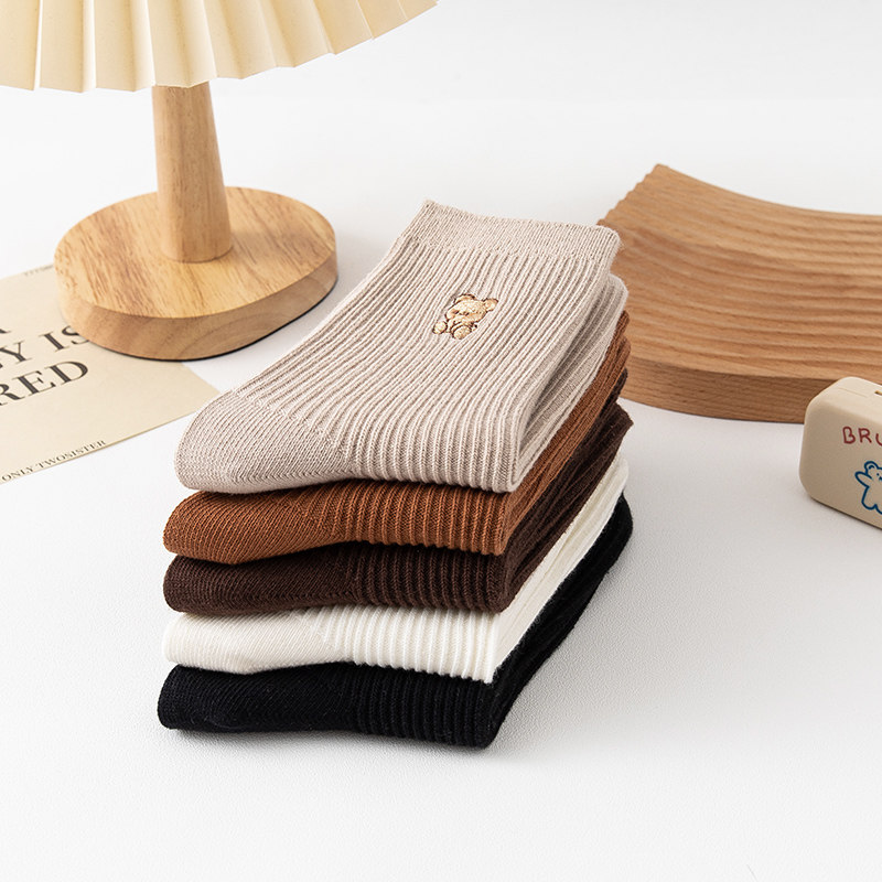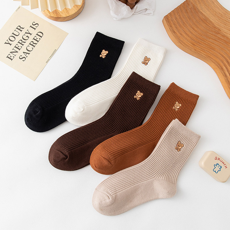 Простые осенние и зимние сплошные цветные медведи вышитые нидистые дамы чистые хлопковые носки классические универсальные японские носки в стиле колледжа