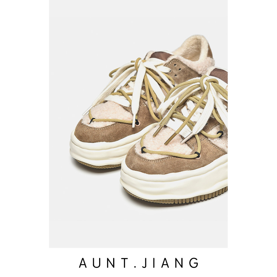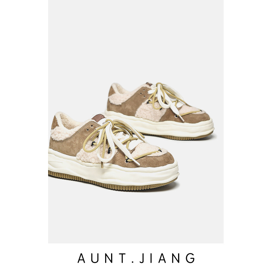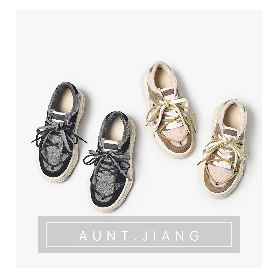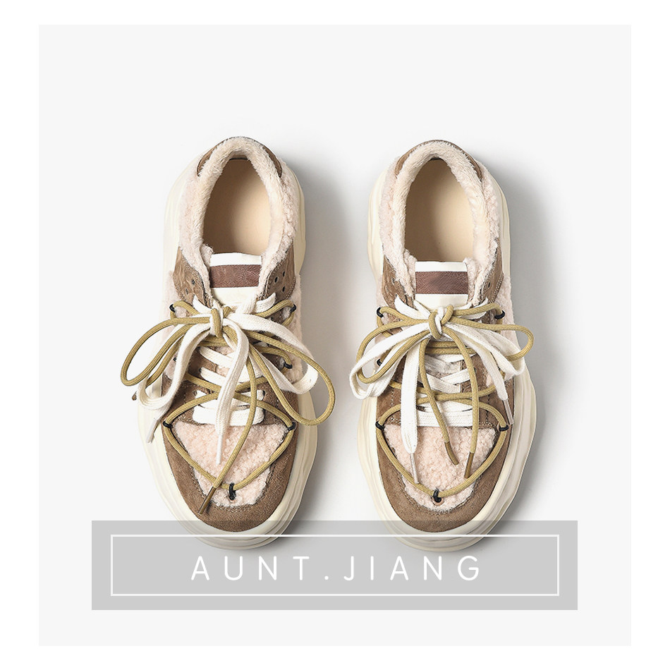 [Тетя Мастер] 2023, осенне-зимняя новая обувь на толстой подошве, бархатная теплая обувь из овечьей шерсти с растворяющимся носком, удлиняющая повседневная обувь