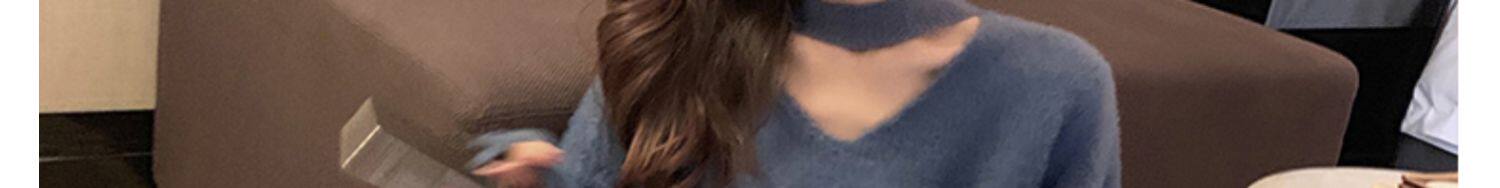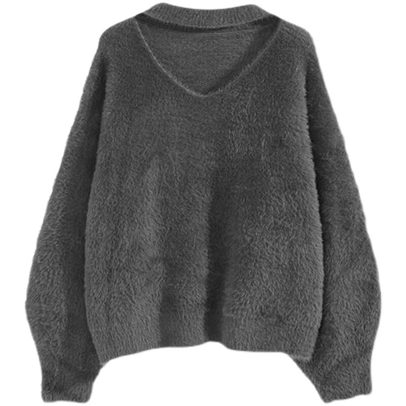 Бархатный демисезонный трикотажный свитер, V-образный вырез, увеличенная толщина, свободный крой
