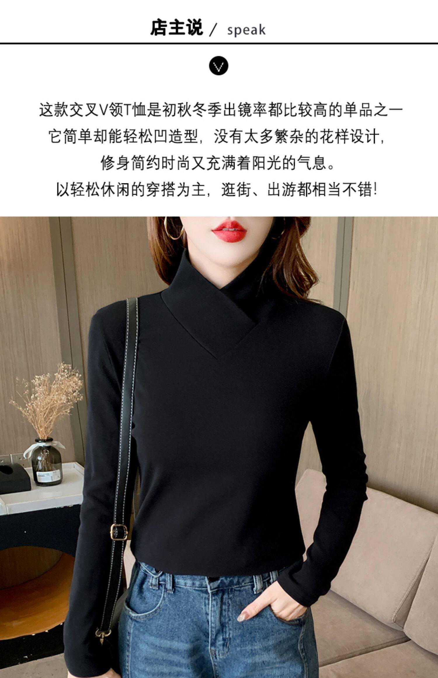Двусторонная бархатная базовая приятная телу демисезонная футболка, V-образный вырез, в западном стиле