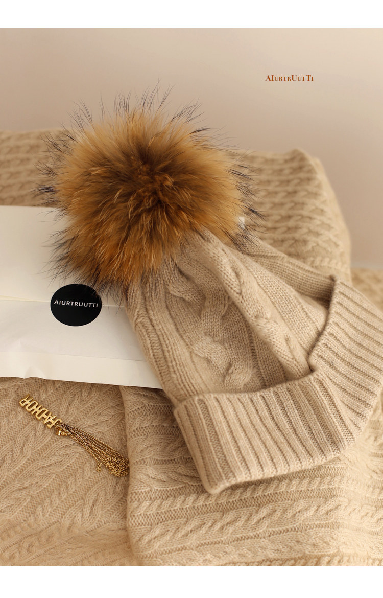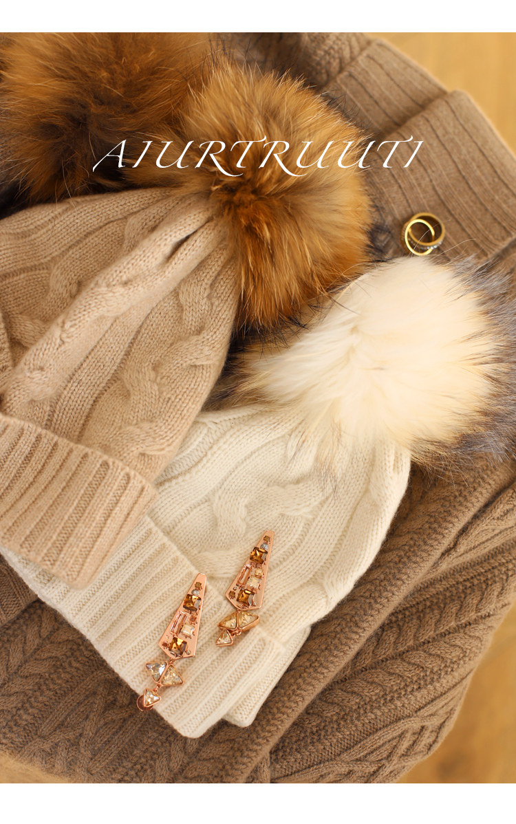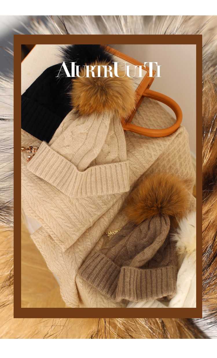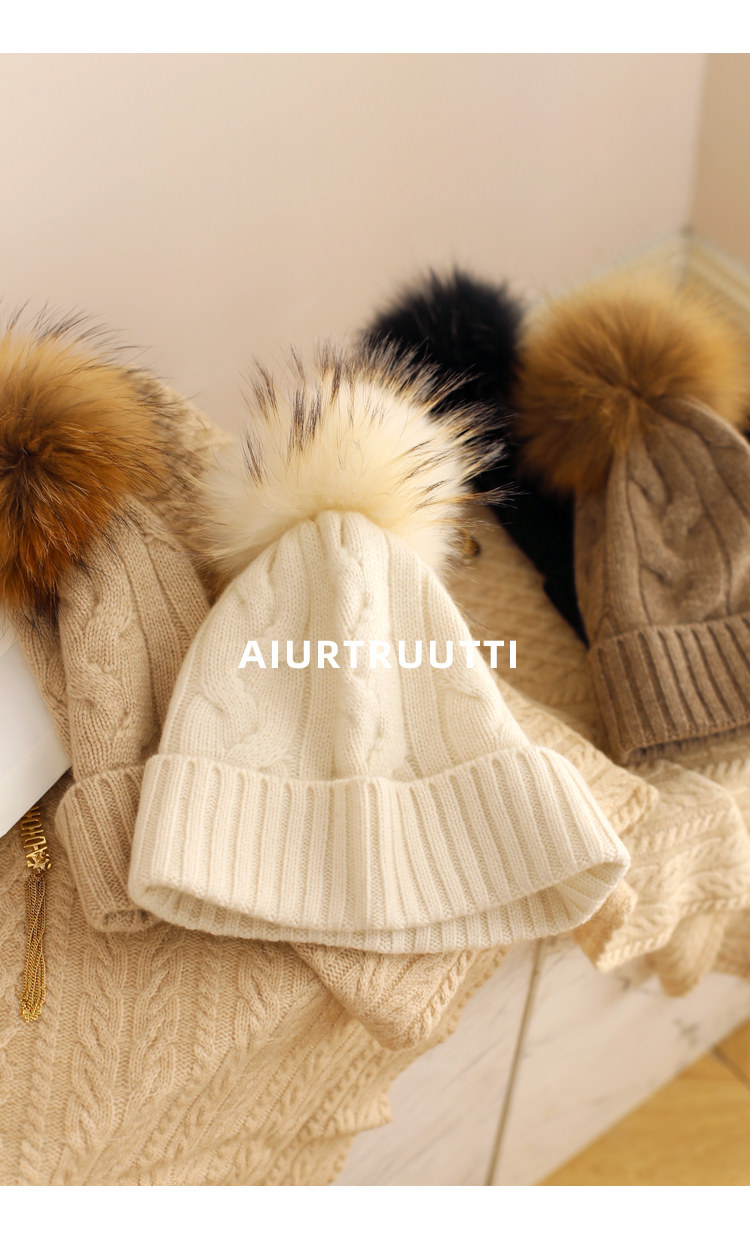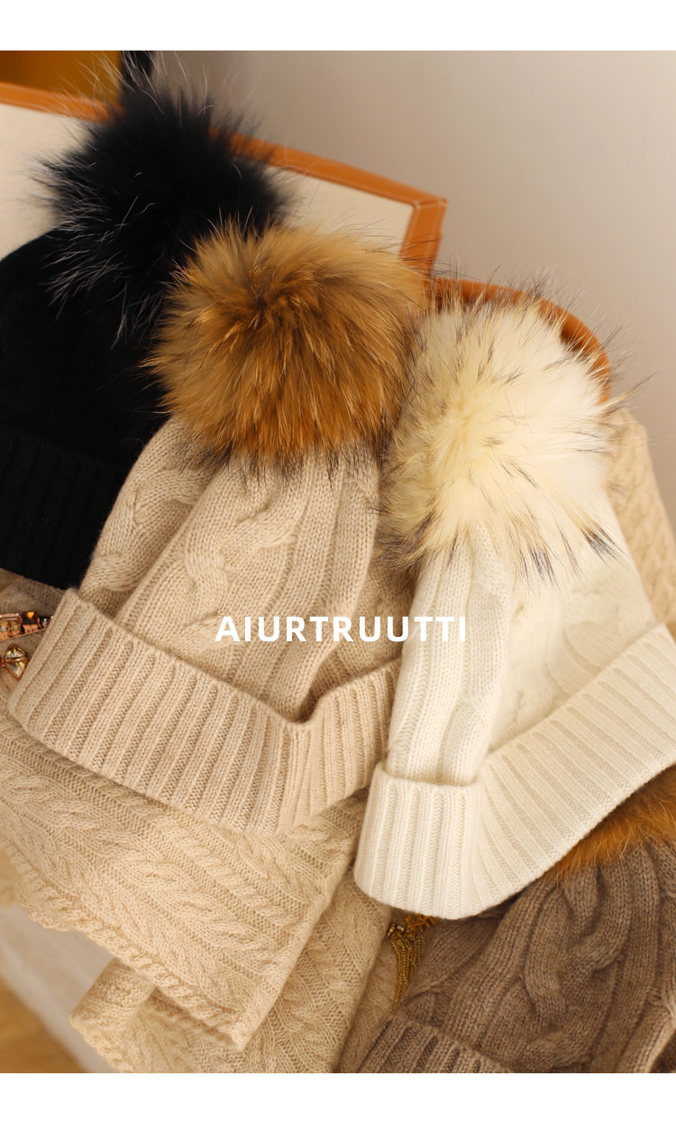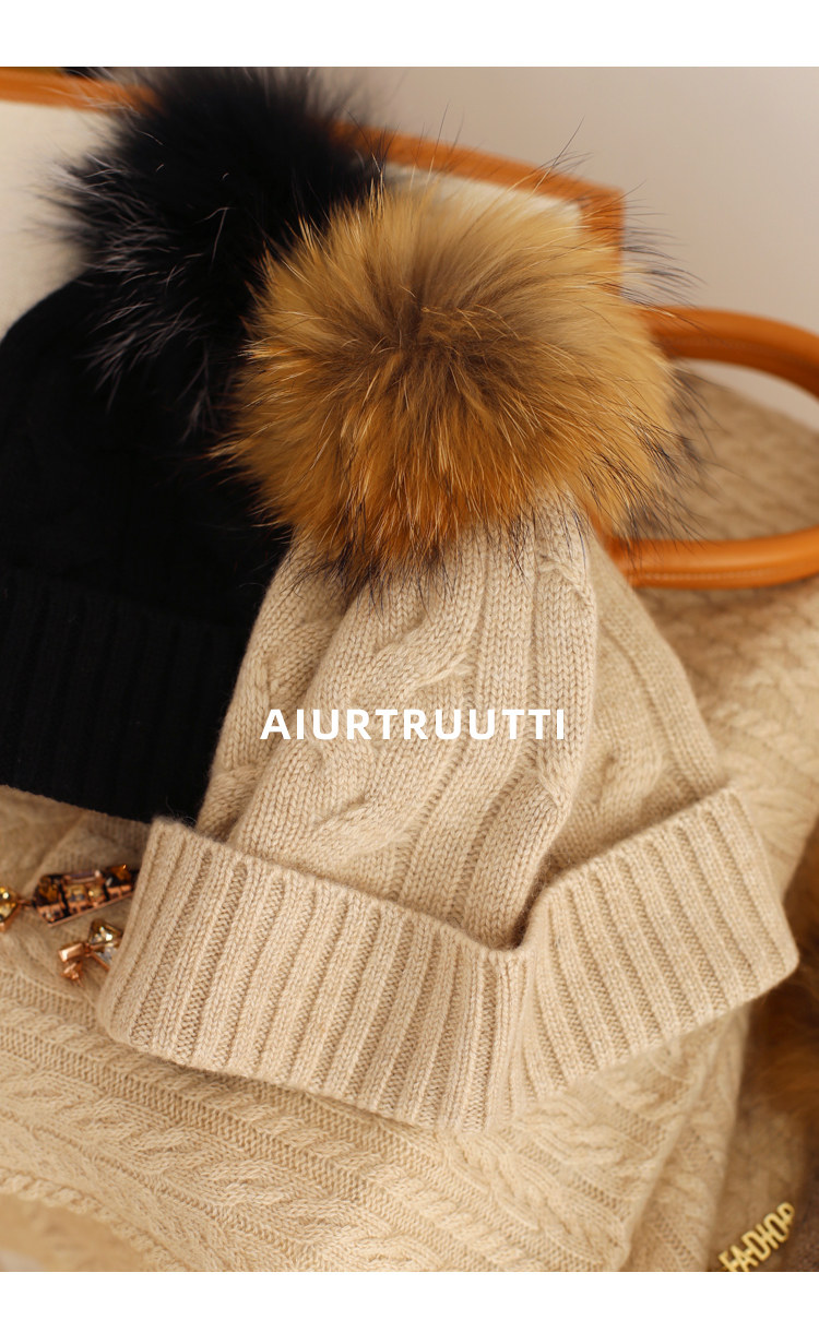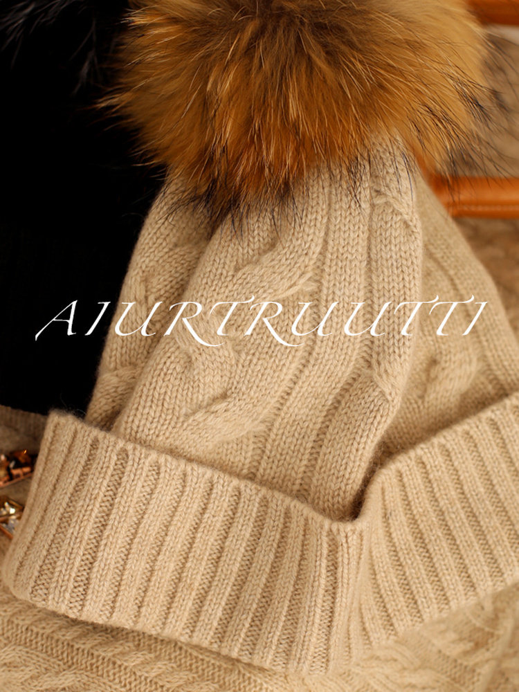 AiurtRuutti, итальянская кашемировая спортивная повседневная роскошная шапка из лисьего меха, холодная вязаная шапка, зимняя меховая шапка