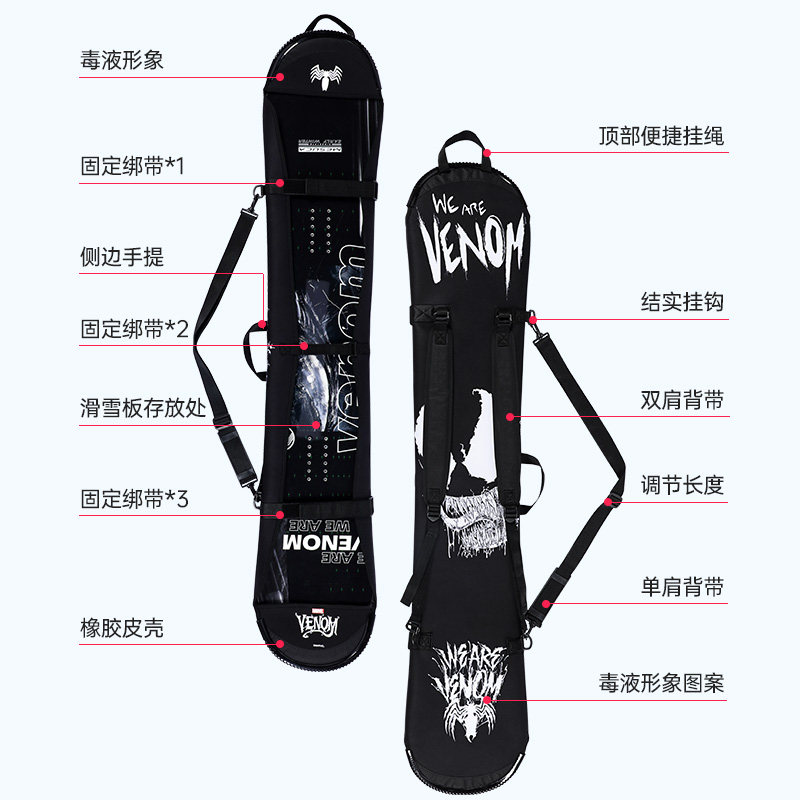Mescar × Marvel Venom Snowboard Compling Кожа бархатный водонепроницаемый и оборудование для широкой емкости