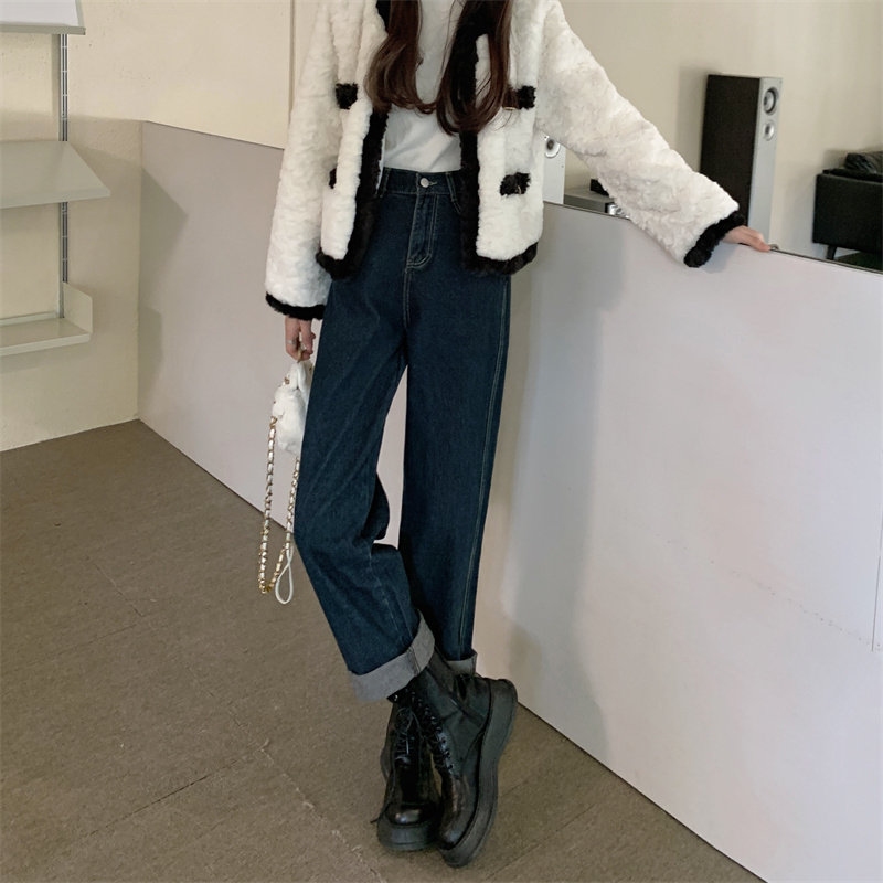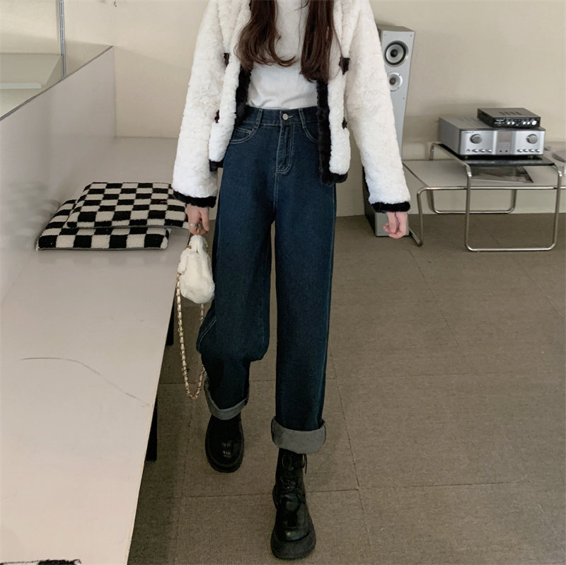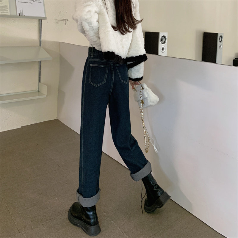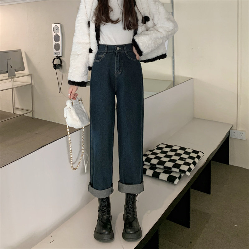 Осенние прямые свободные джинсы, демисезонные штаны, большой размер, коллекция 2022, оверсайз, свободный крой, высокая талия
