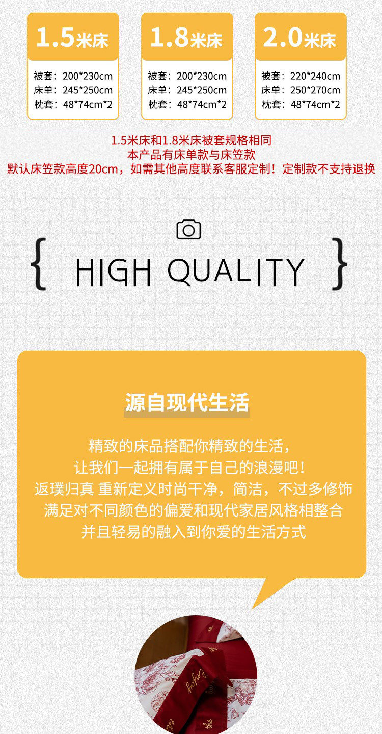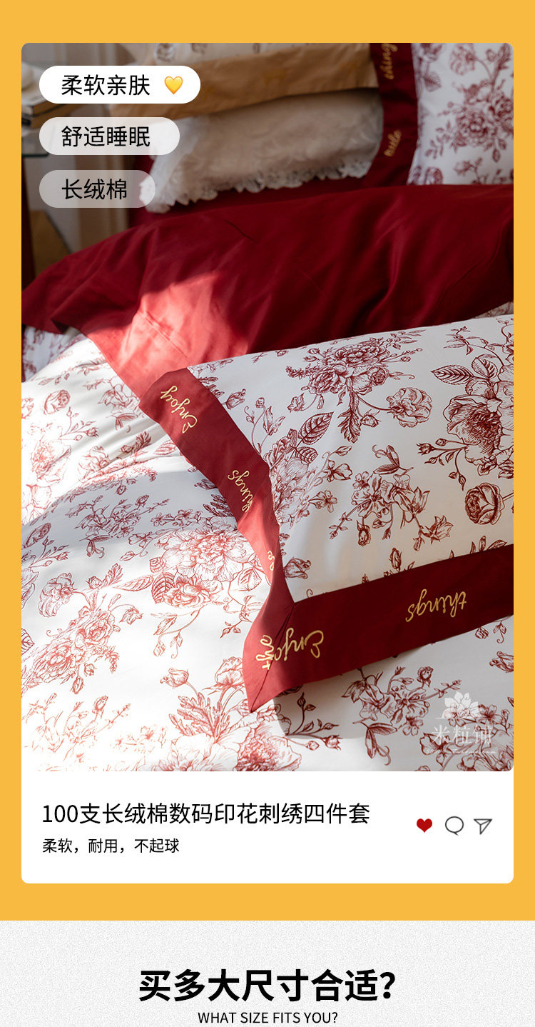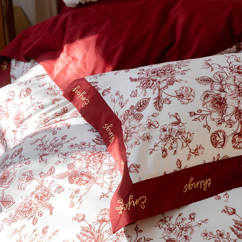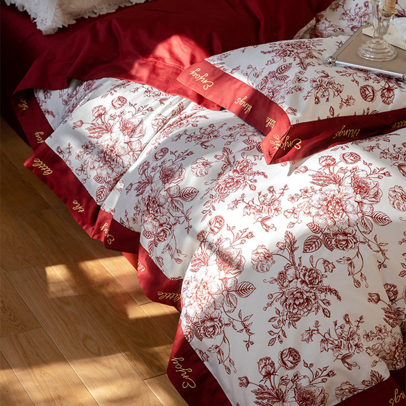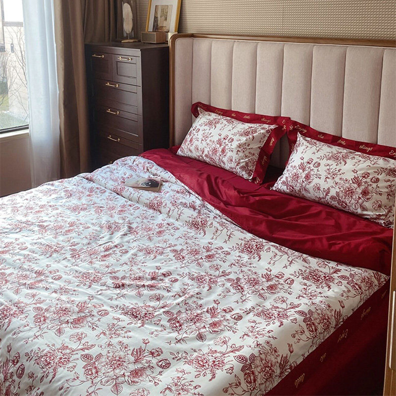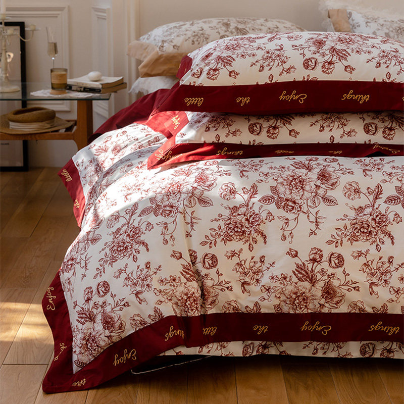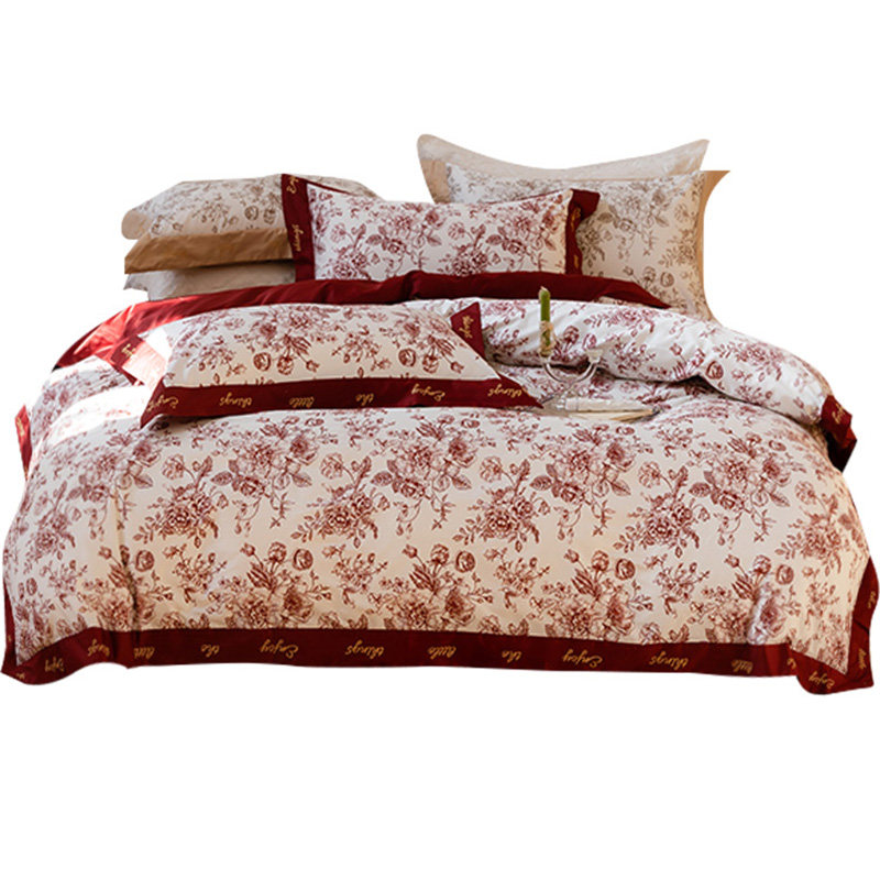 Хлопковый комплект, красный пододеяльник, простыня, покрывало, 4 предмета, 100 шт