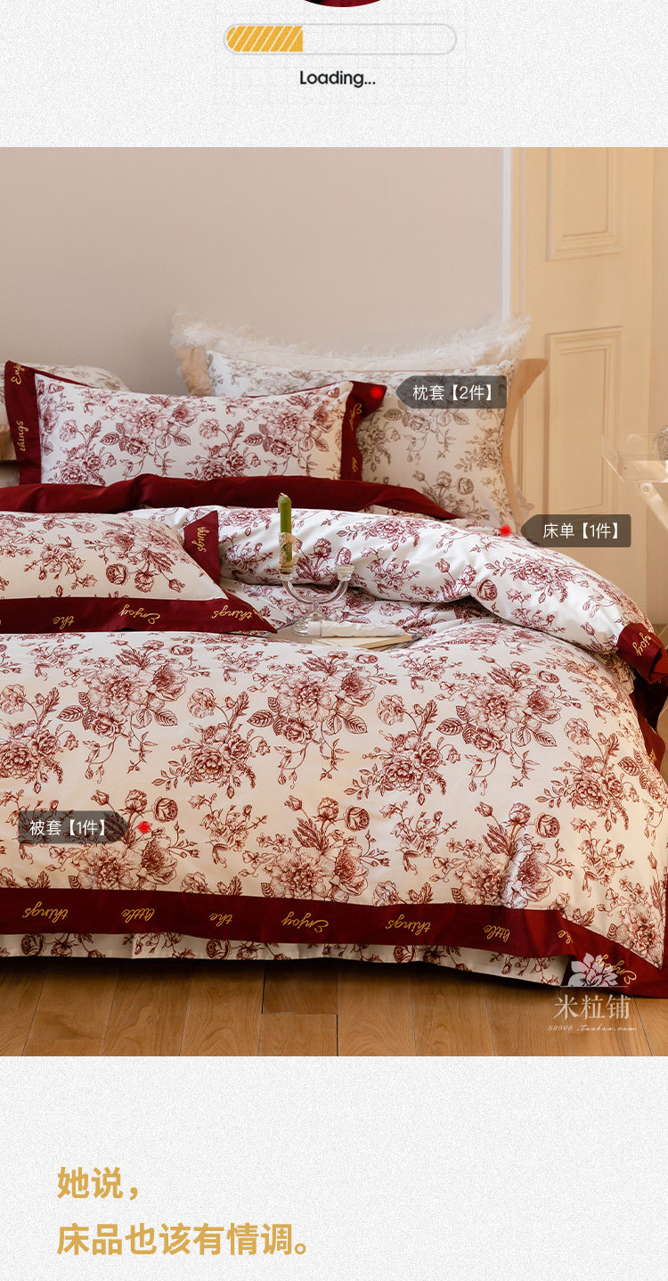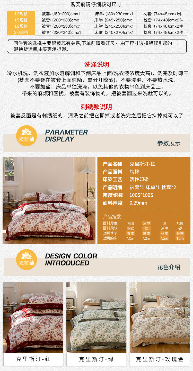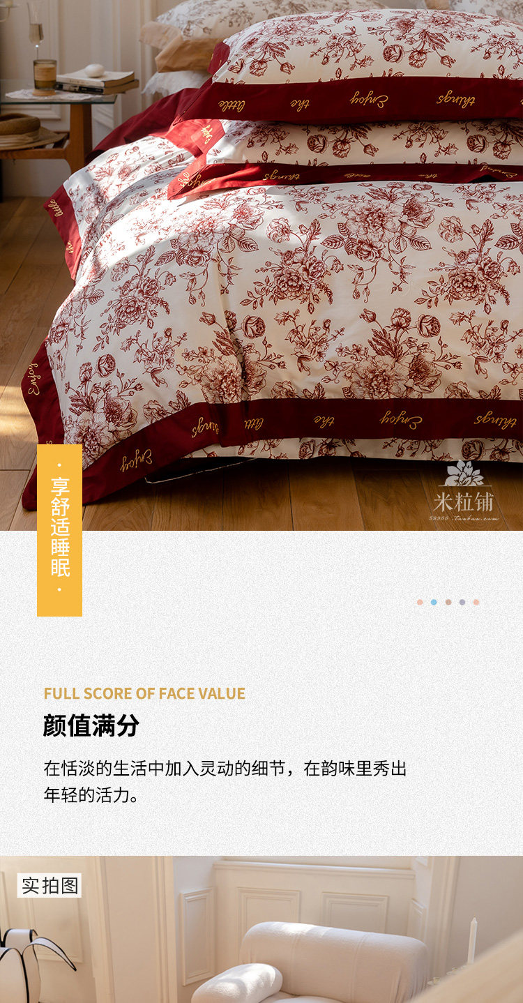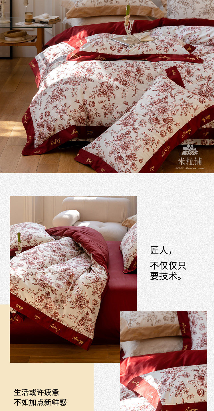 Хлопковый комплект, красный пододеяльник, простыня, покрывало, 4 предмета, 100 шт