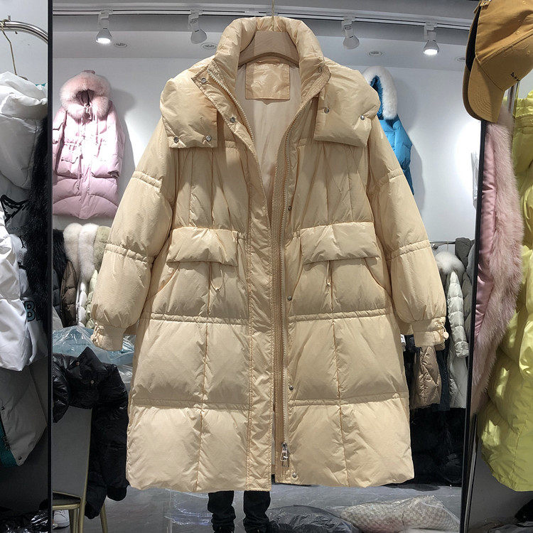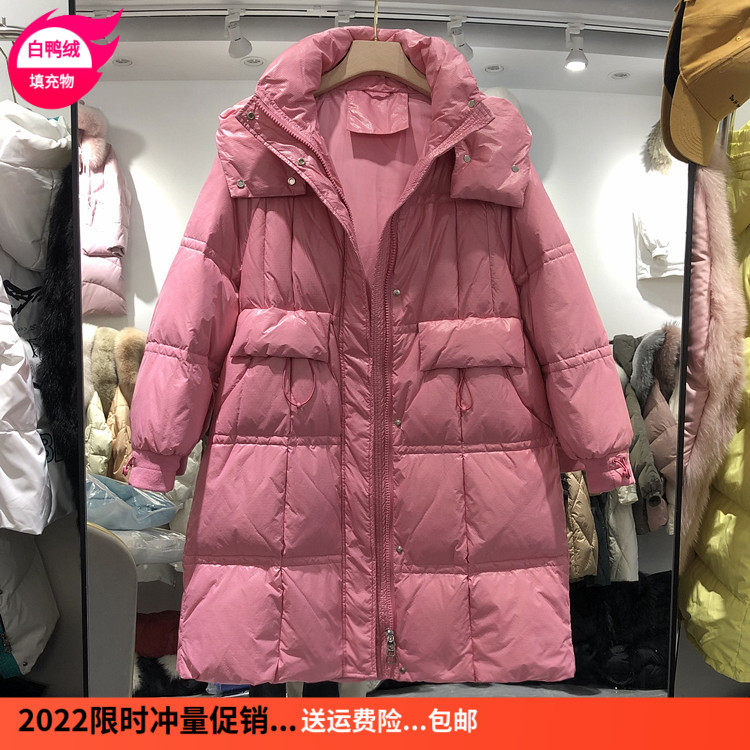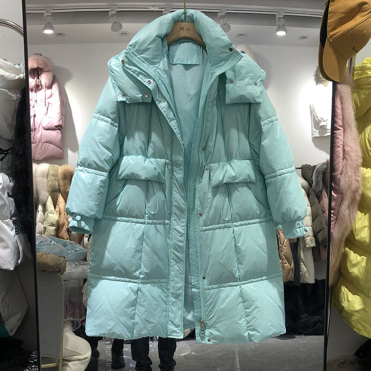 Пуховик, бархатная зимняя куртка, в корейском стиле, длина макси, оверсайз, утиный пух, 2021 года, большой размер