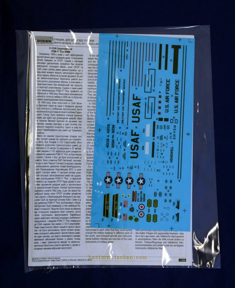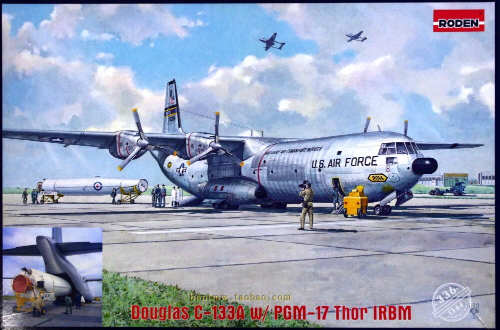 Транспортный самолет RN336 Douglas C-133A несет PGM–17 межконтинентальных ракет в сборе в масштабе 1/144.