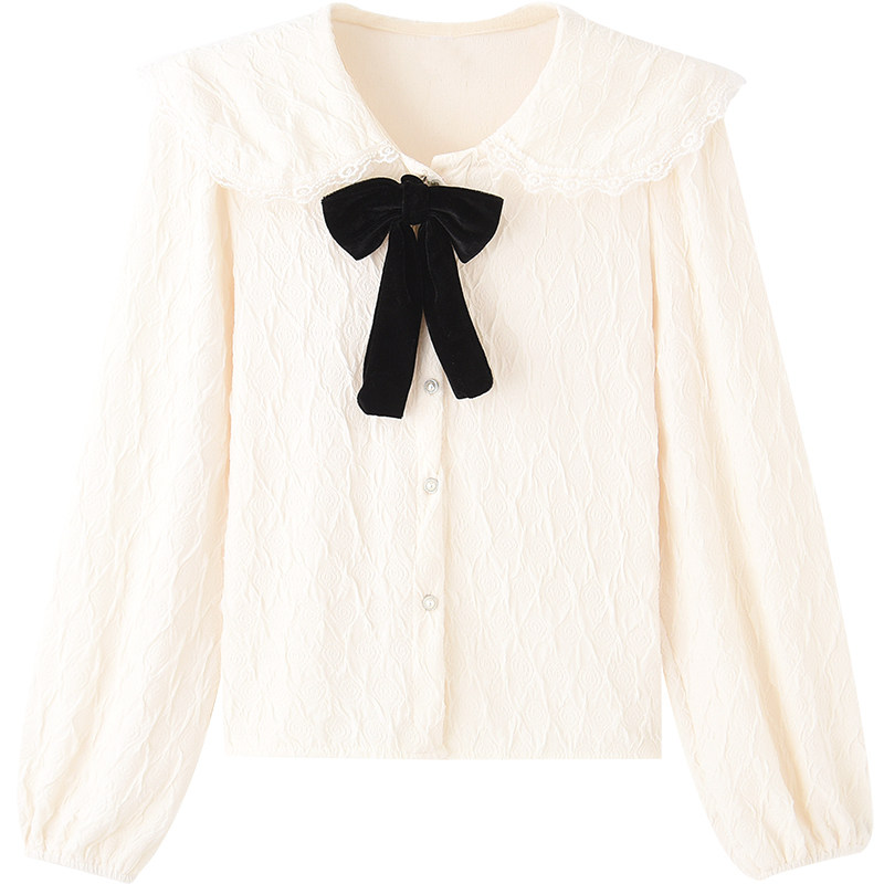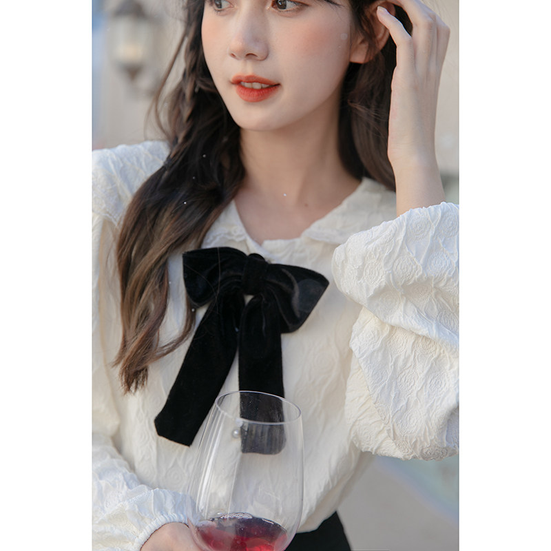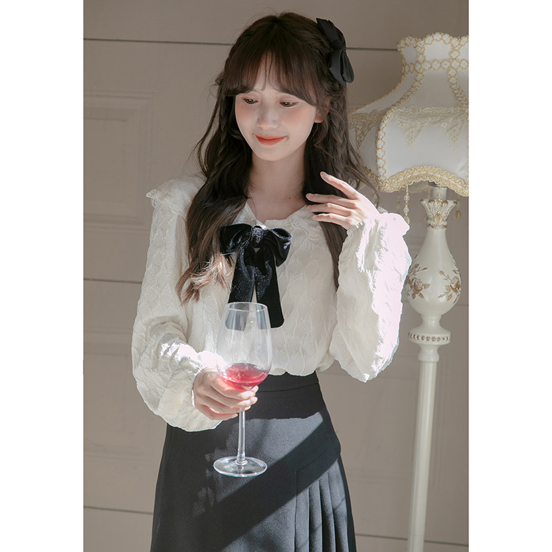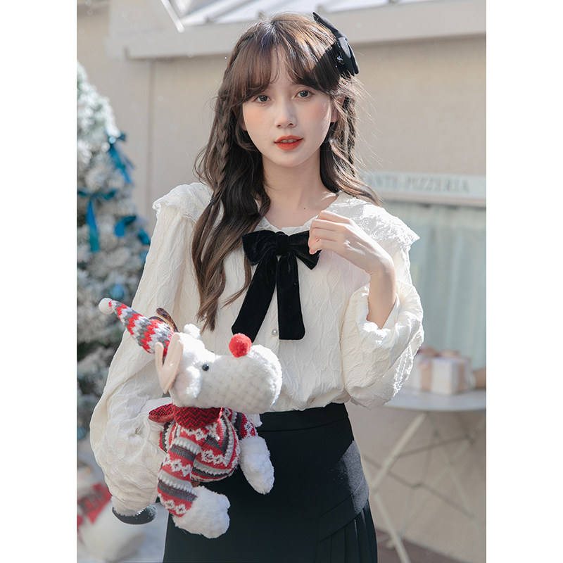 Кукла, осенняя дизайнерская милая рубашка с бантиком, кукольный воротник, тренд сезона, французский стиль