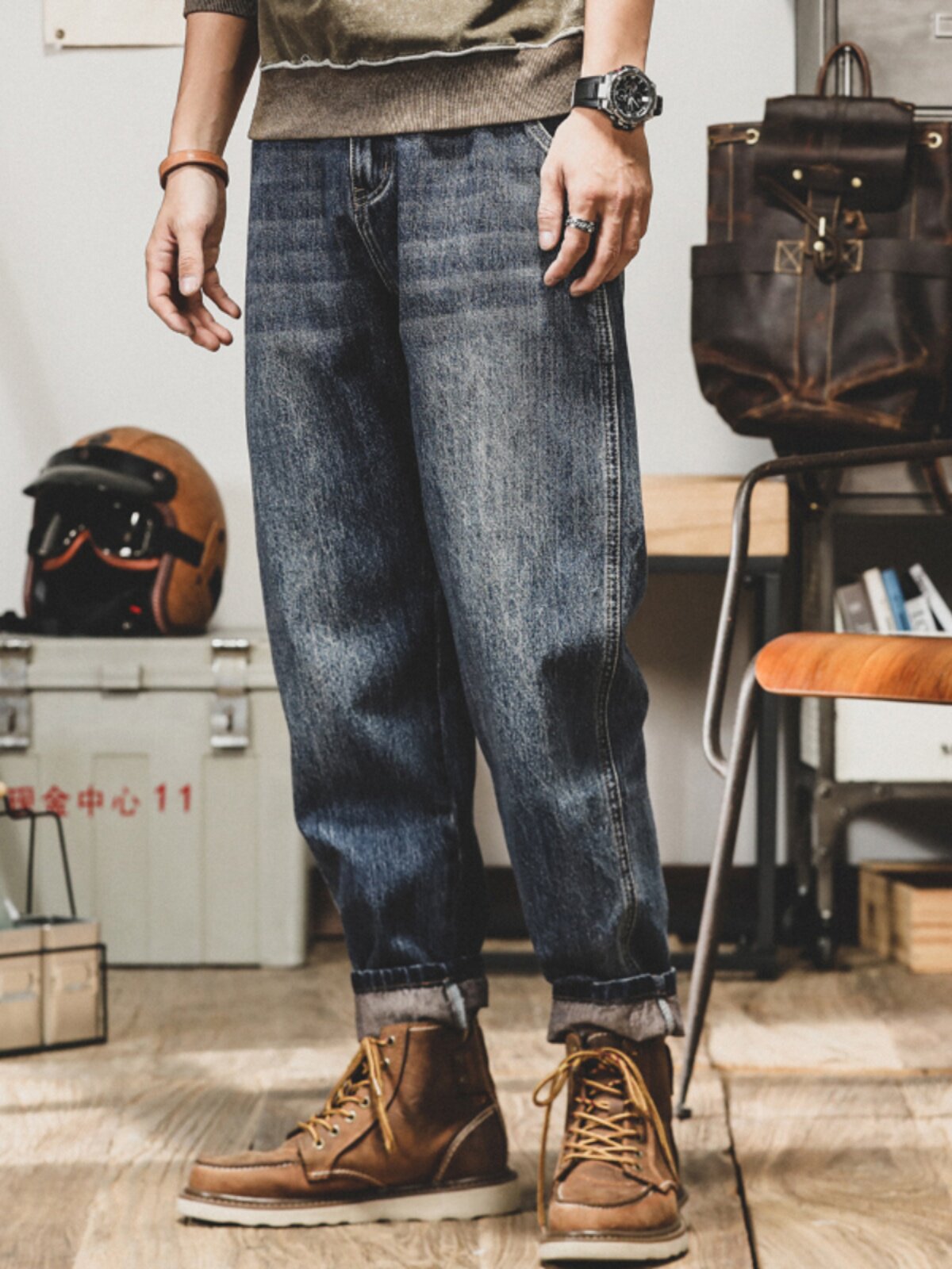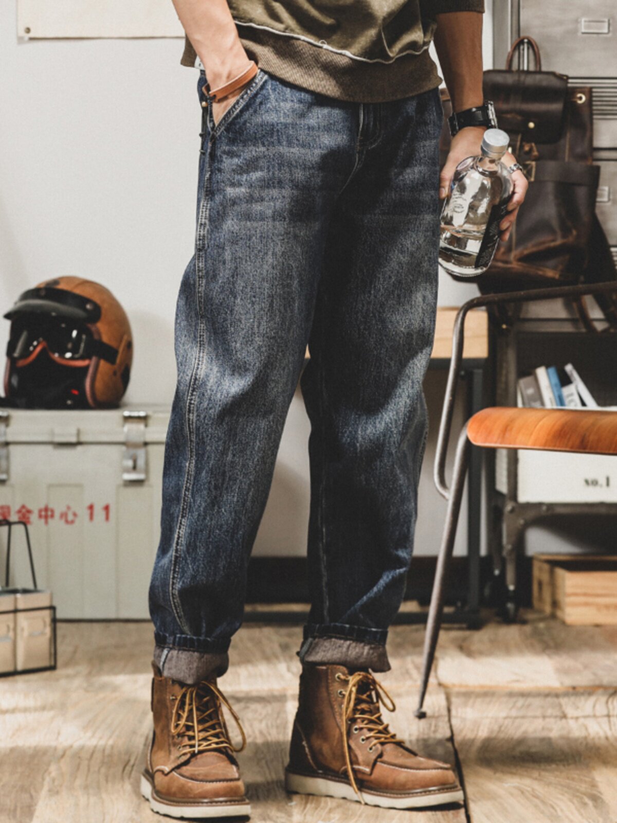 Ретро прямые свободные джинсы, повседневные брюки для отдыха, штаны, в американском стиле, осенние