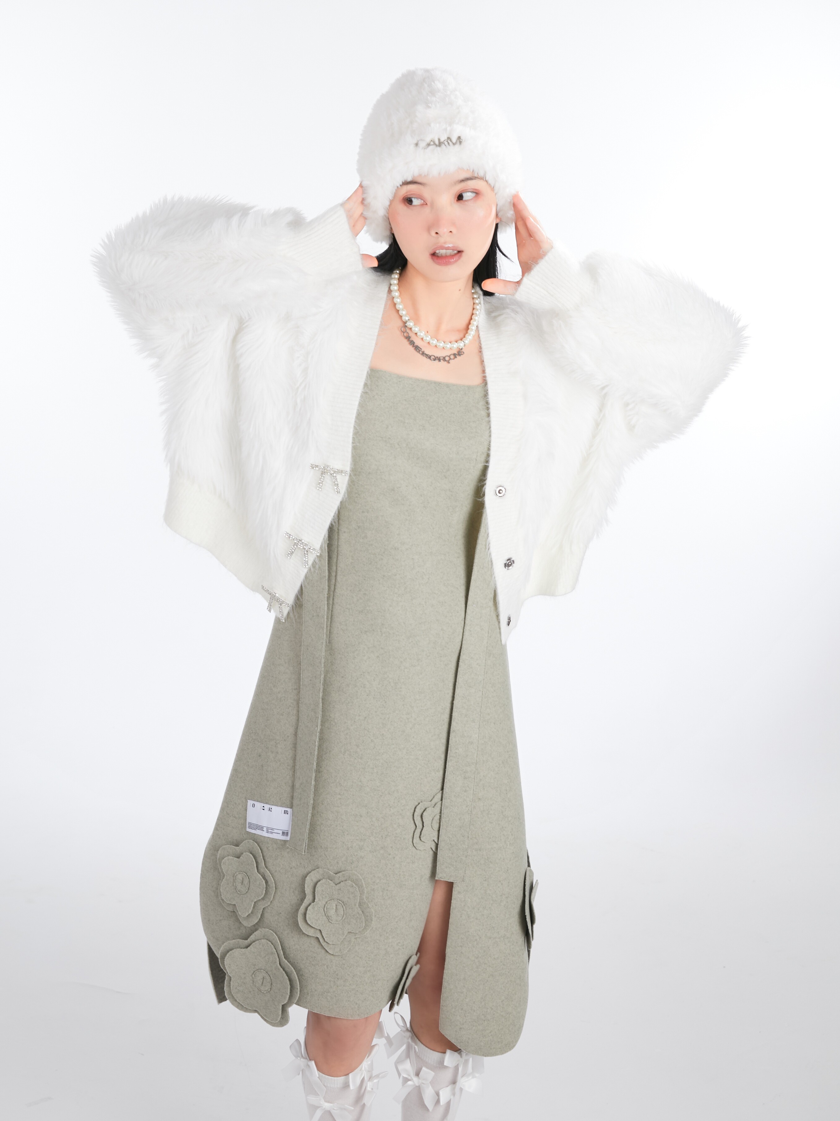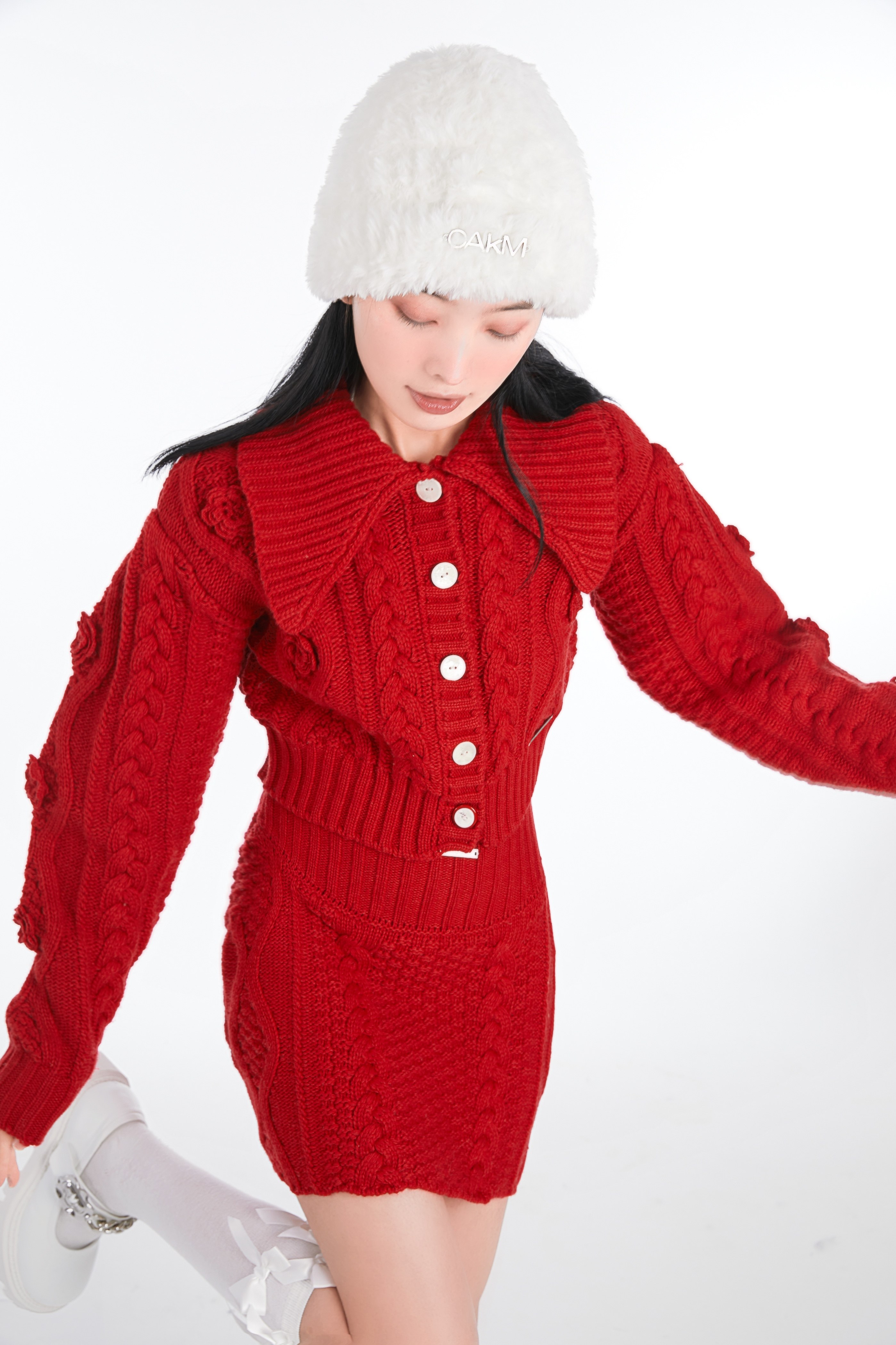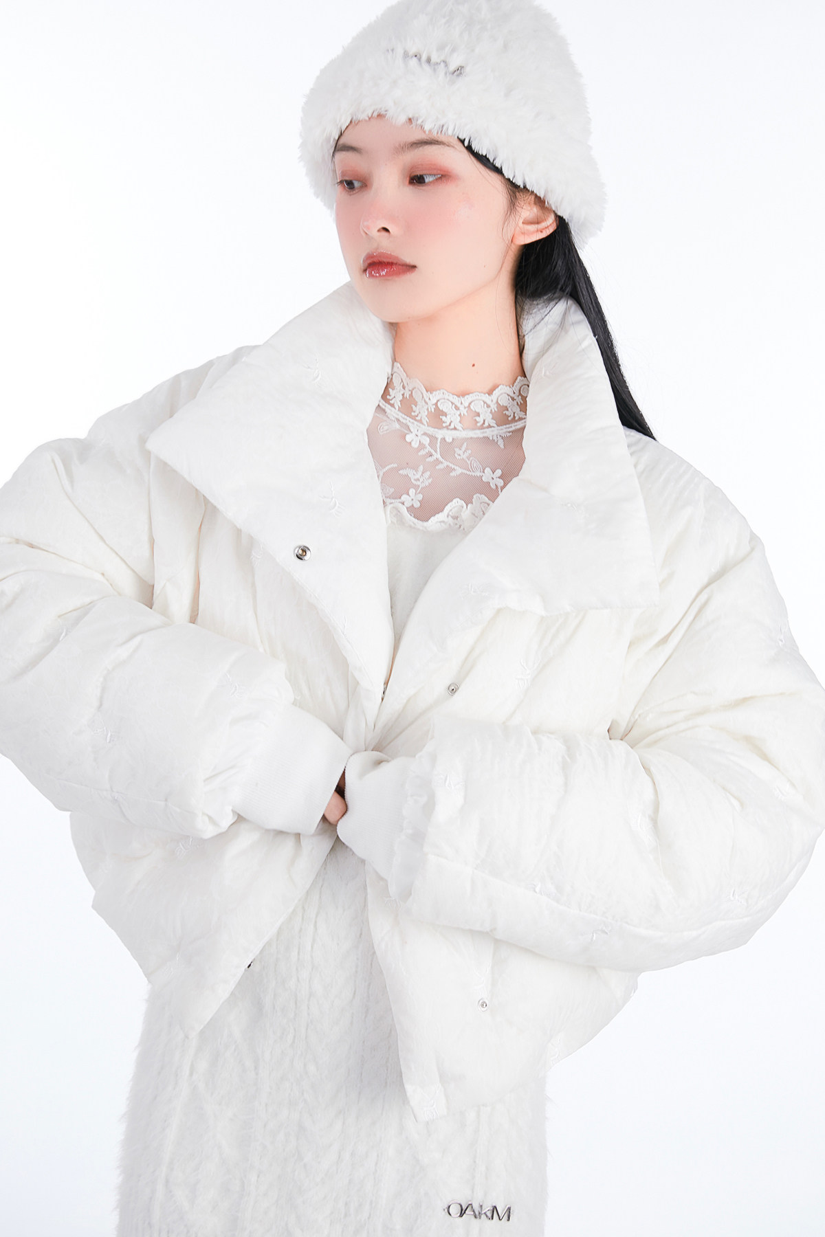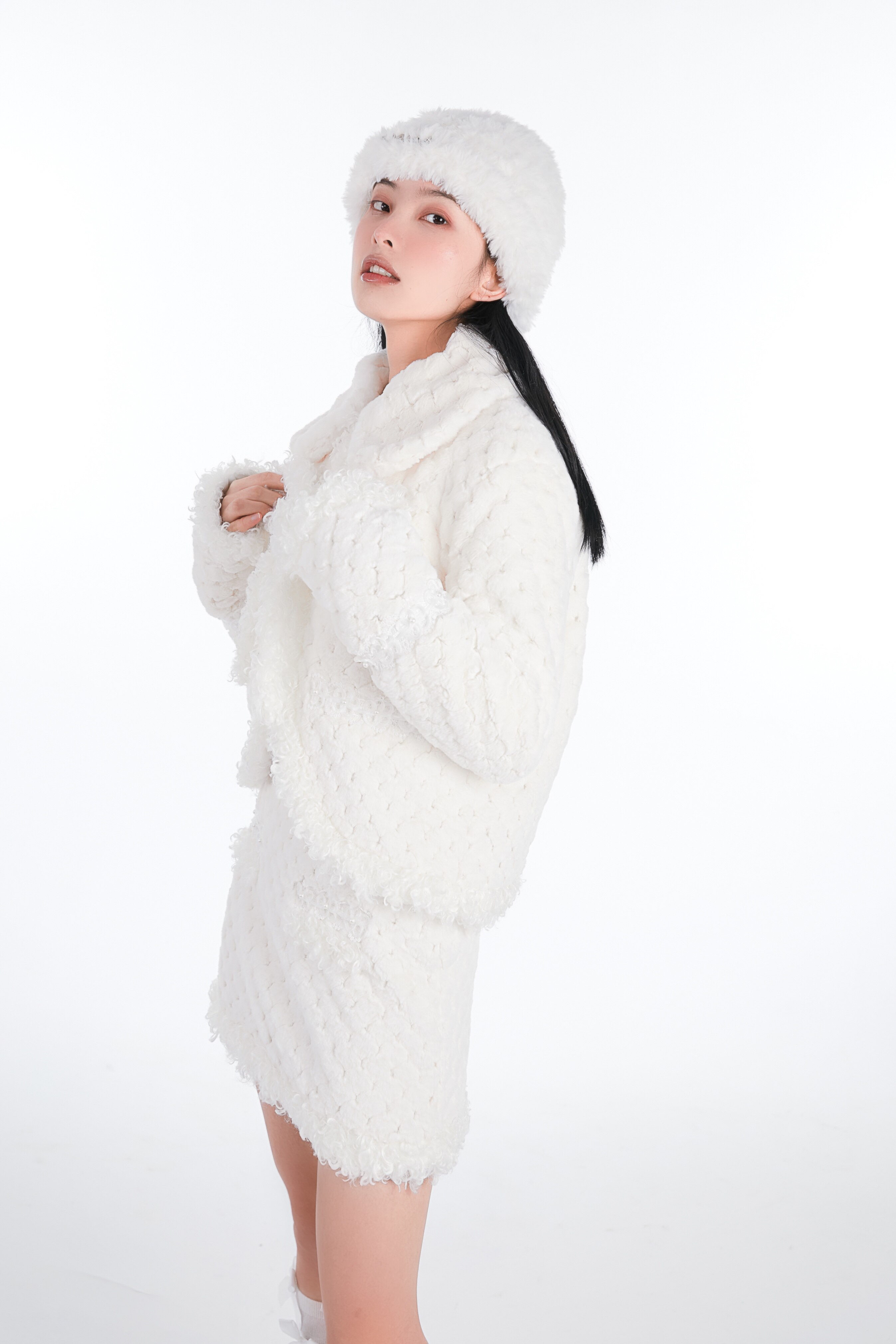Кремовая зимняя белая трикотажная утепленная вязаная шапка, коллекция 2021