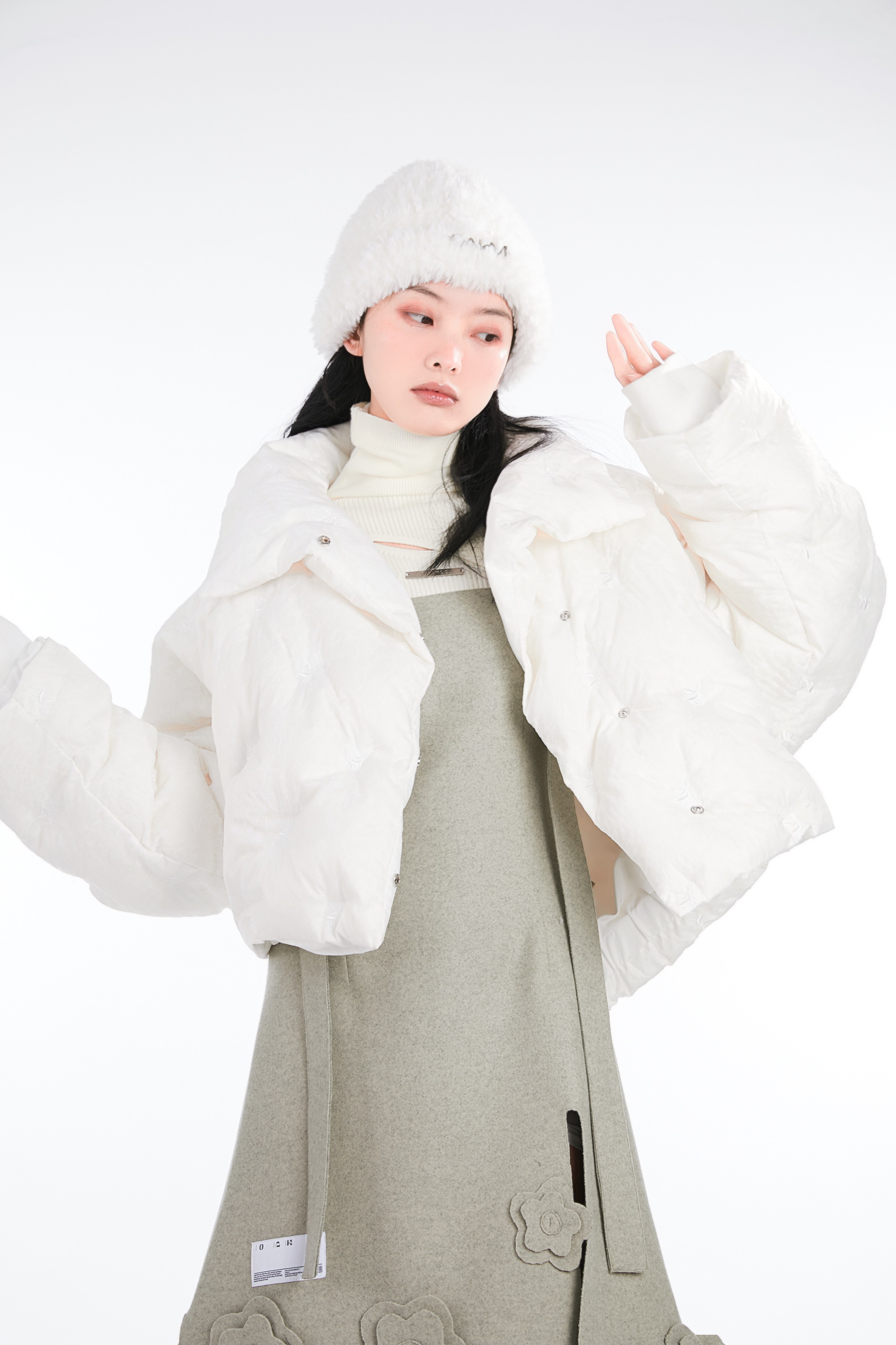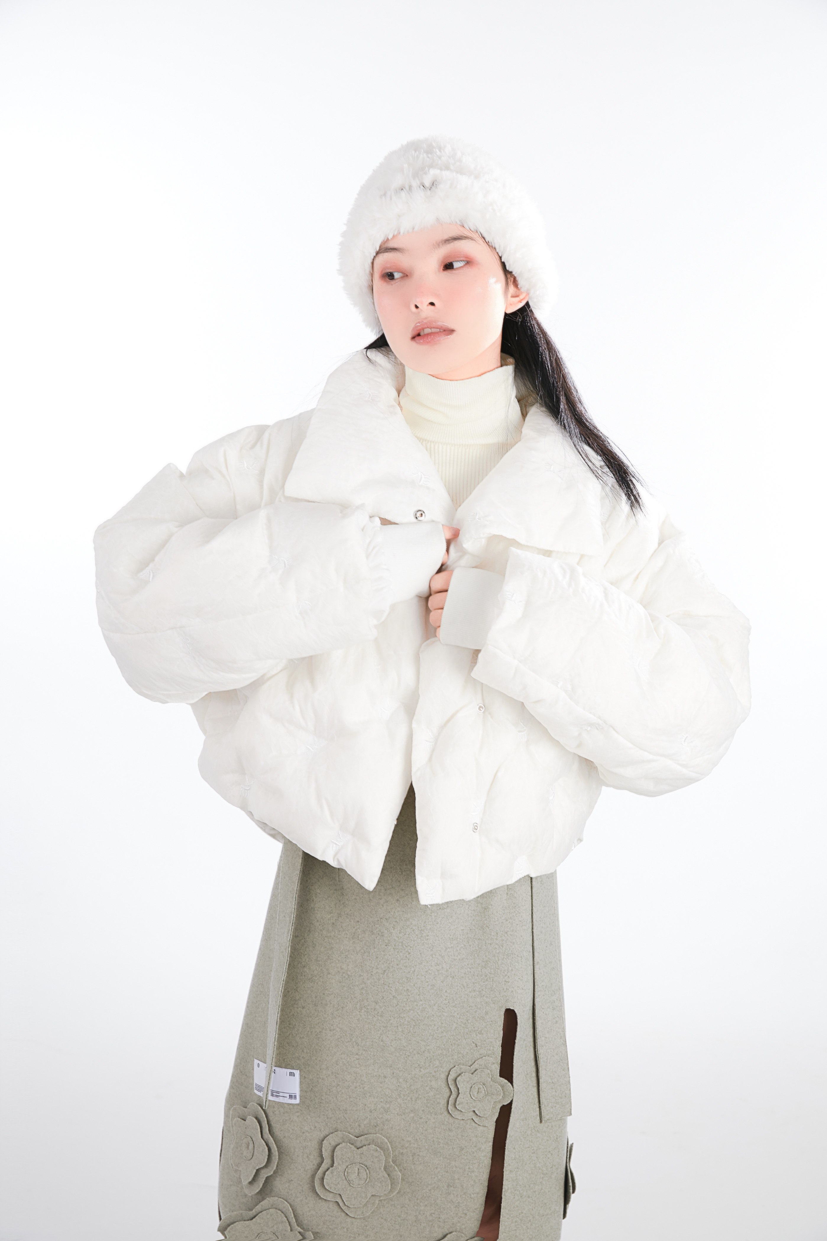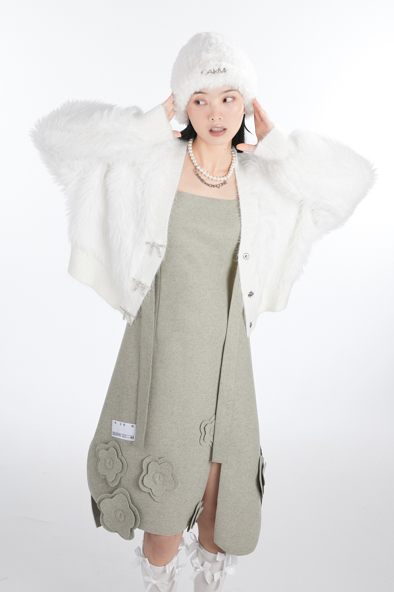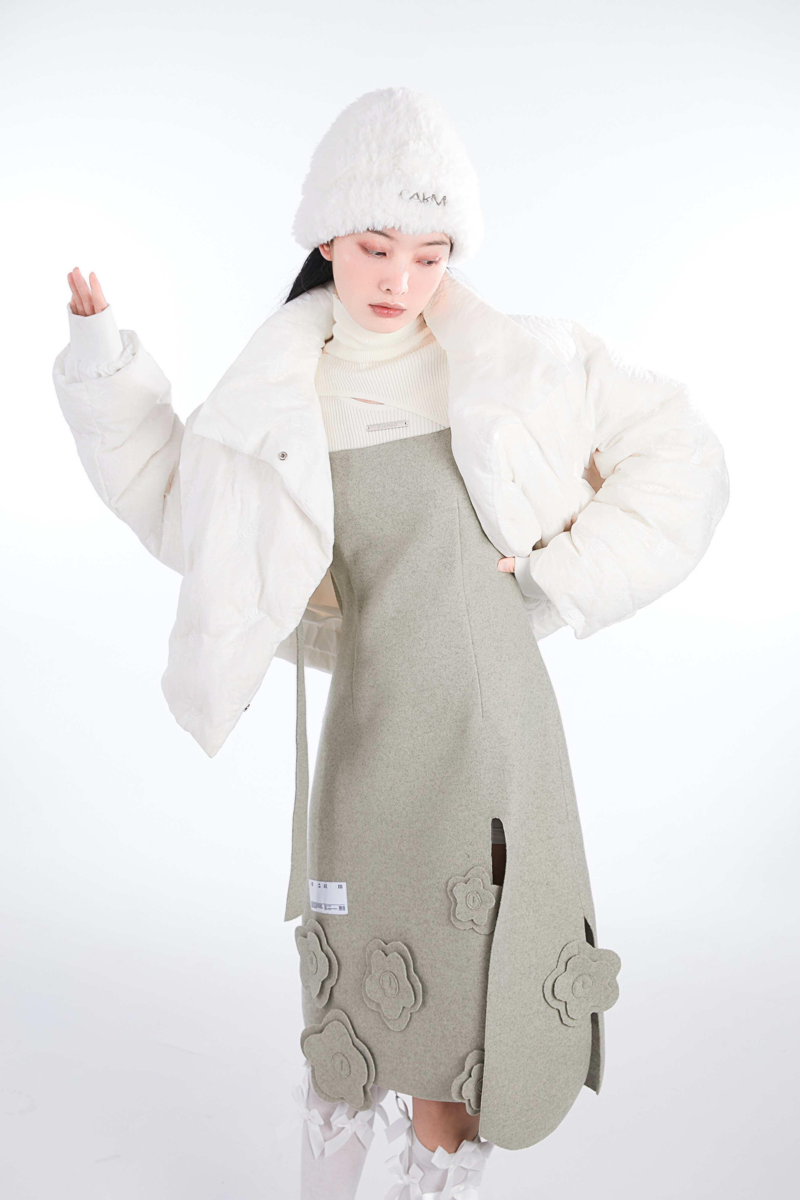Кремовая зимняя белая трикотажная утепленная вязаная шапка, коллекция 2021