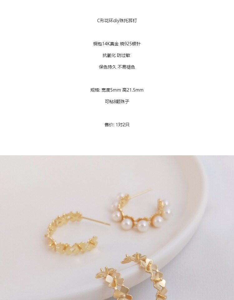 - C-образный держатель гирляндов серебряные серебряные серьги иглы 1 пара 2 кусочки
