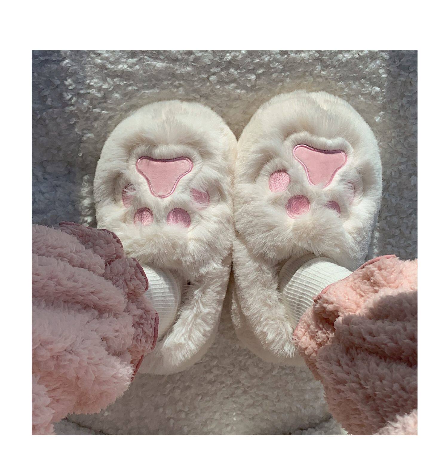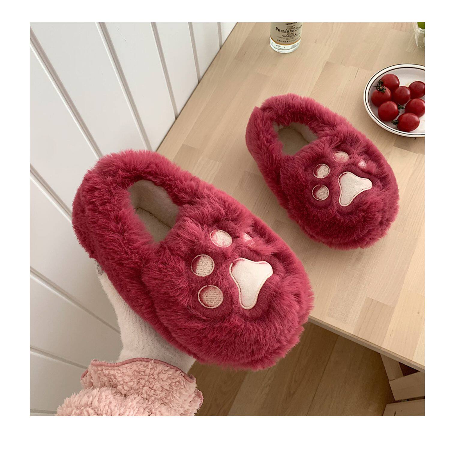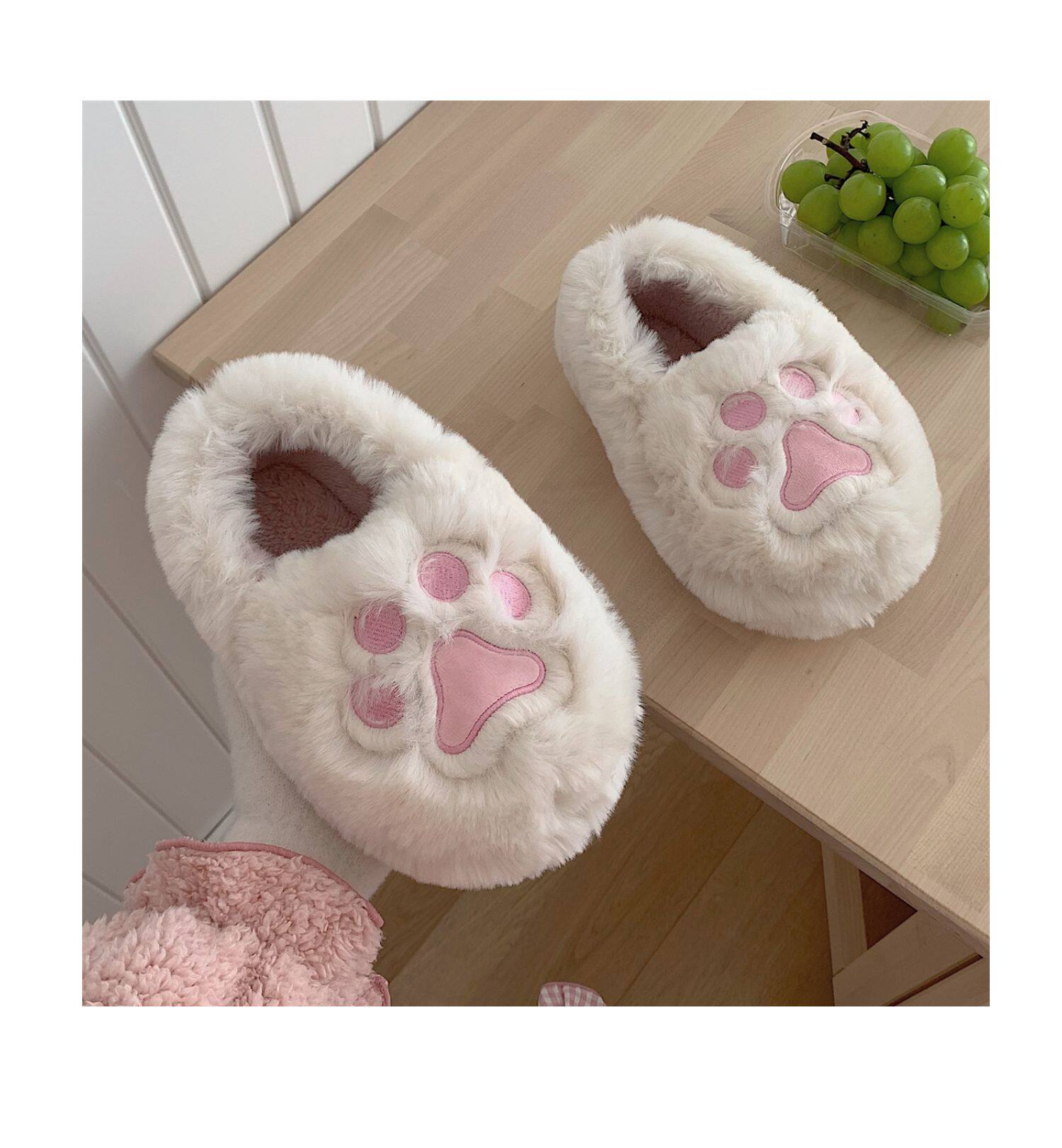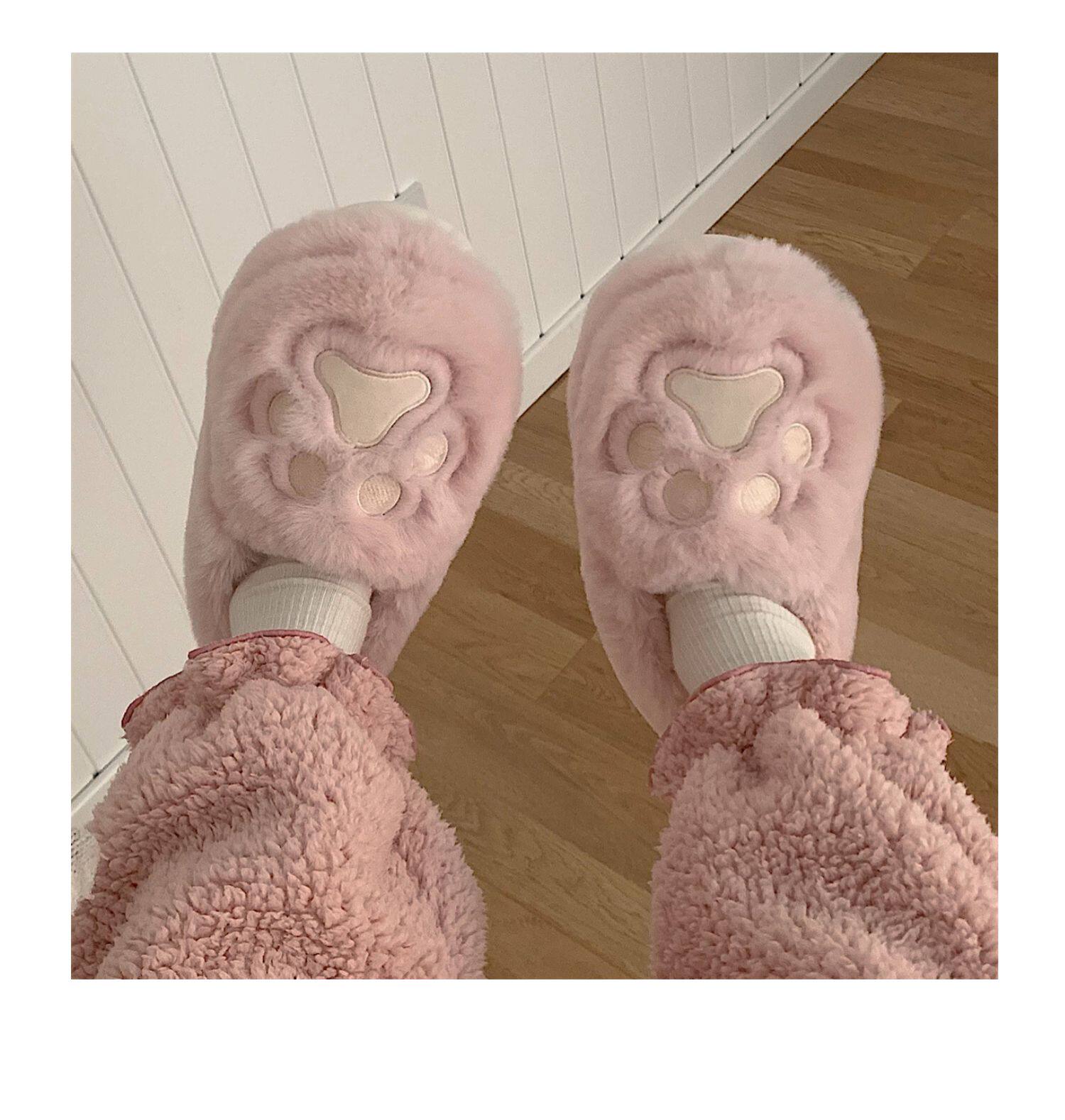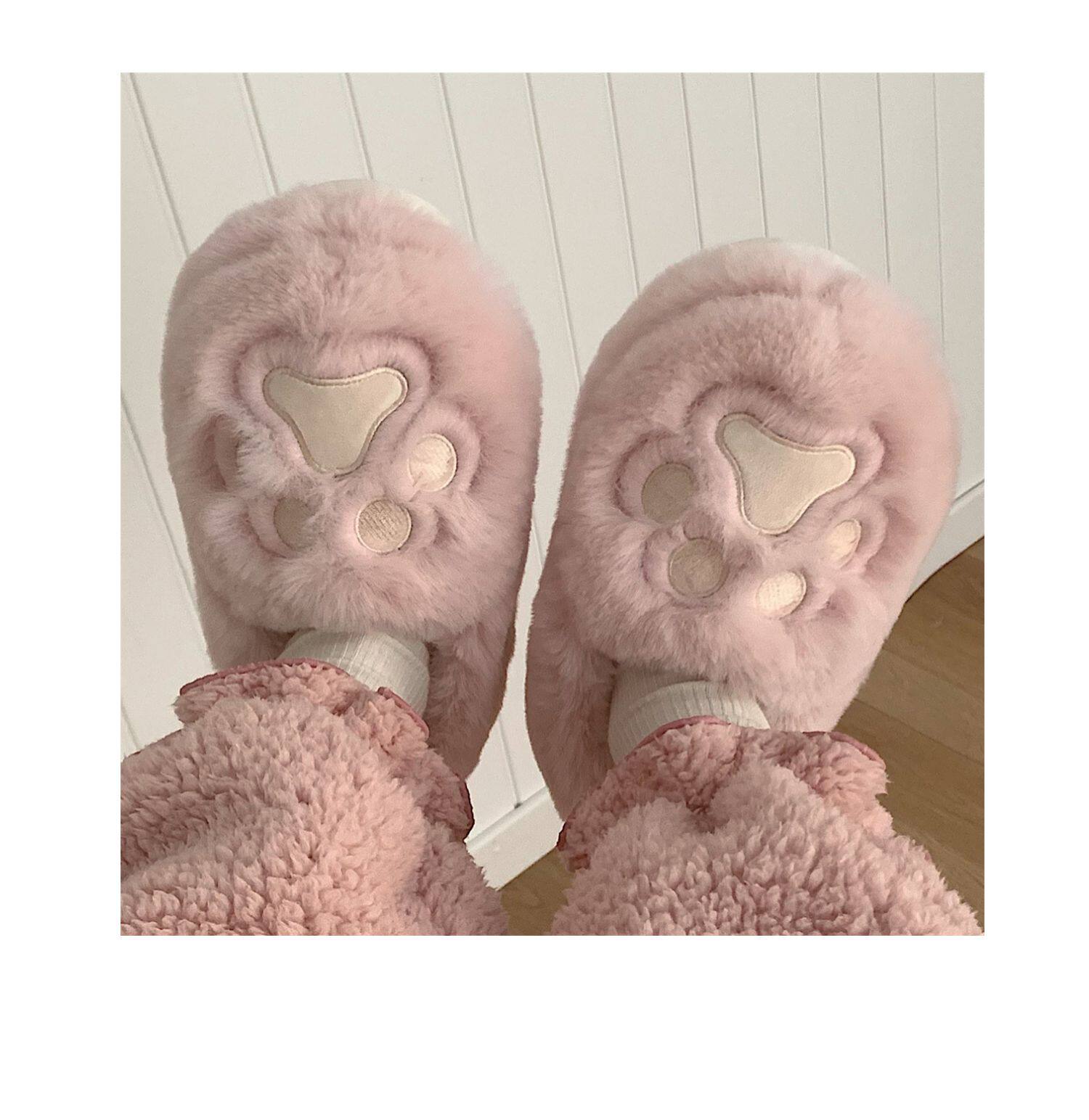 Женщины в зимних сердцах корейских девочек, домашние -скользящие теплые хлопковые тапочки, милые мягкие милые все -инкурентные плюшевые туфли для кошек