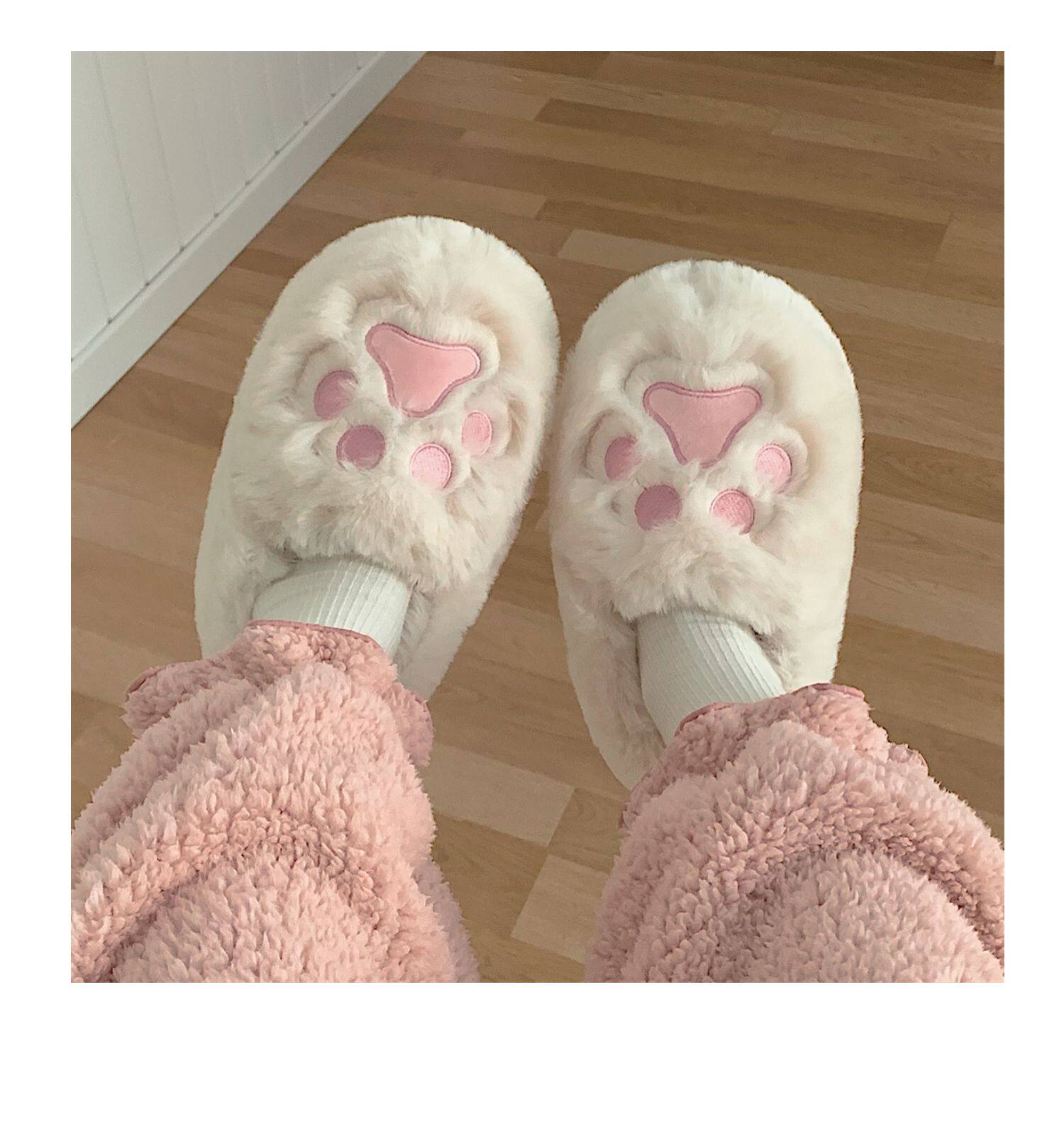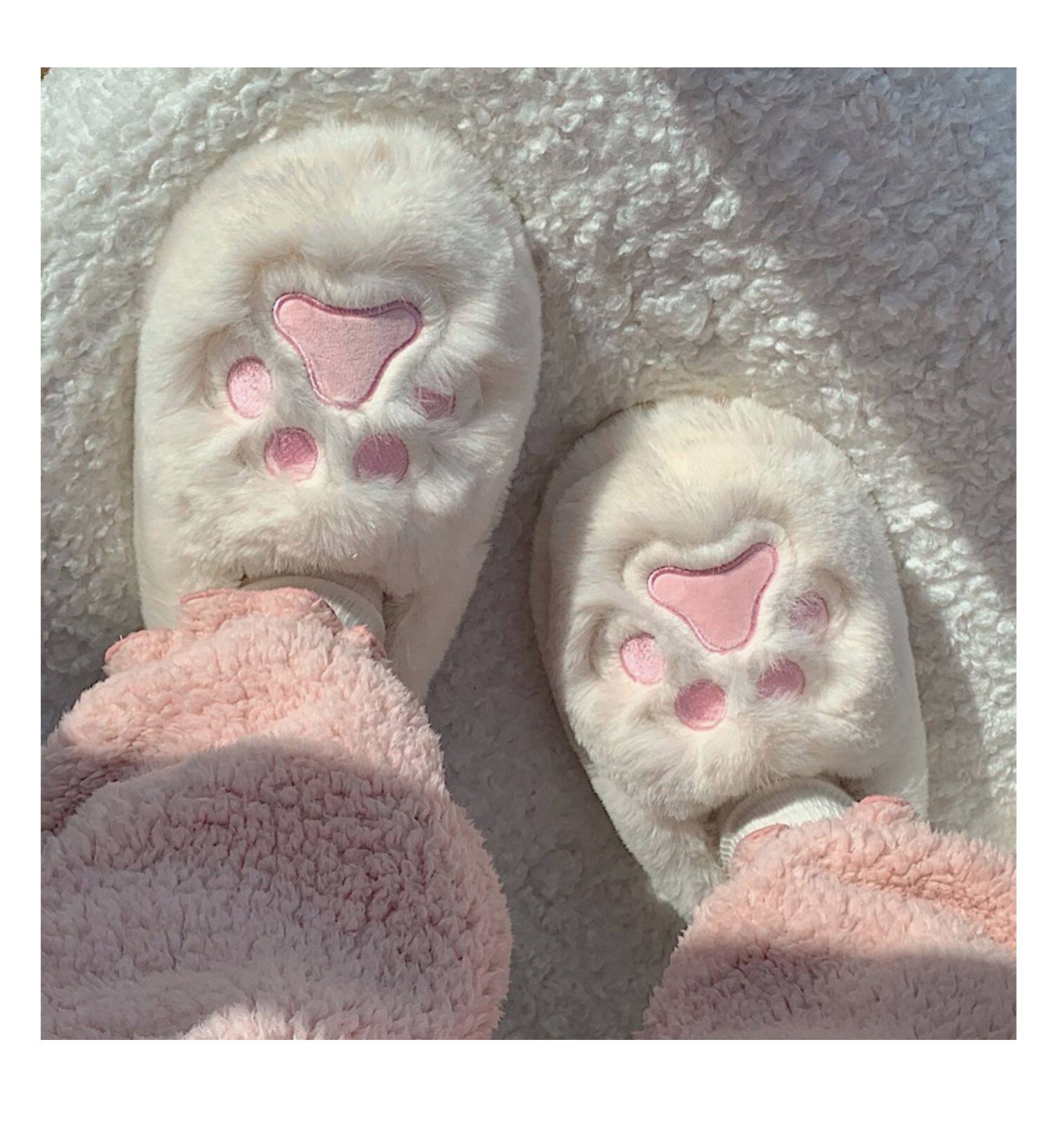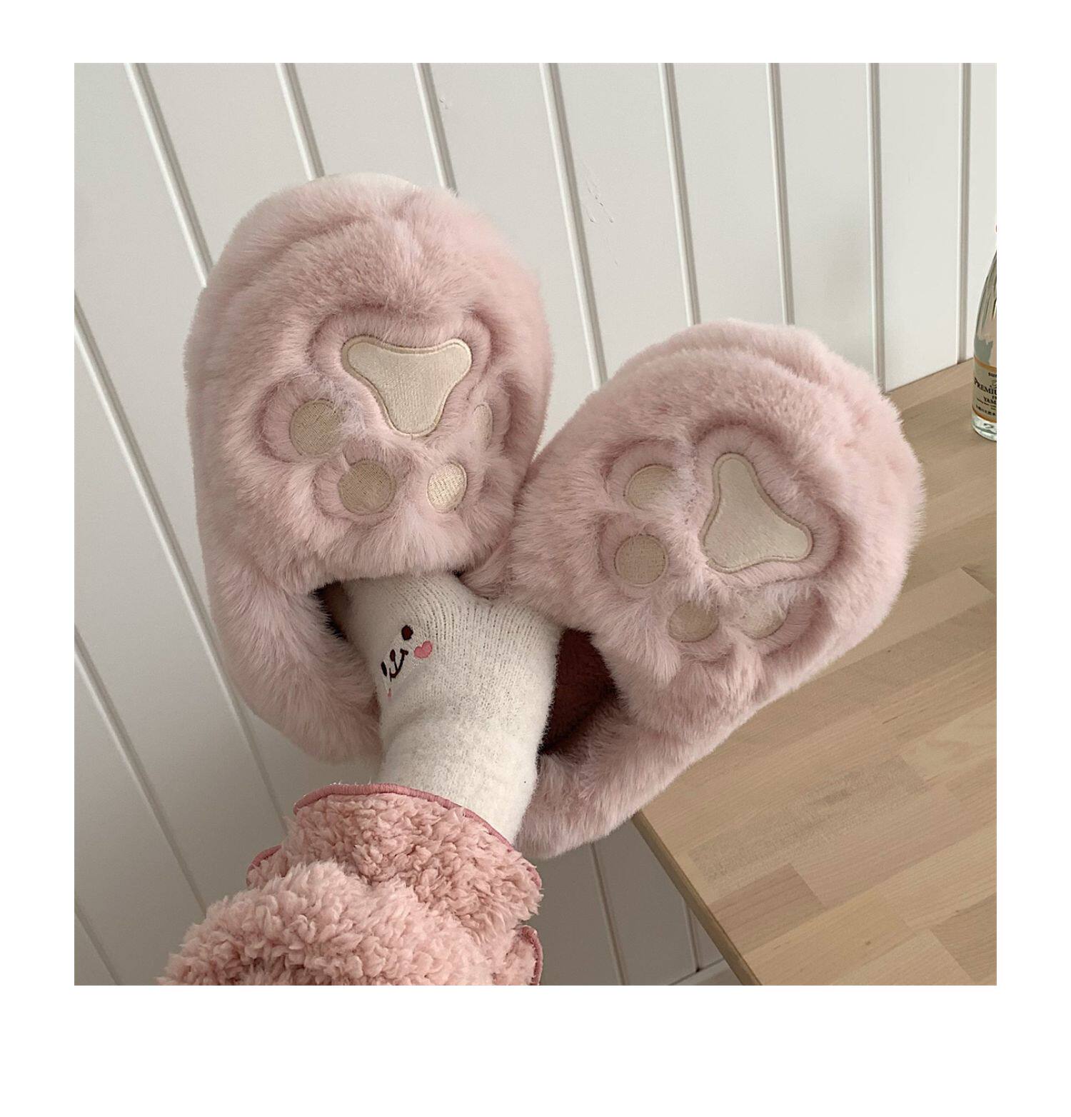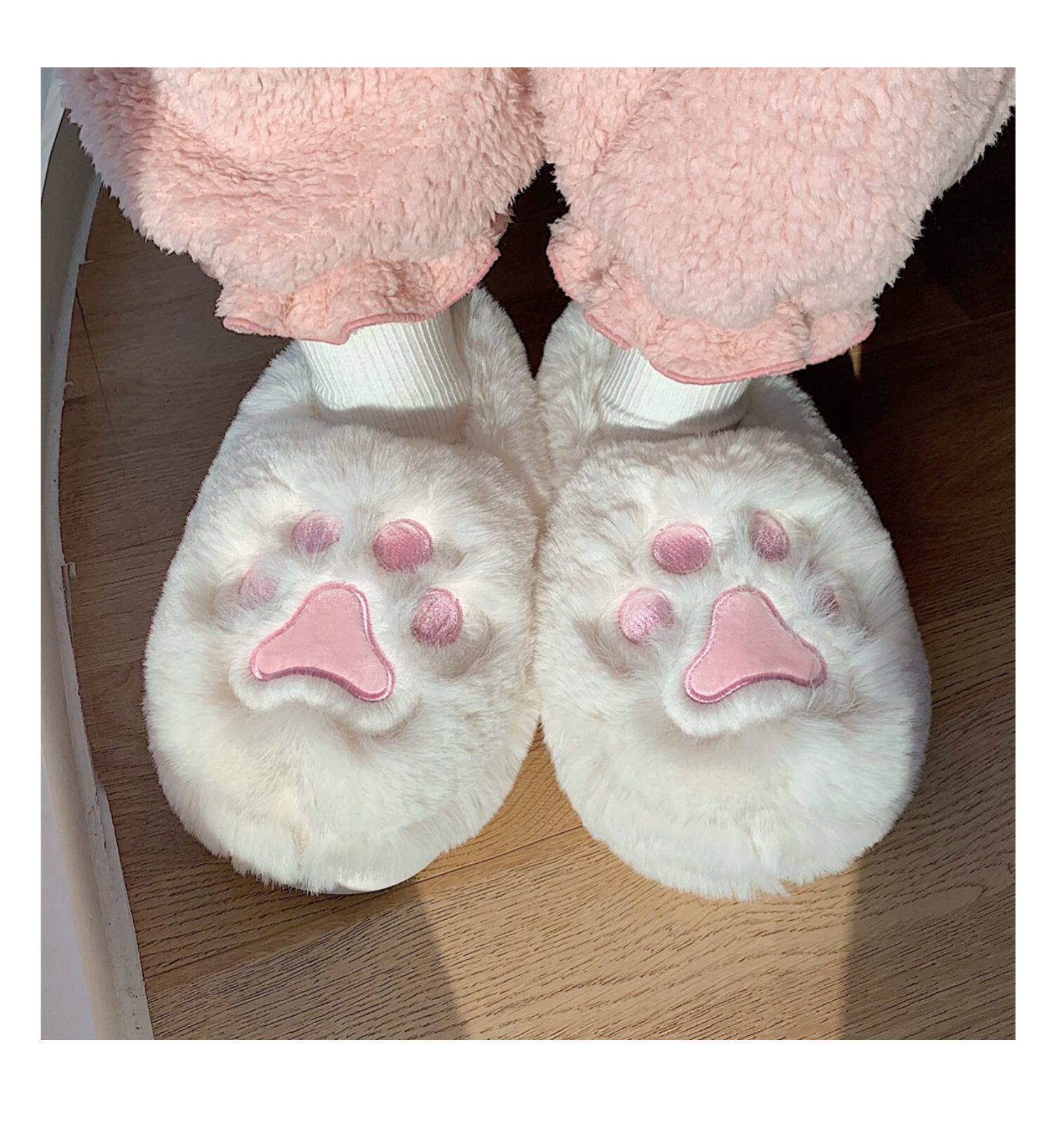 Женщины в зимних сердцах корейских девочек, домашние -скользящие теплые хлопковые тапочки, милые мягкие милые все -инкурентные плюшевые туфли для кошек