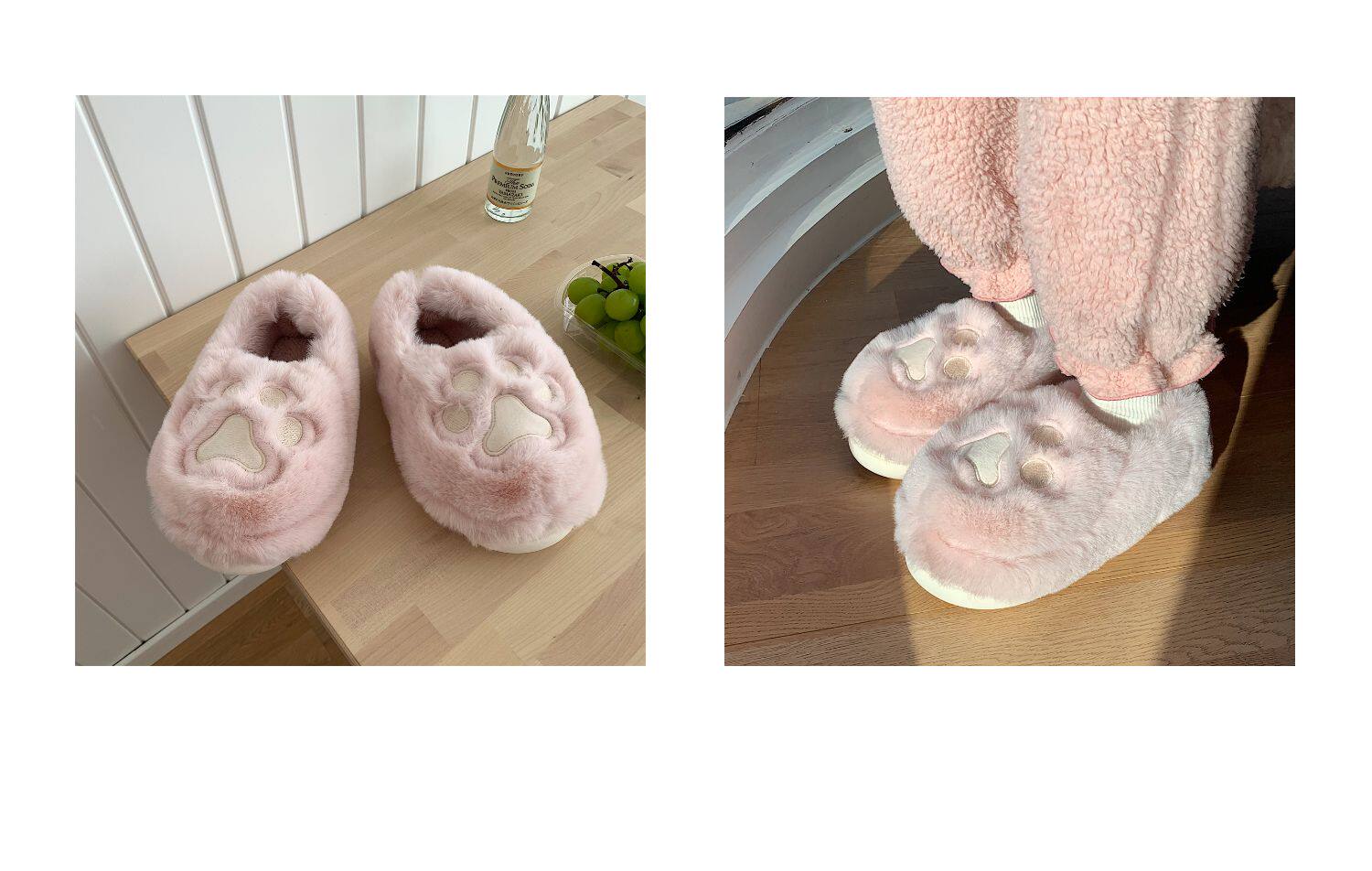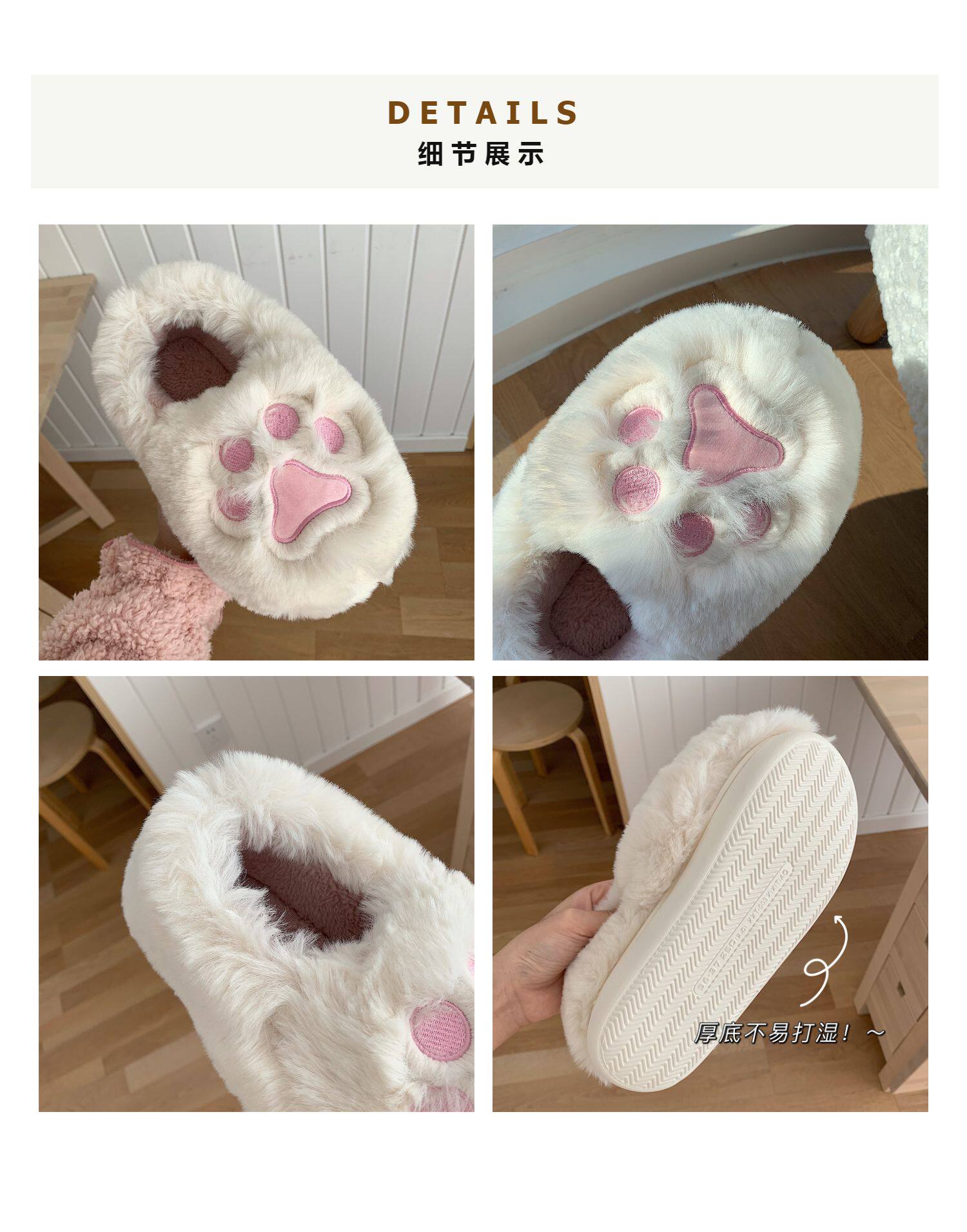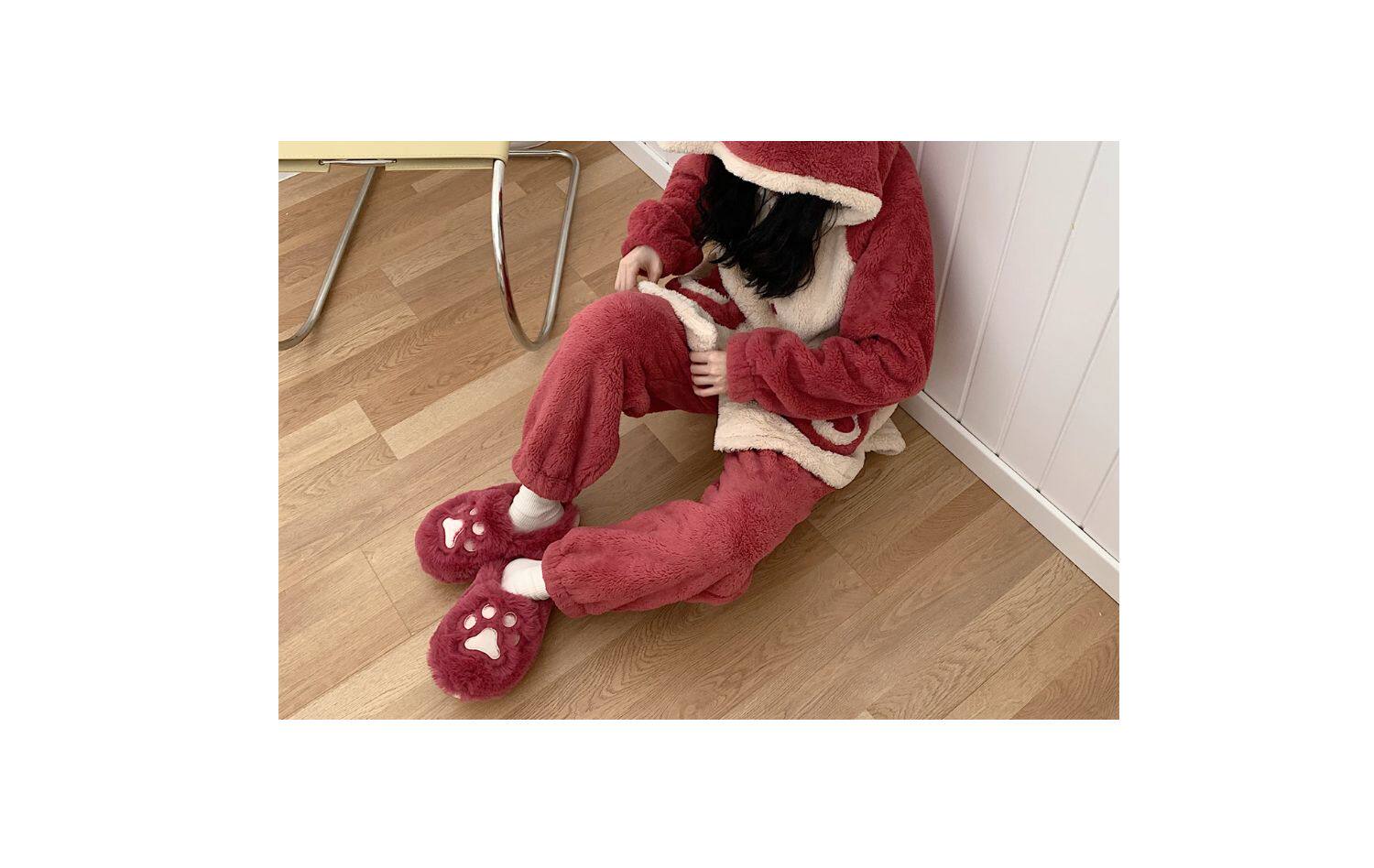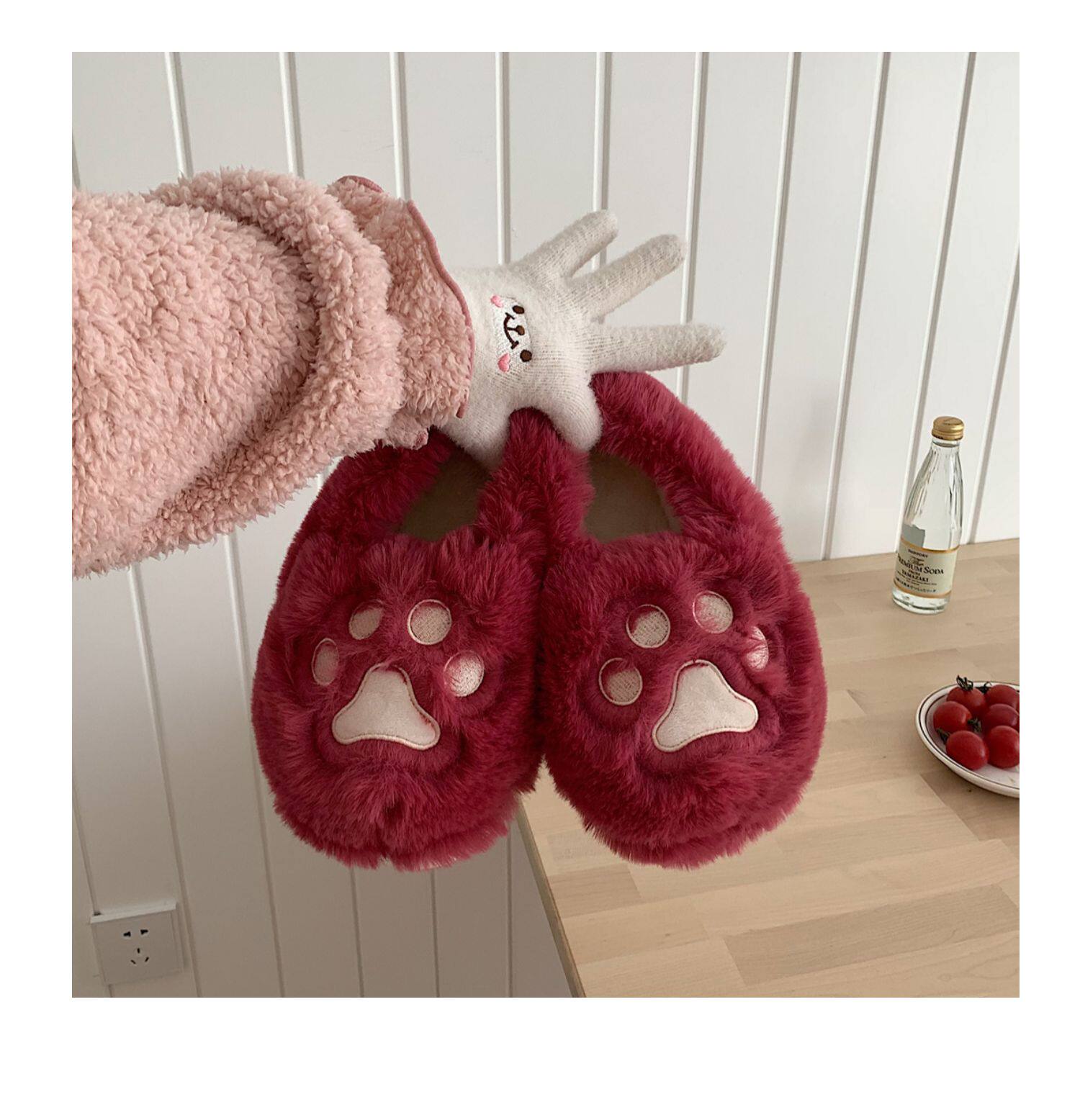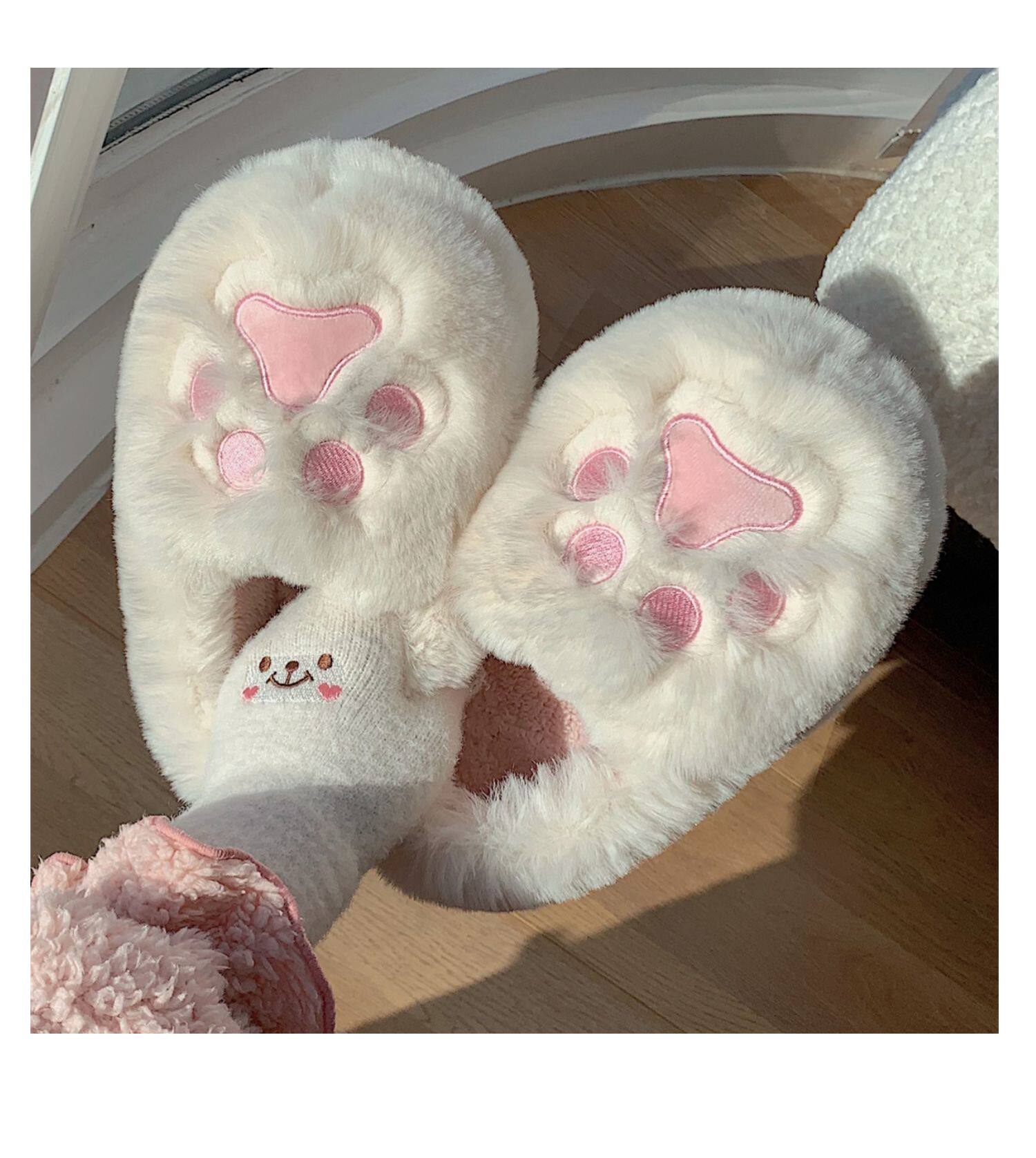 Женщины в зимних сердцах корейских девочек, домашние -скользящие теплые хлопковые тапочки, милые мягкие милые все -инкурентные плюшевые туфли для кошек