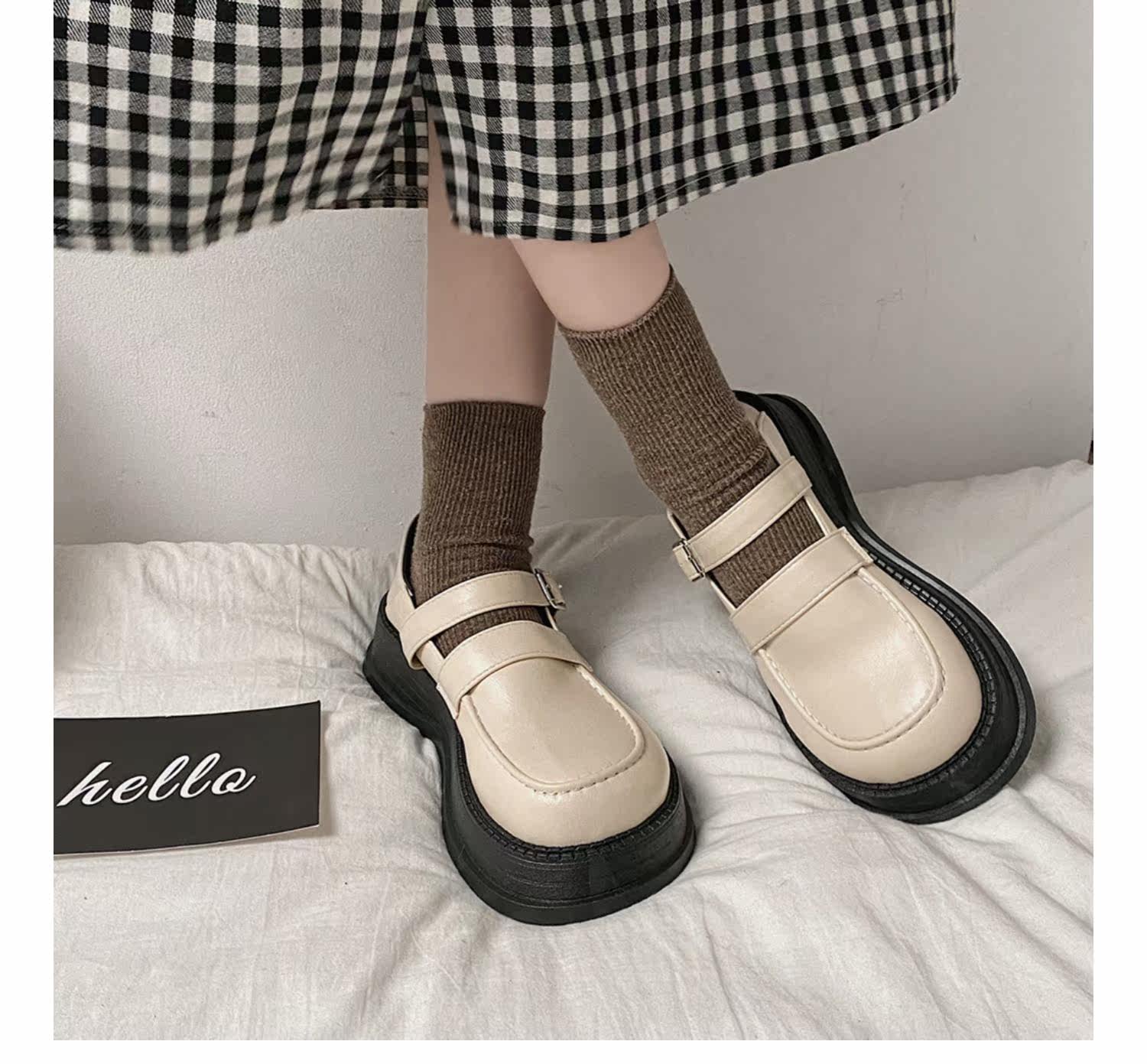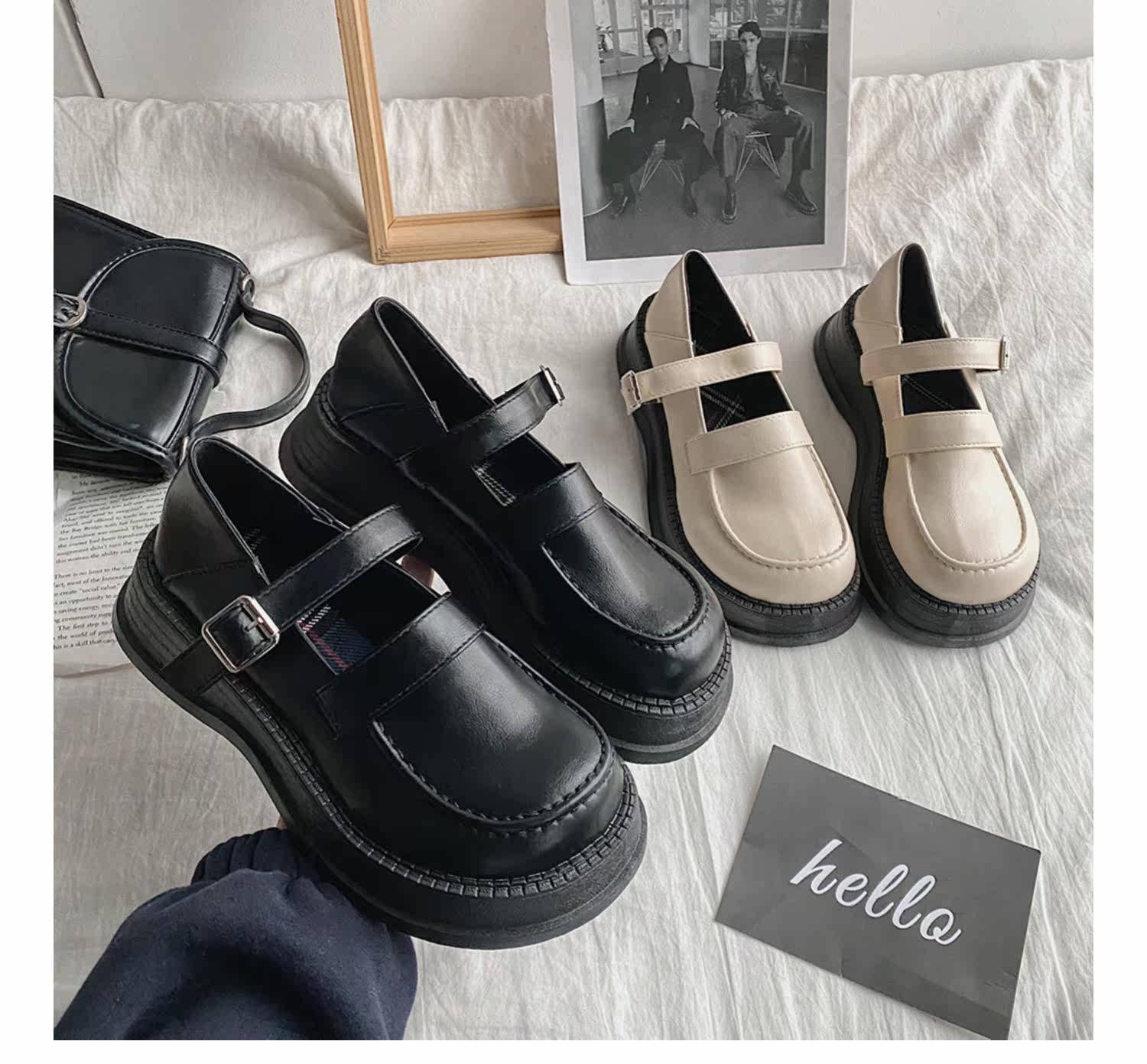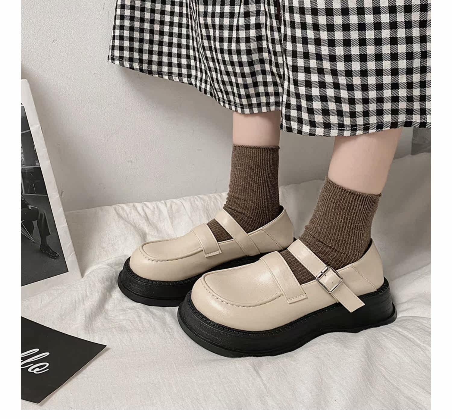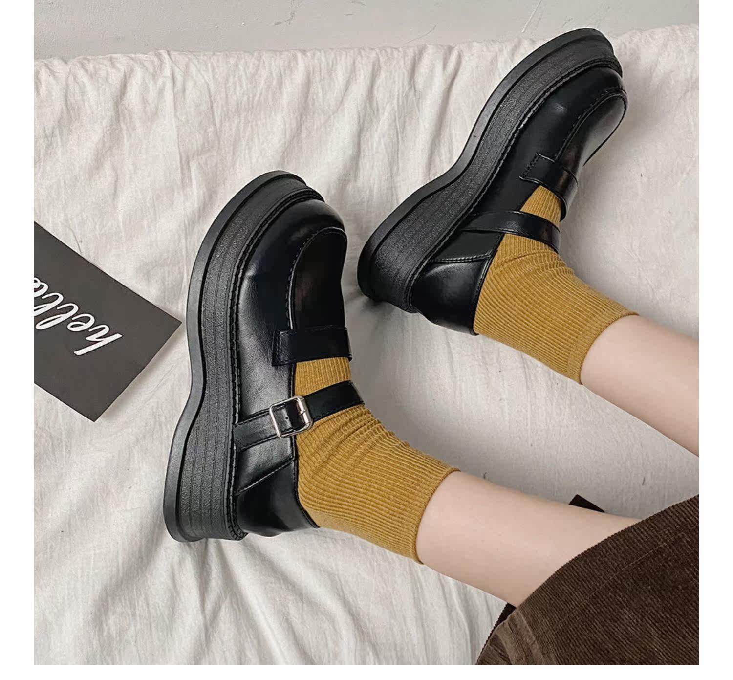 Модная высокая универсальная черная обувь в английском стиле для кожаной обуви на платформе, в британском стиле, коллекция 2022