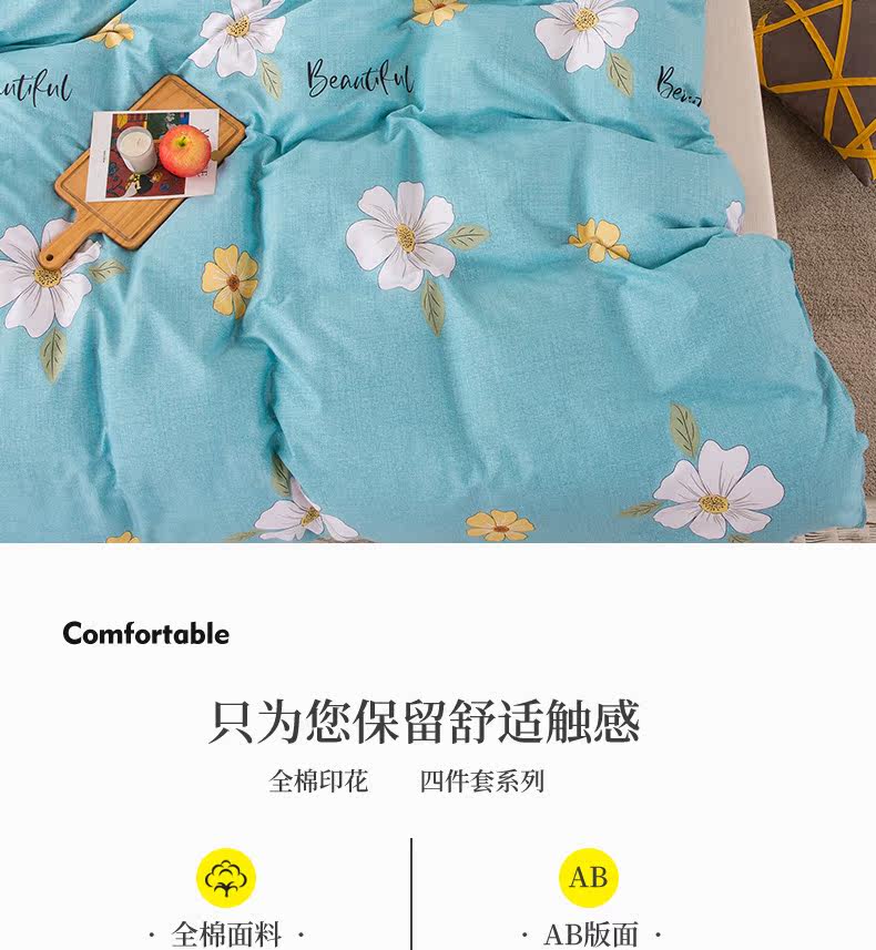 Хлопковый пододеяльник для школьников и студентов, хлопковое одеяло, комплект, простой и элегантный дизайн, скандинавский стиль, 4 предмета, 200x