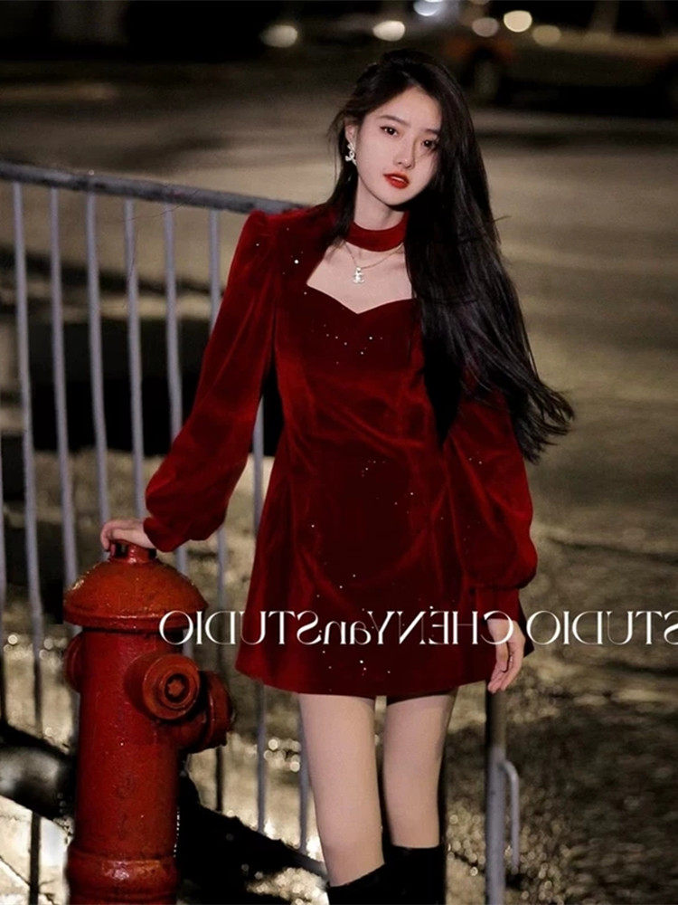 Демисезонное рождественское красное дизайнерское вечернее платье, тренд сезона