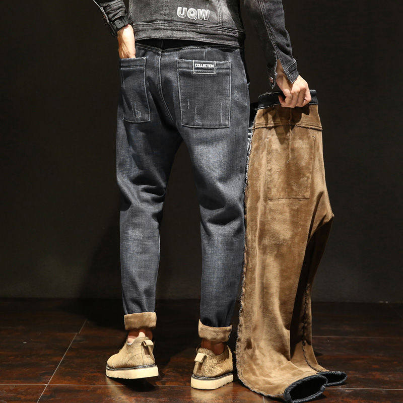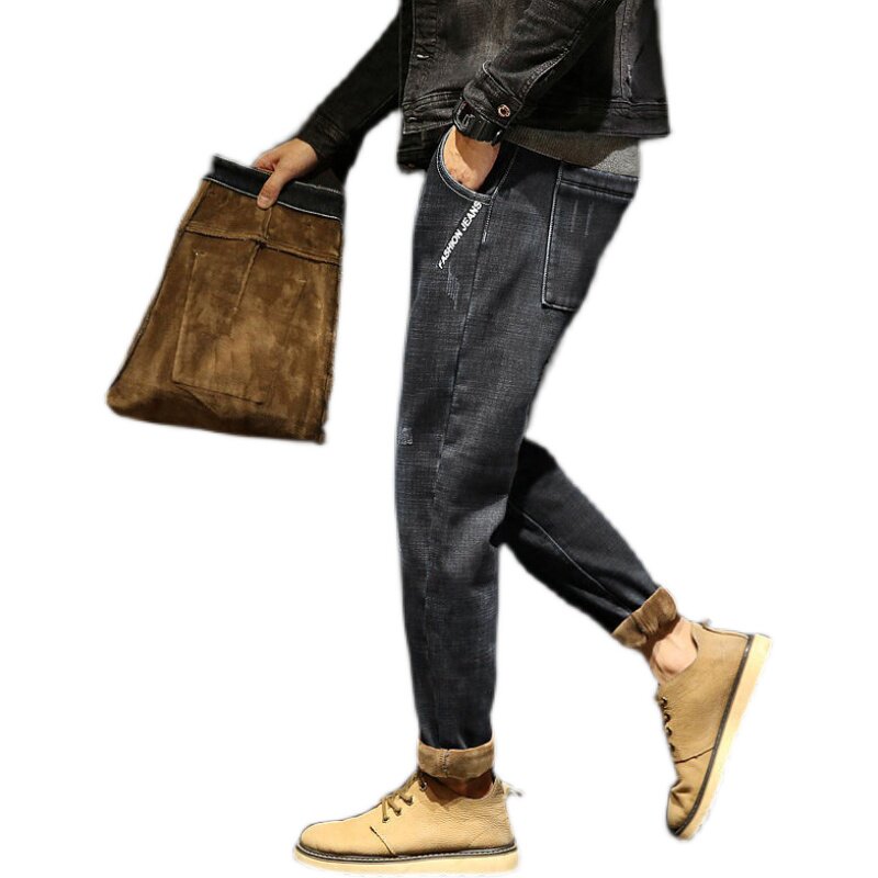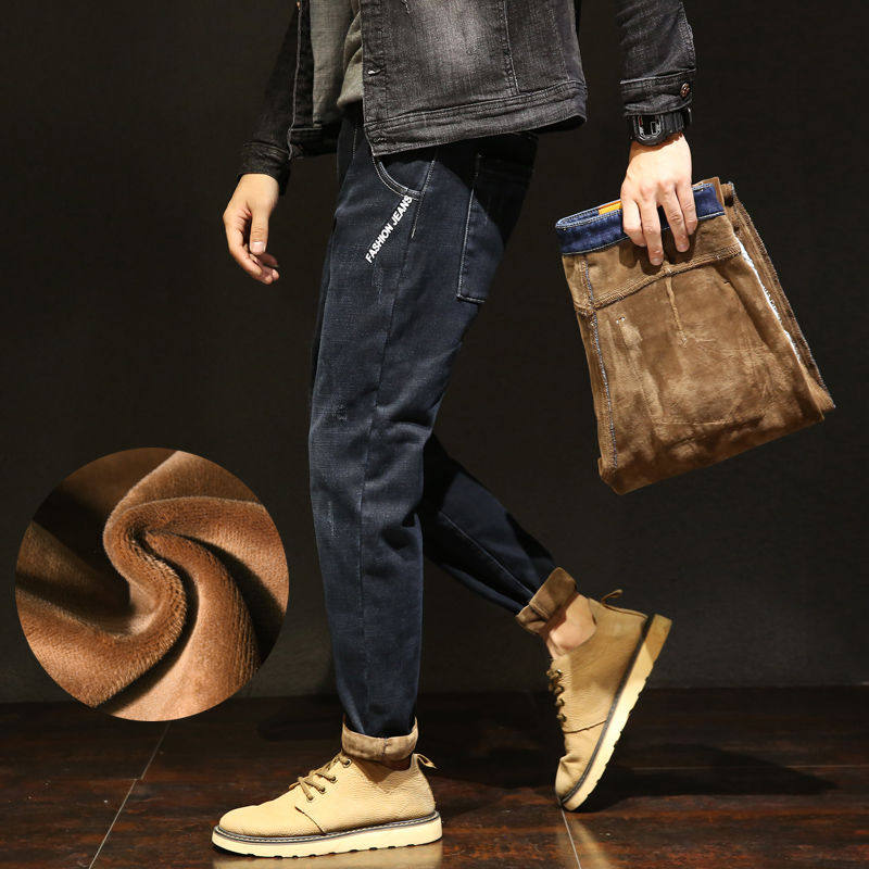 Tide, зимние эластичные джинсы для отдыха, утепленные штаны, свободный прямой крой, большой размер, средняя посадка