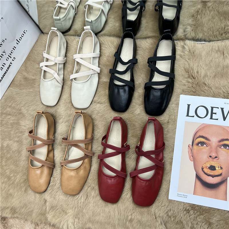 Французская Мэри Чжэнь обувь 2024 Весна Новая одиночная обувь факультет Фея Сказочная мягкая кожа мягкая мягкая нижняя часть бобовых балетных ботинков