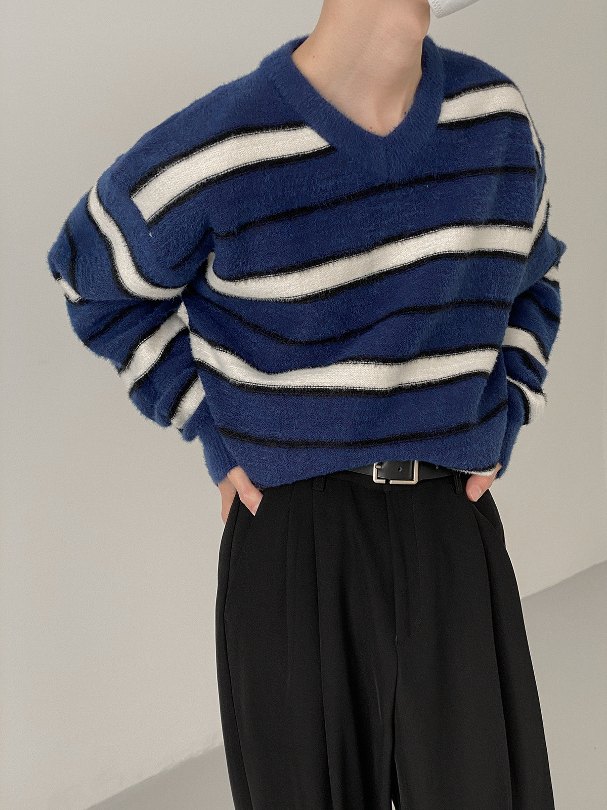 Трикотажный брендовый шерстяной трендовый свитер, V-образный вырез, осенний