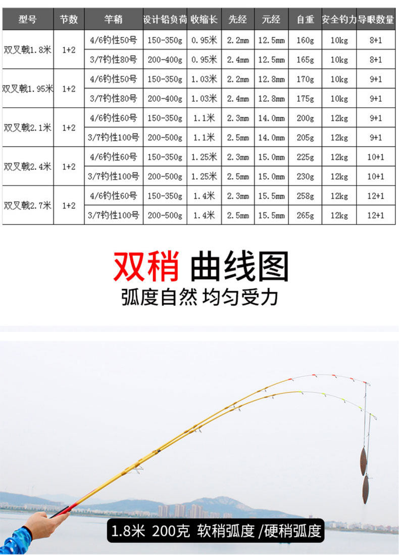 Рыбалка для клипков Двойной стержень двойной рифти на № 80 на 80 белых фруктовых стержнях Железная пластина лодочная рыбалка на морской рыбацкой стержне 2,7 метра