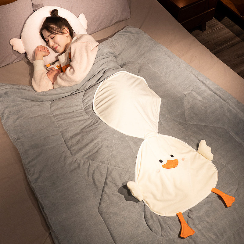 - Белое милое утиное стеганое одеяло