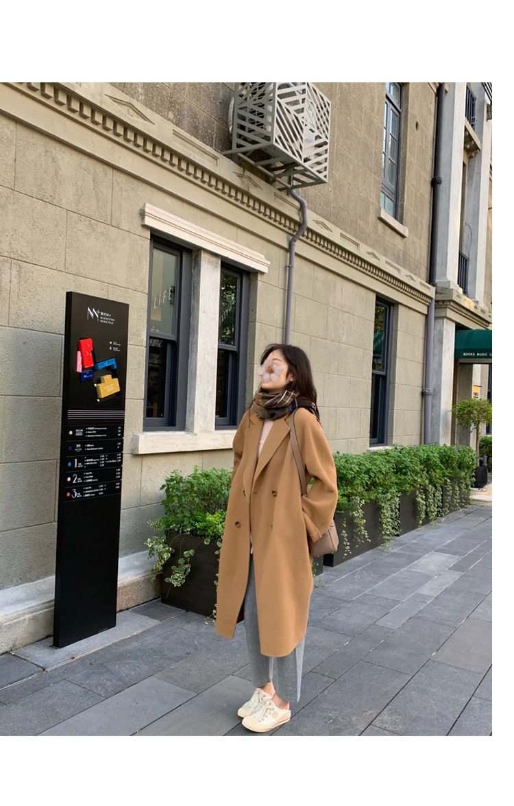 Демисезонное двусторонное кашемировое шерстяное пальто, элитная длинная шерстяная куртка, большой размер, французский стиль, средней длины