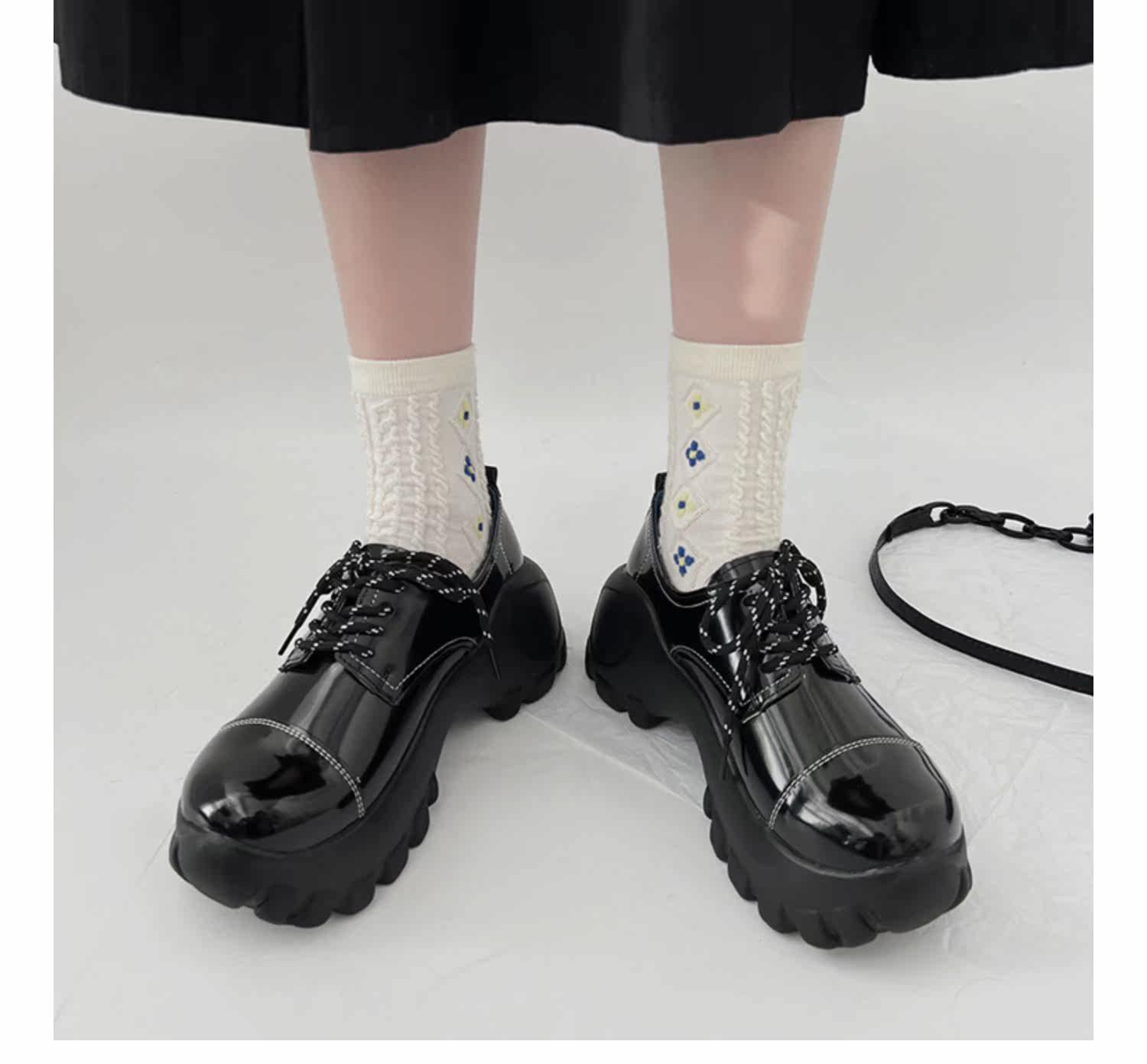 Высокий весенний черный универсальный трендовый ремень в английском стиле для кожаной обуви на платформе, обувь, изысканный стиль
