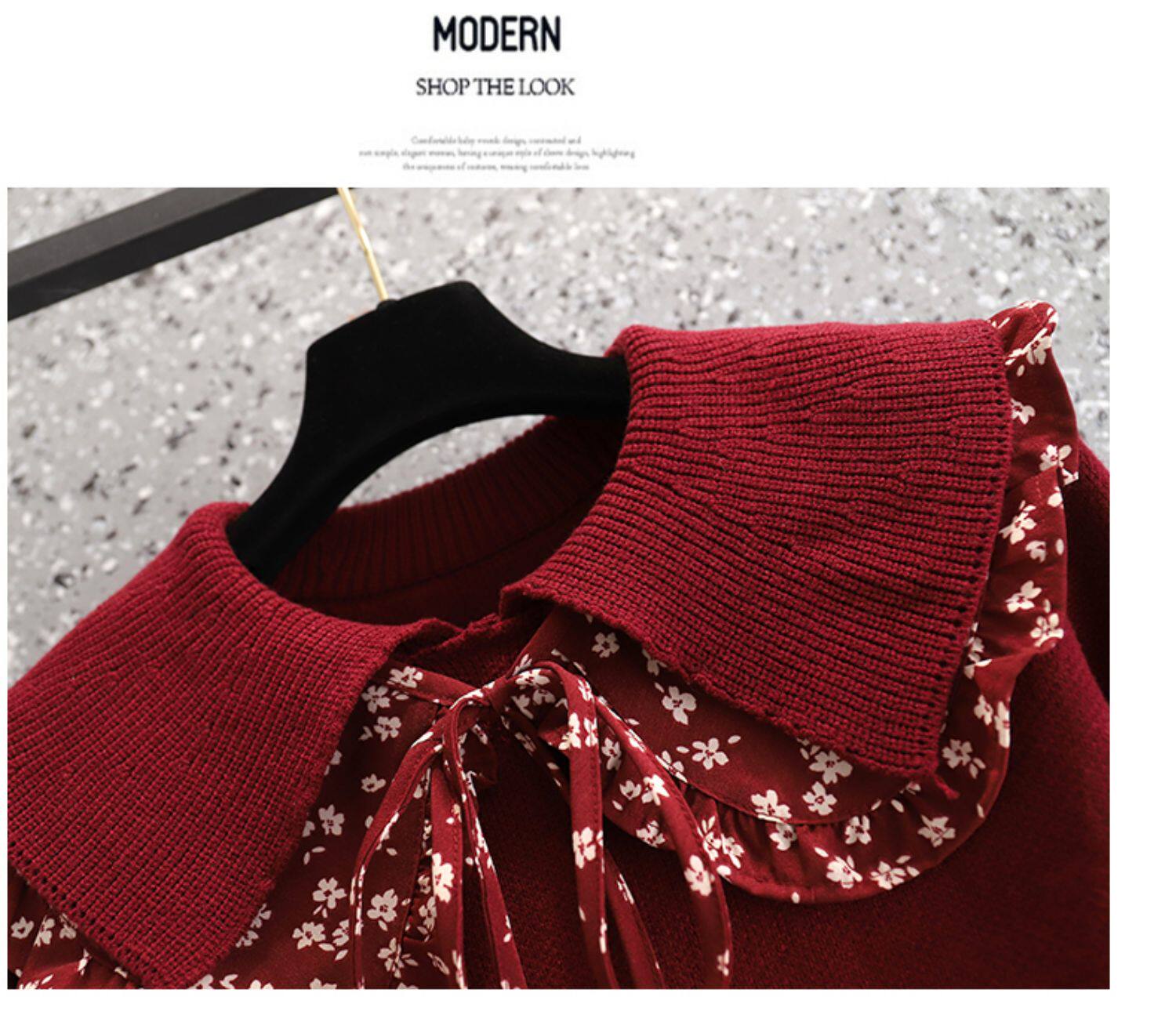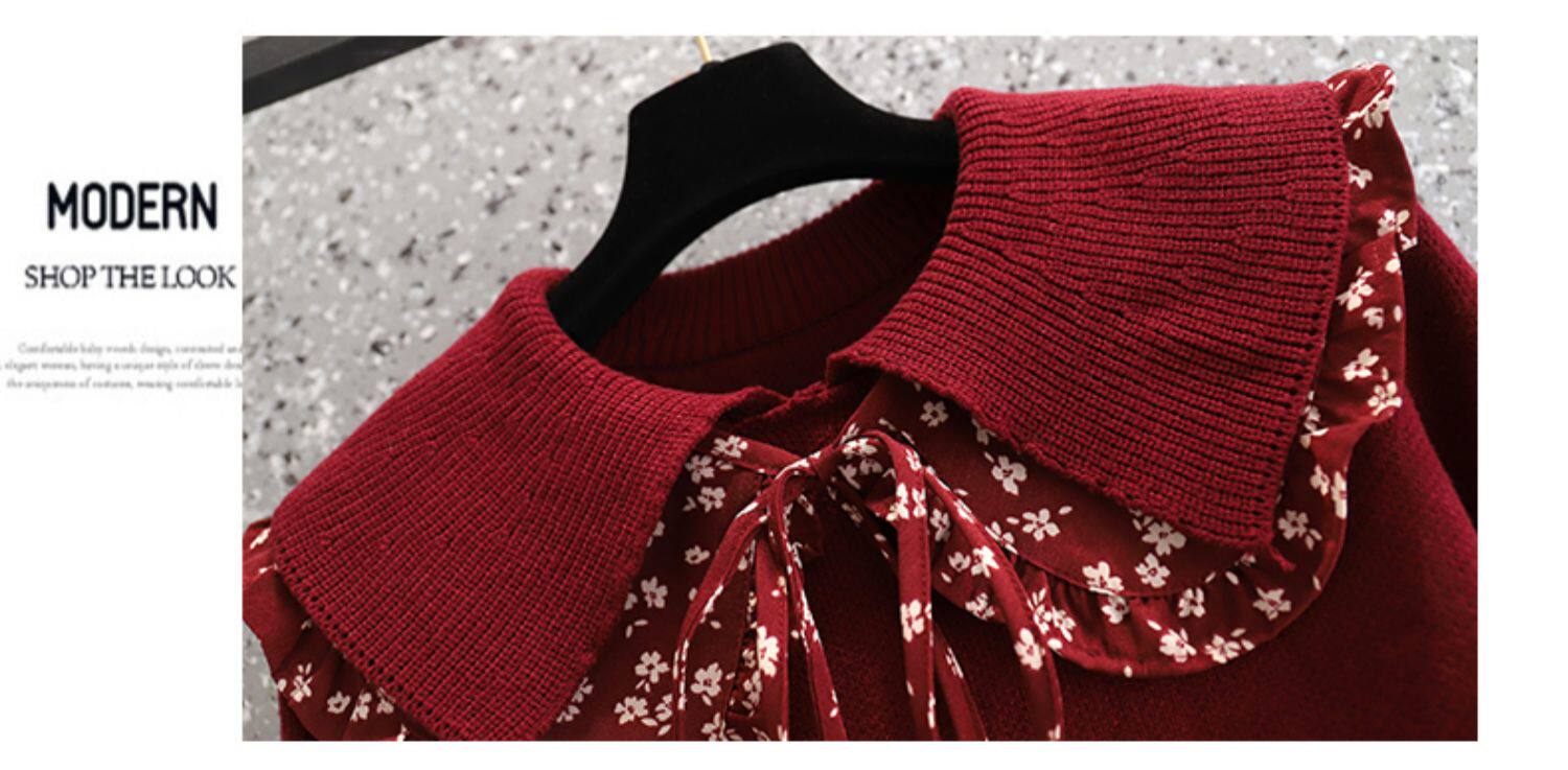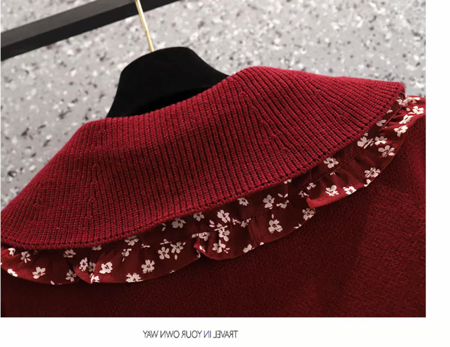 Осеннее демисезонное красное трикотажное шерстяное платье, большой размер, подходит для полных девушек
