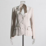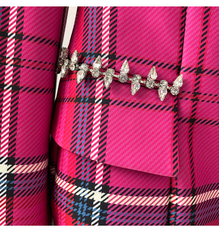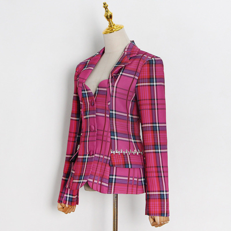 Дизайнерский женский костюм, пряжка, корсет, куртка, тренд сезона, облегающий крой